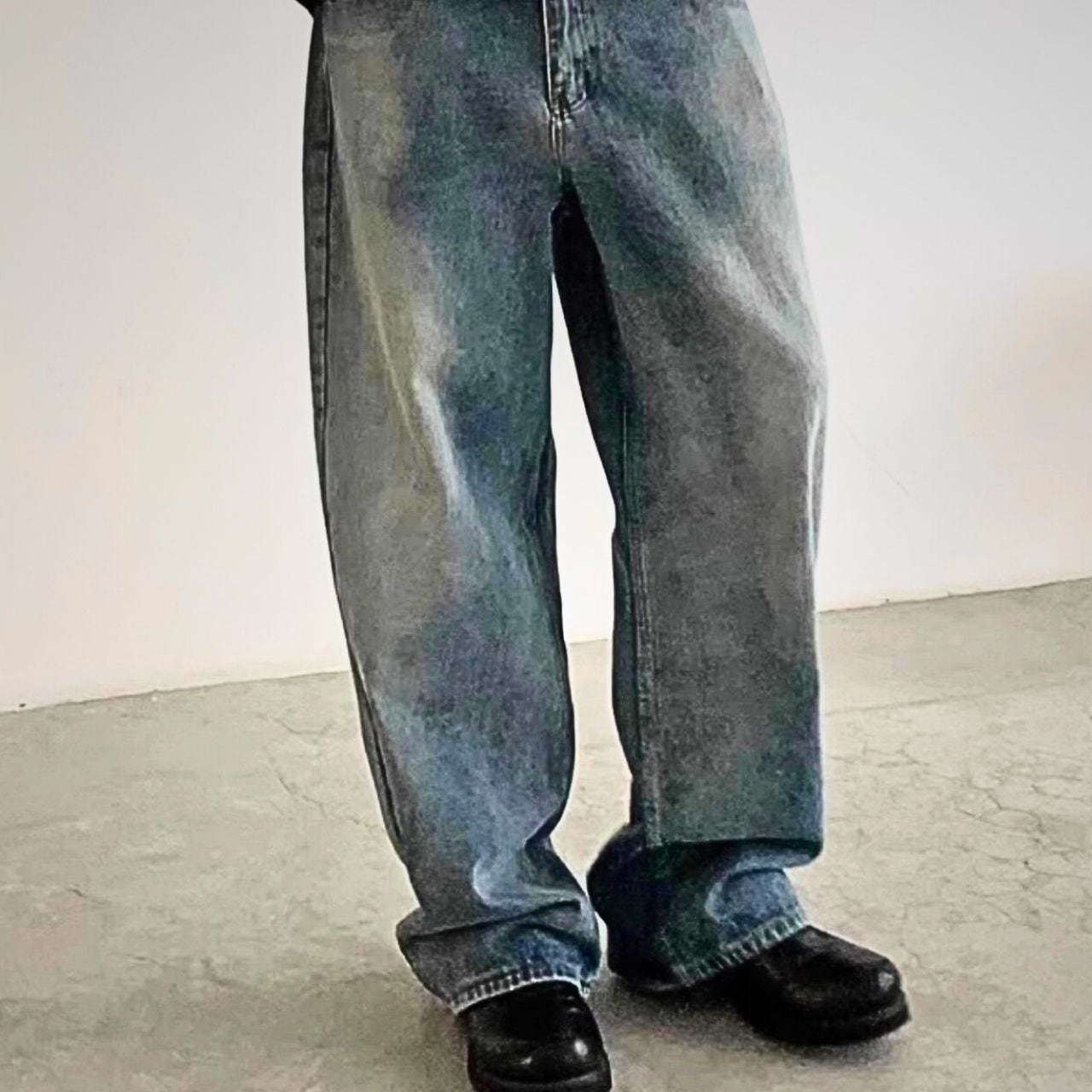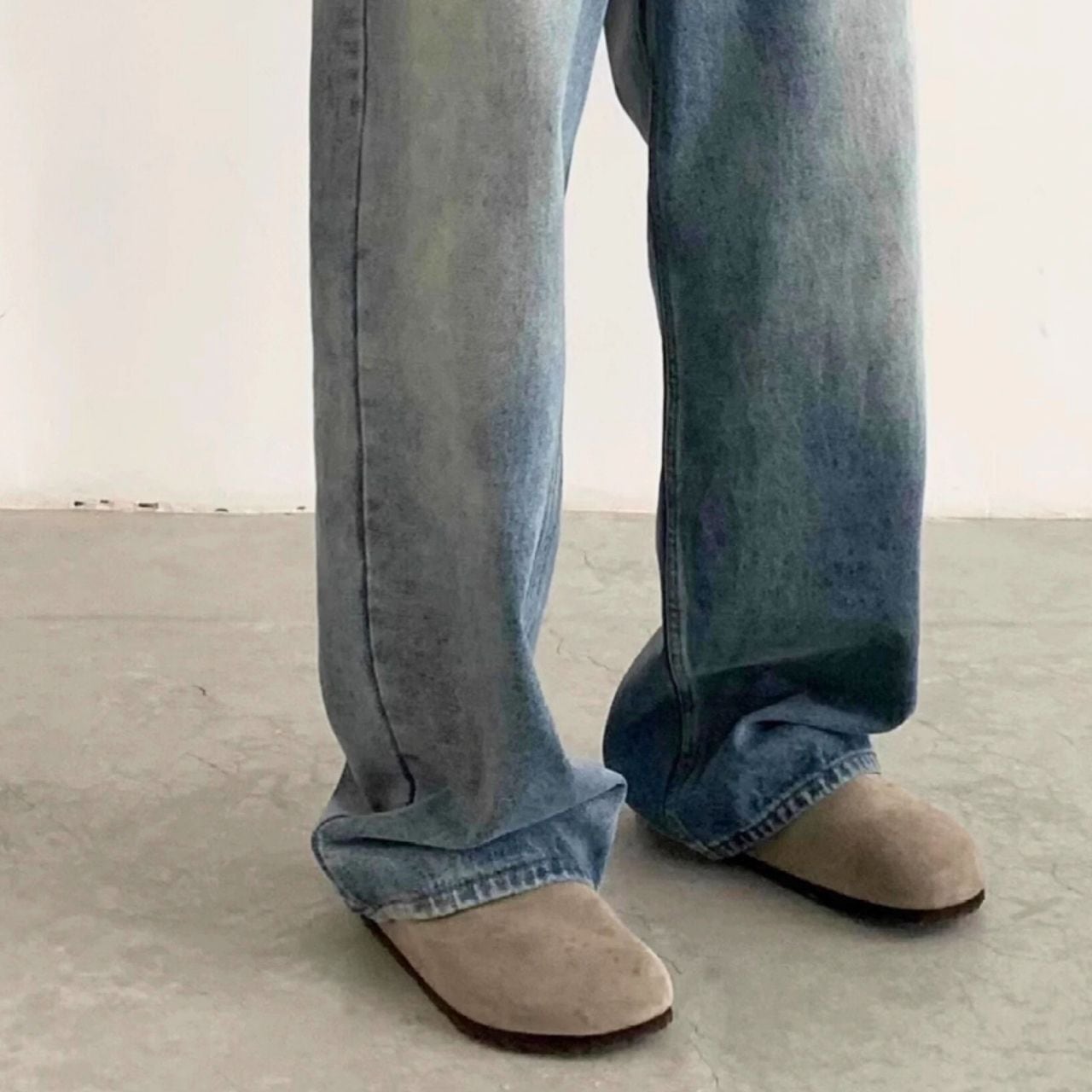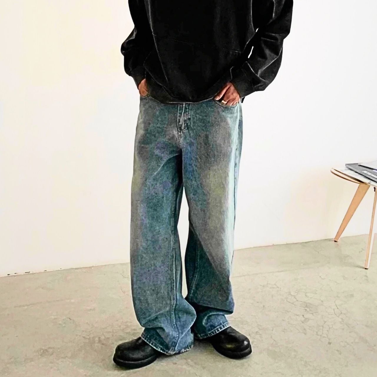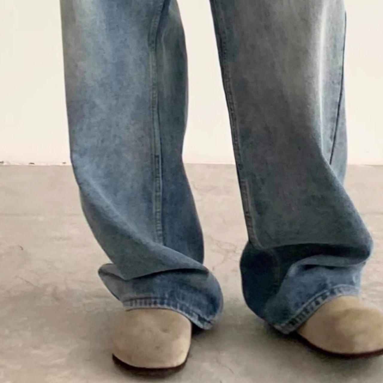 ワイドレッグデニム素材ストレートレッグパンツ 1199