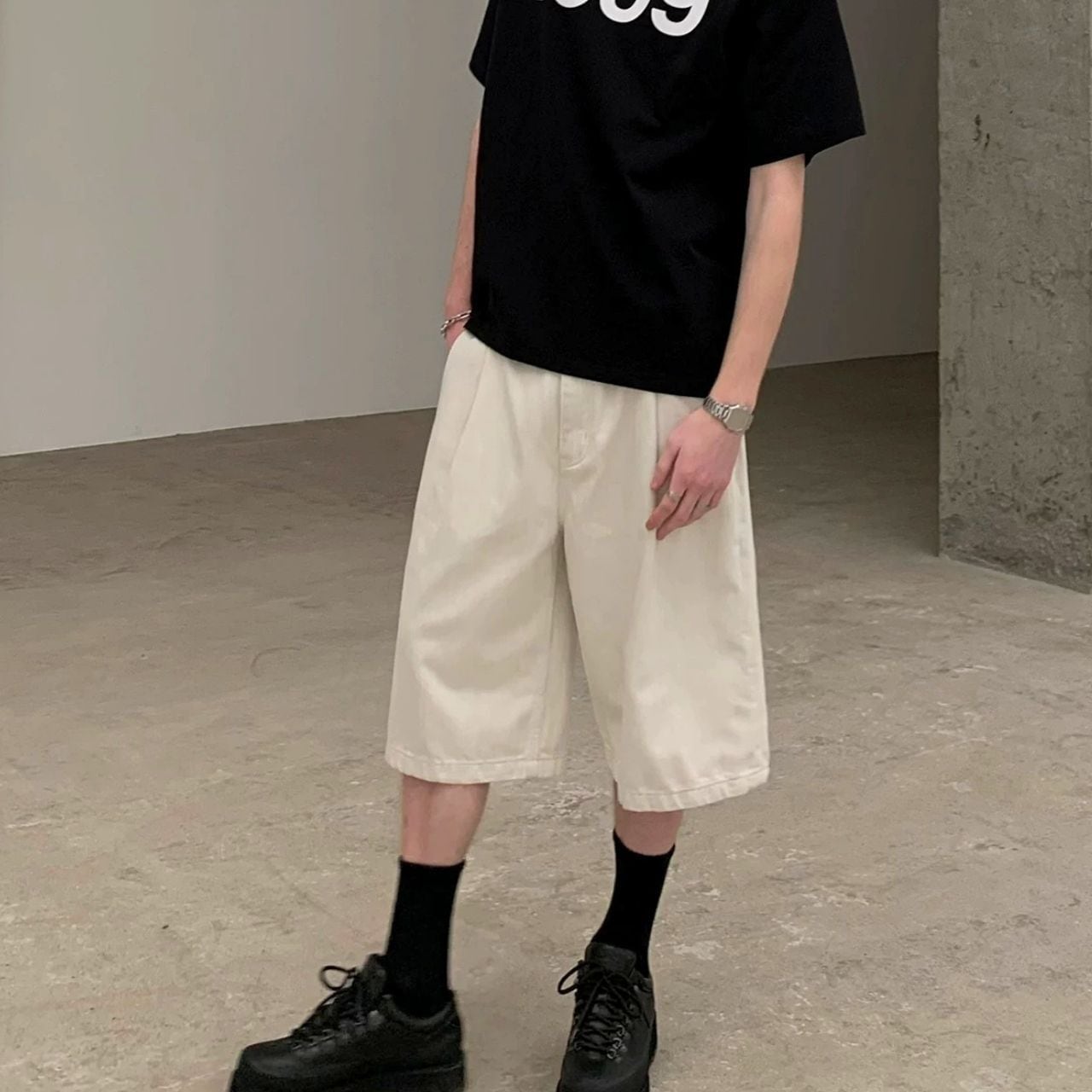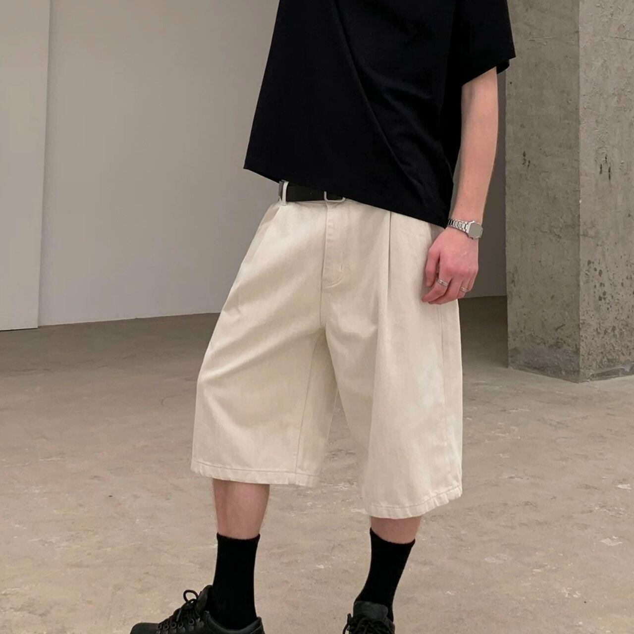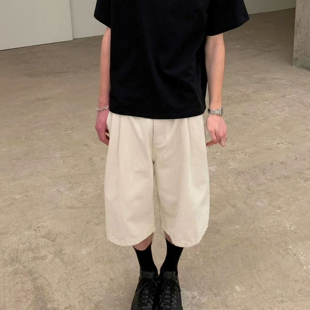 ひざ下のワイドショートパンツ