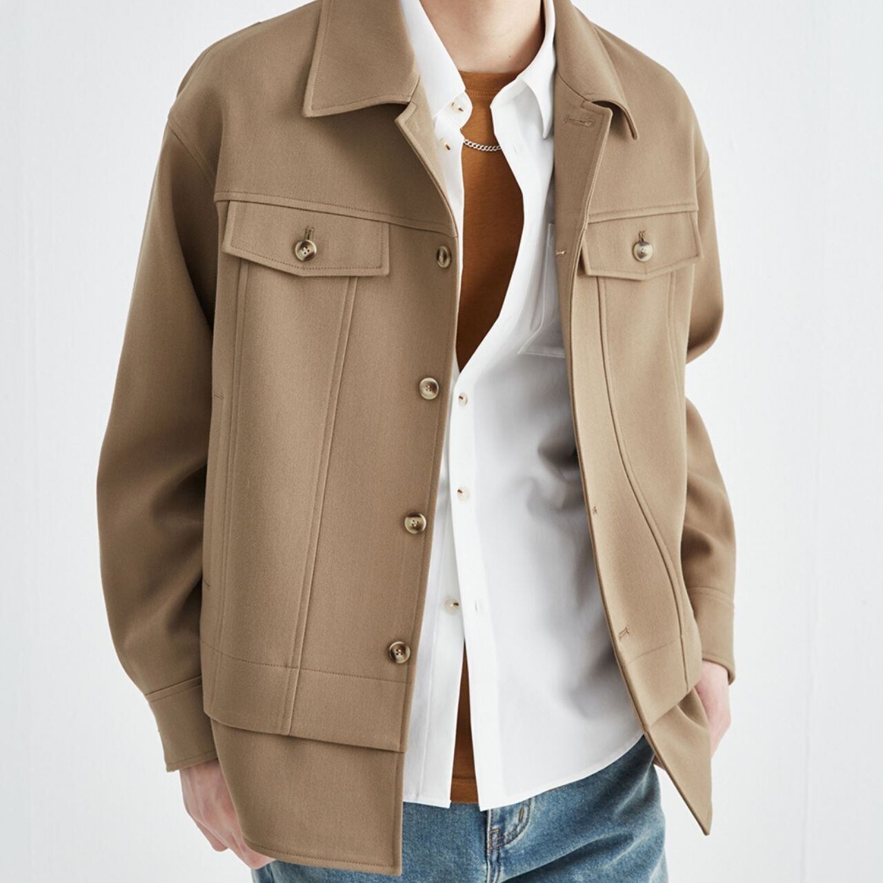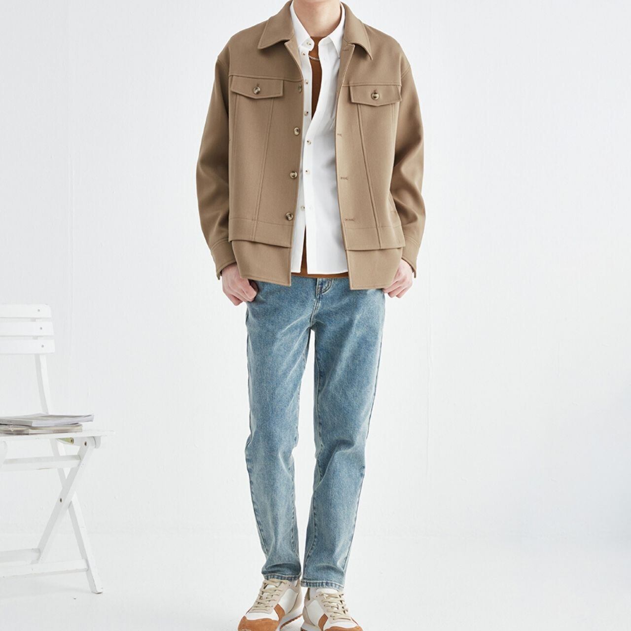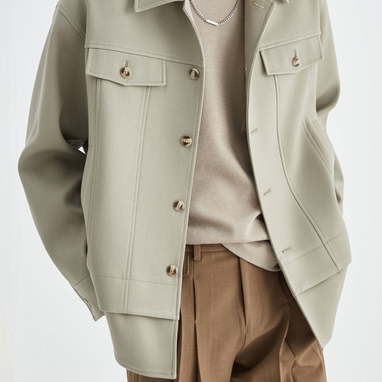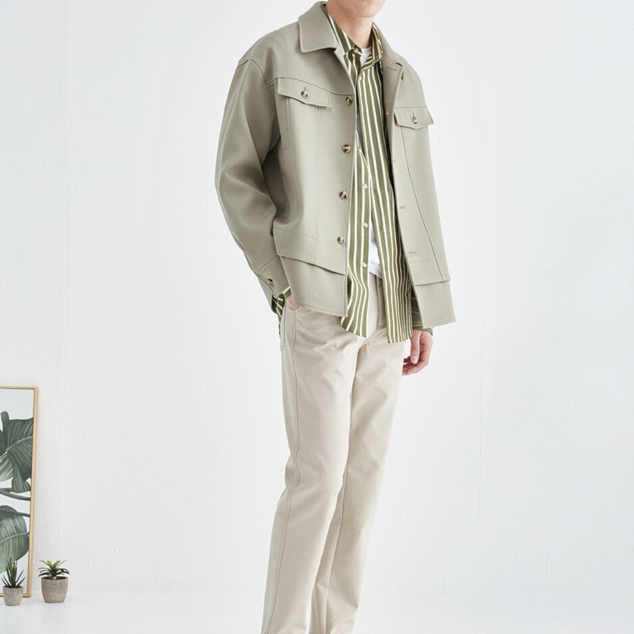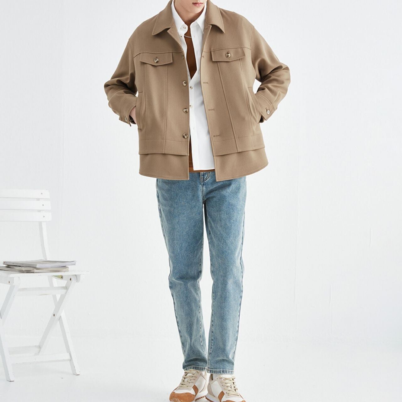 - M 肩幅: 53.6 cm 胸囲: 116 cm 着丈: 68 cm 袖丈: 55 cm