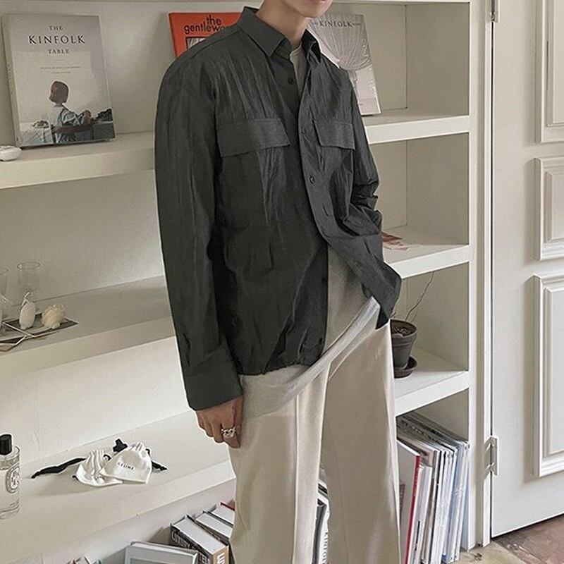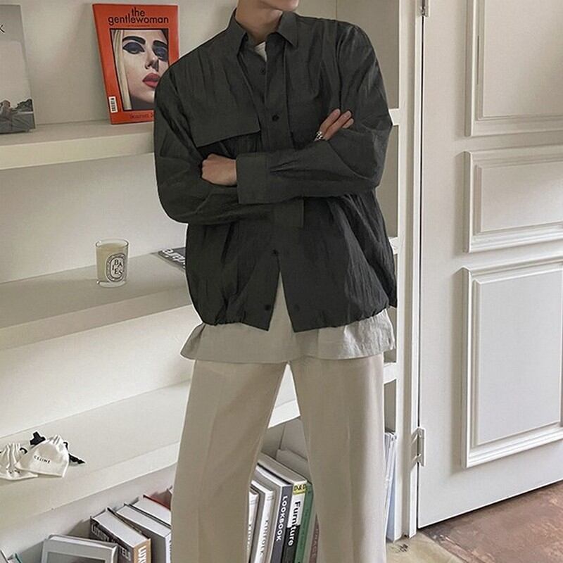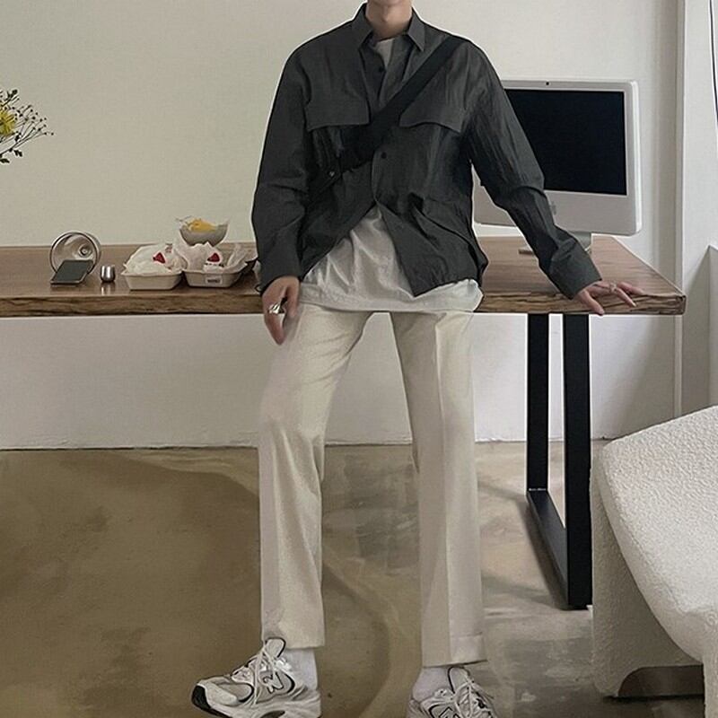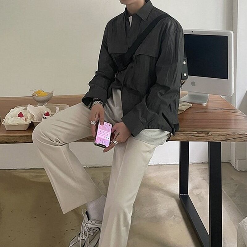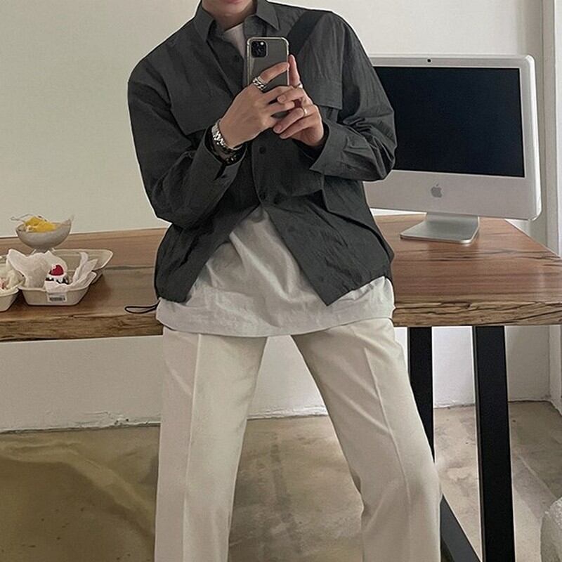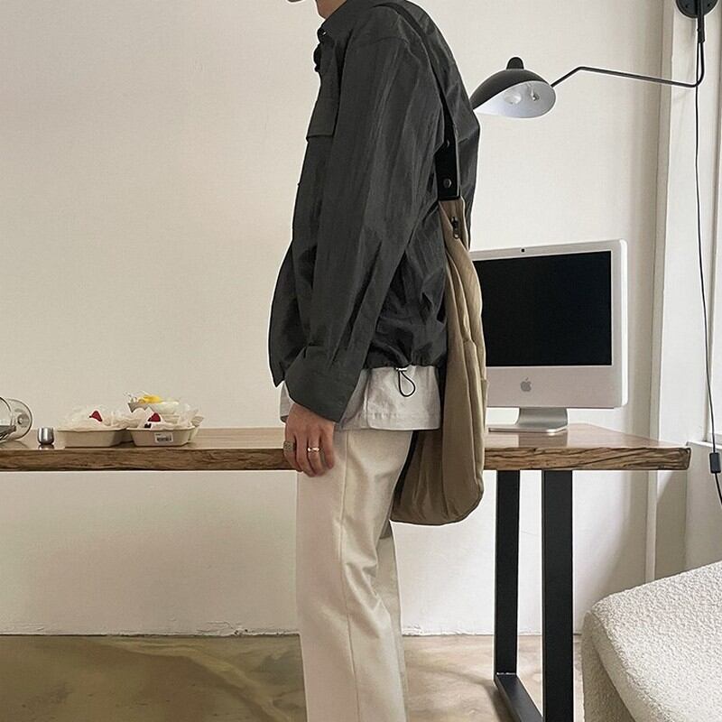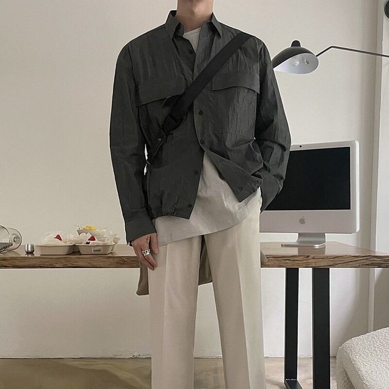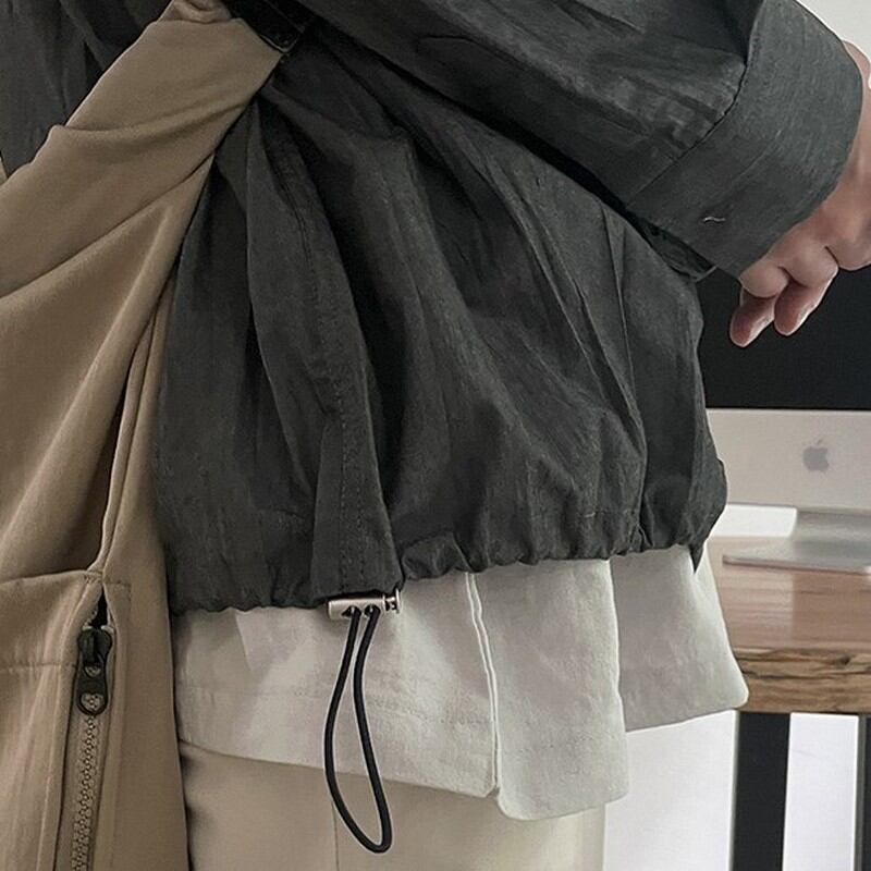 - M 肩幅: 49 cm 胸囲: 112 cm 着丈: 68 cm 袖丈: 59 cm