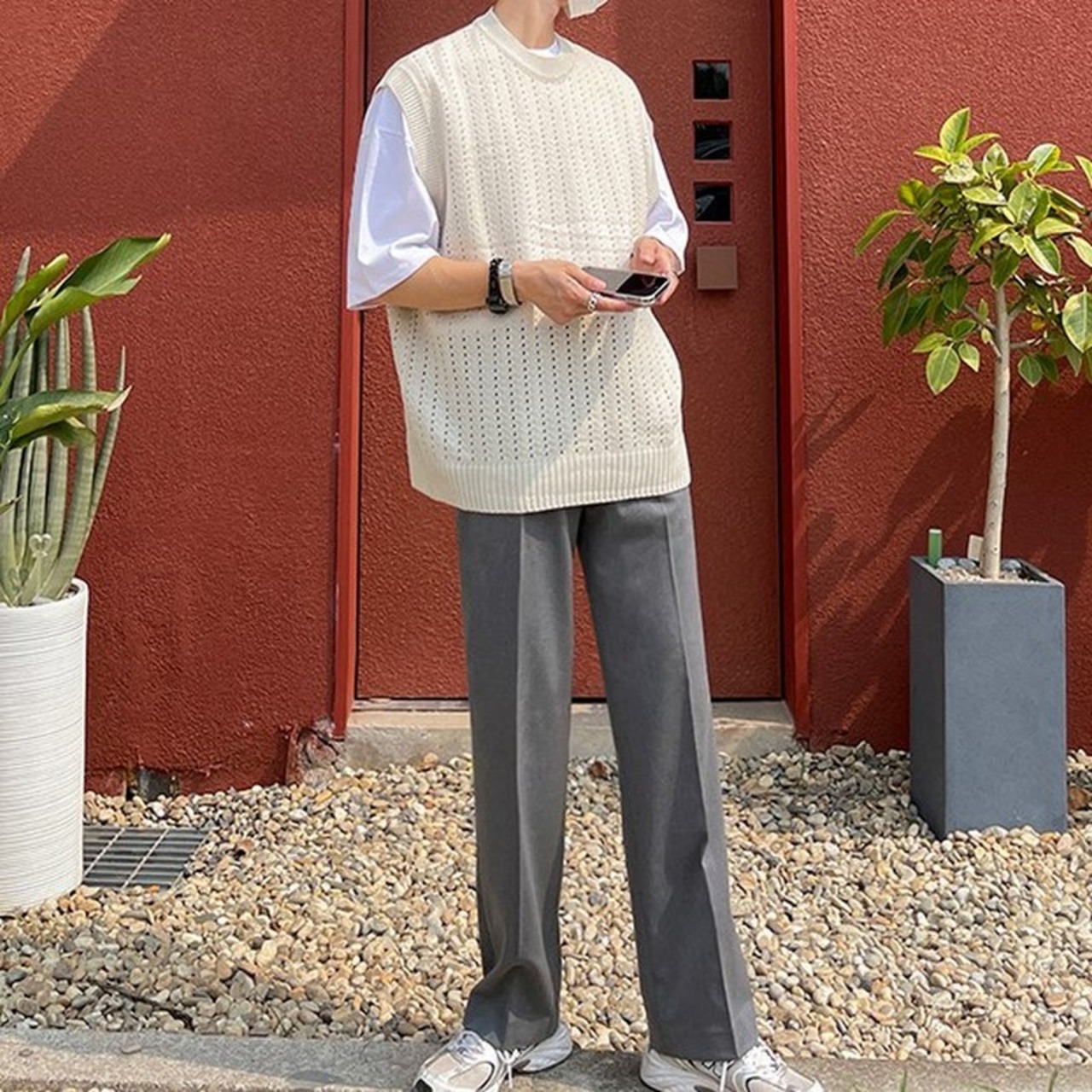 ラウンドネックデザインニットベスト MT0080226