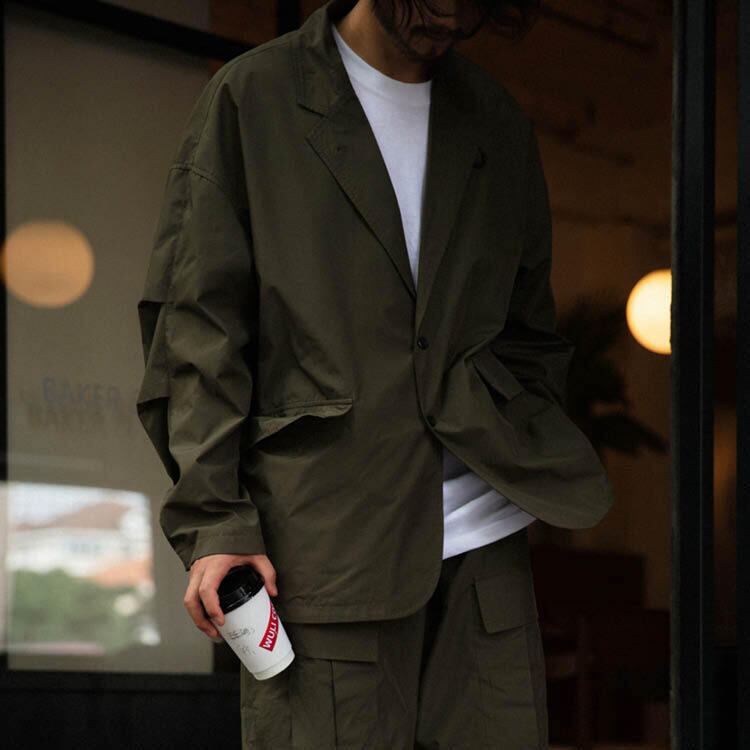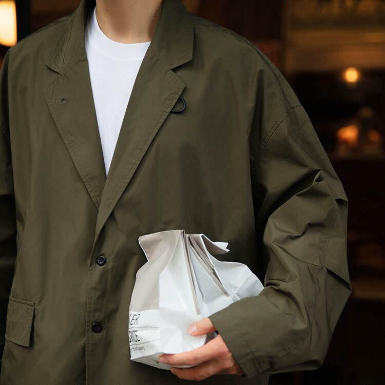 - M 肩幅: 66 cm 胸囲: 134 cm 着丈: 72 cm 袖丈: 52 cm