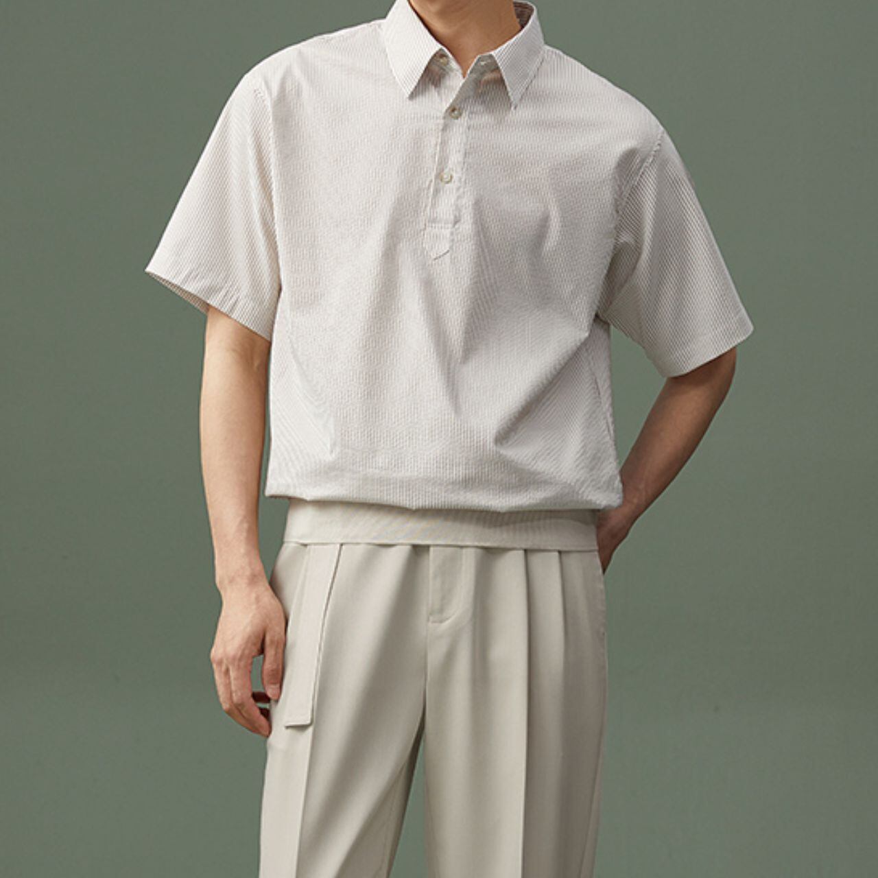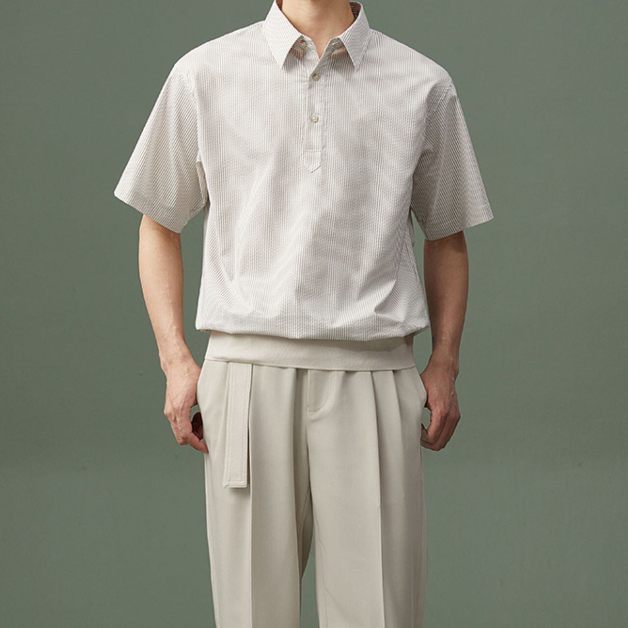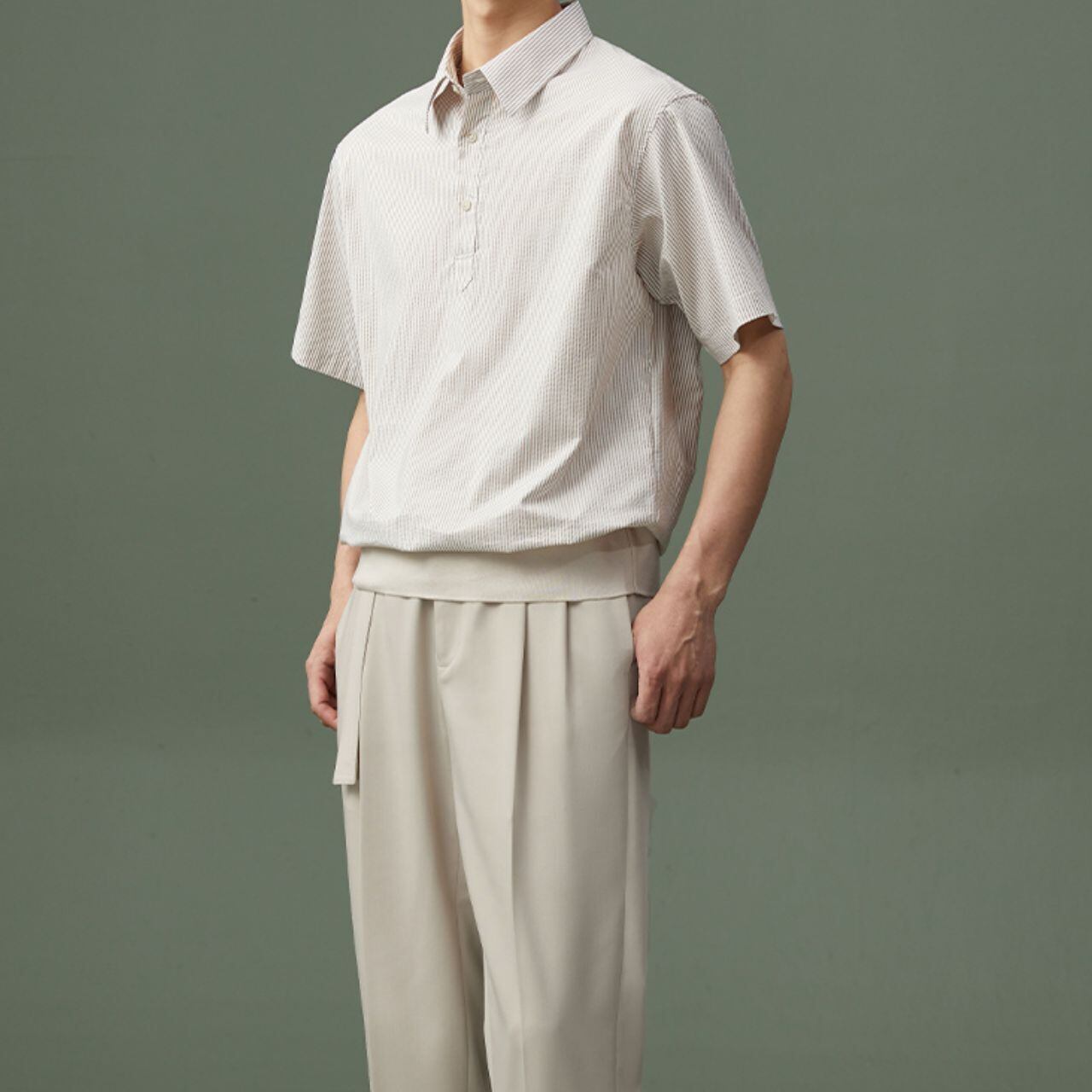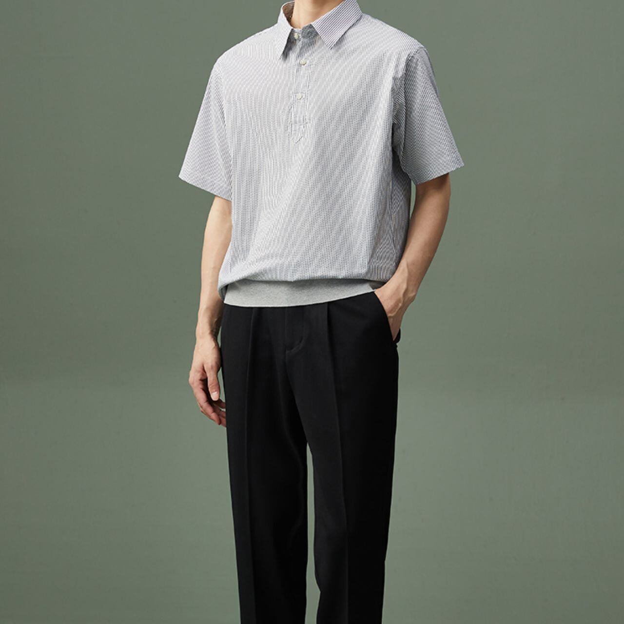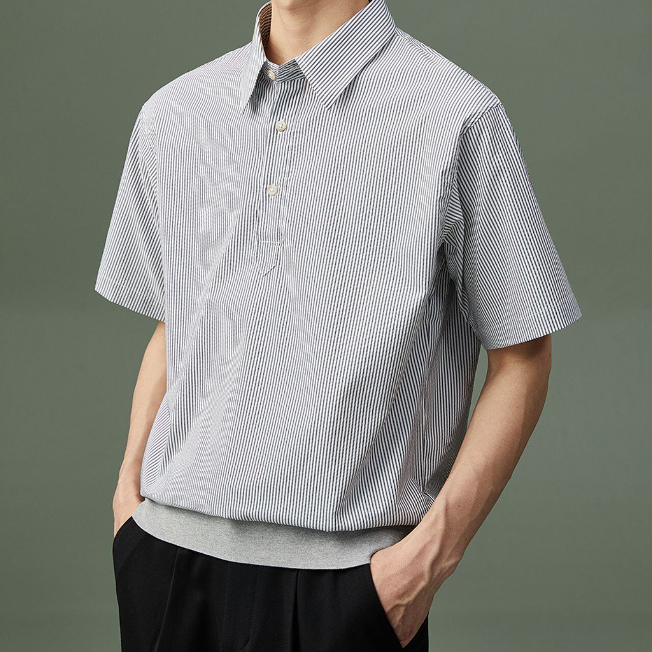 ストライプ襟付きシャツトップス MT0110036