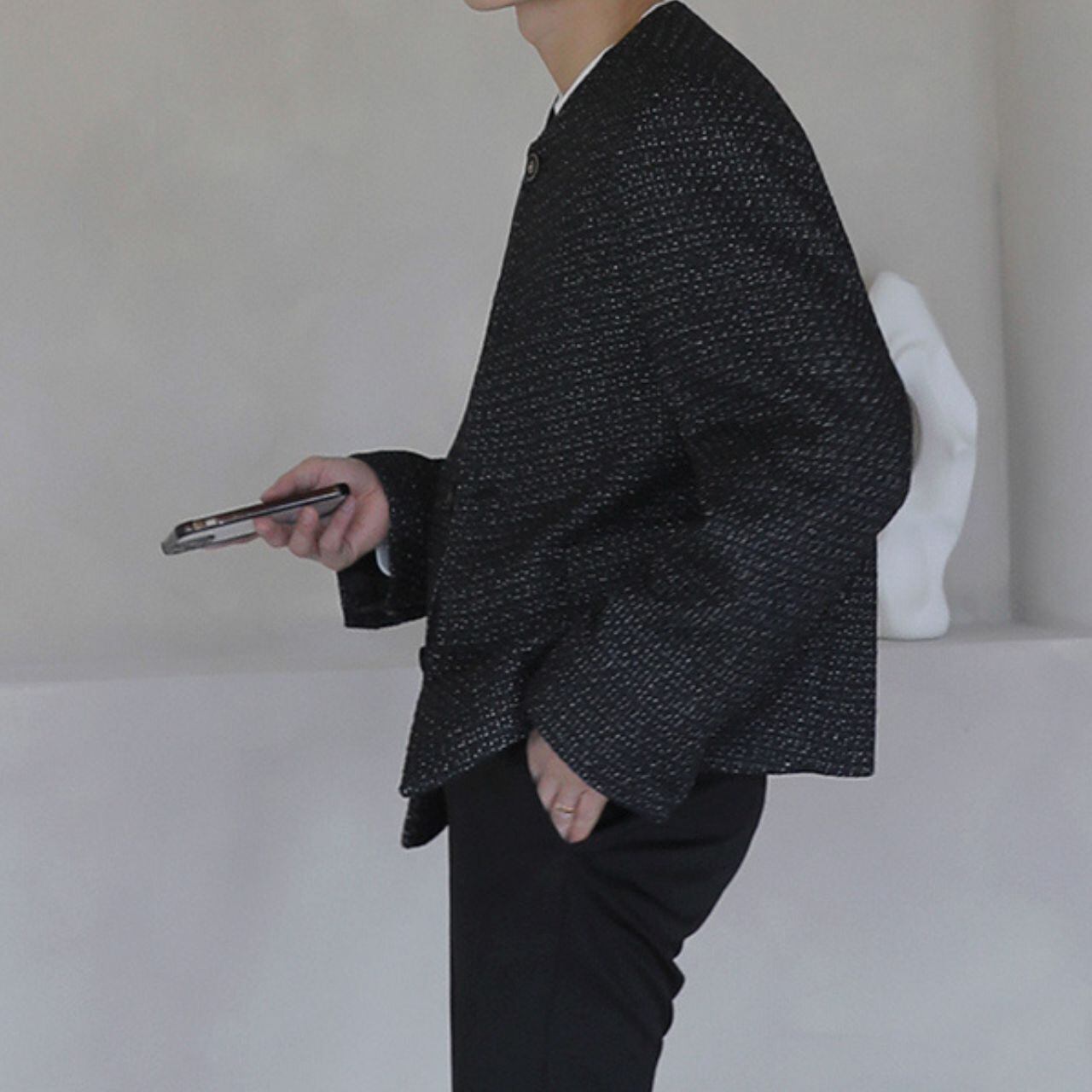 - L 肩幅: 46 cm 胸囲: 112 cm 着丈: 64 cm 袖丈: 59 cm