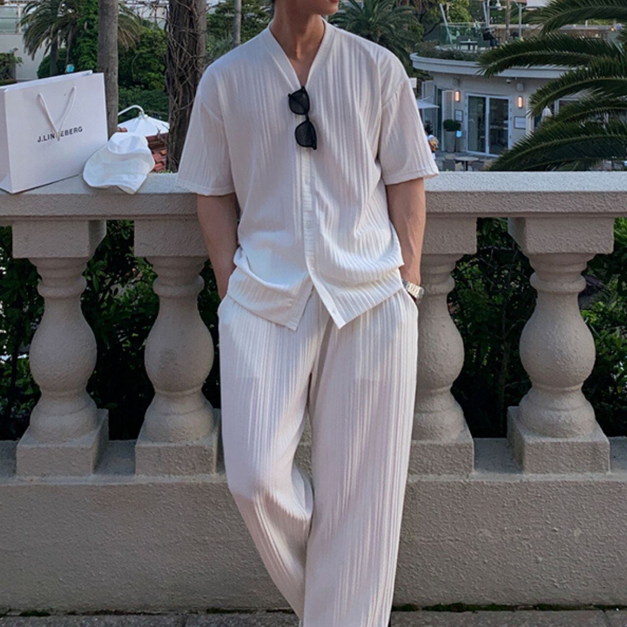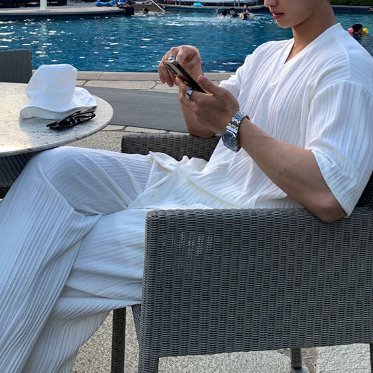 V ネックカーディガン半袖 Tシャツ(別売りでセットアップのパンツあり) MT0080458