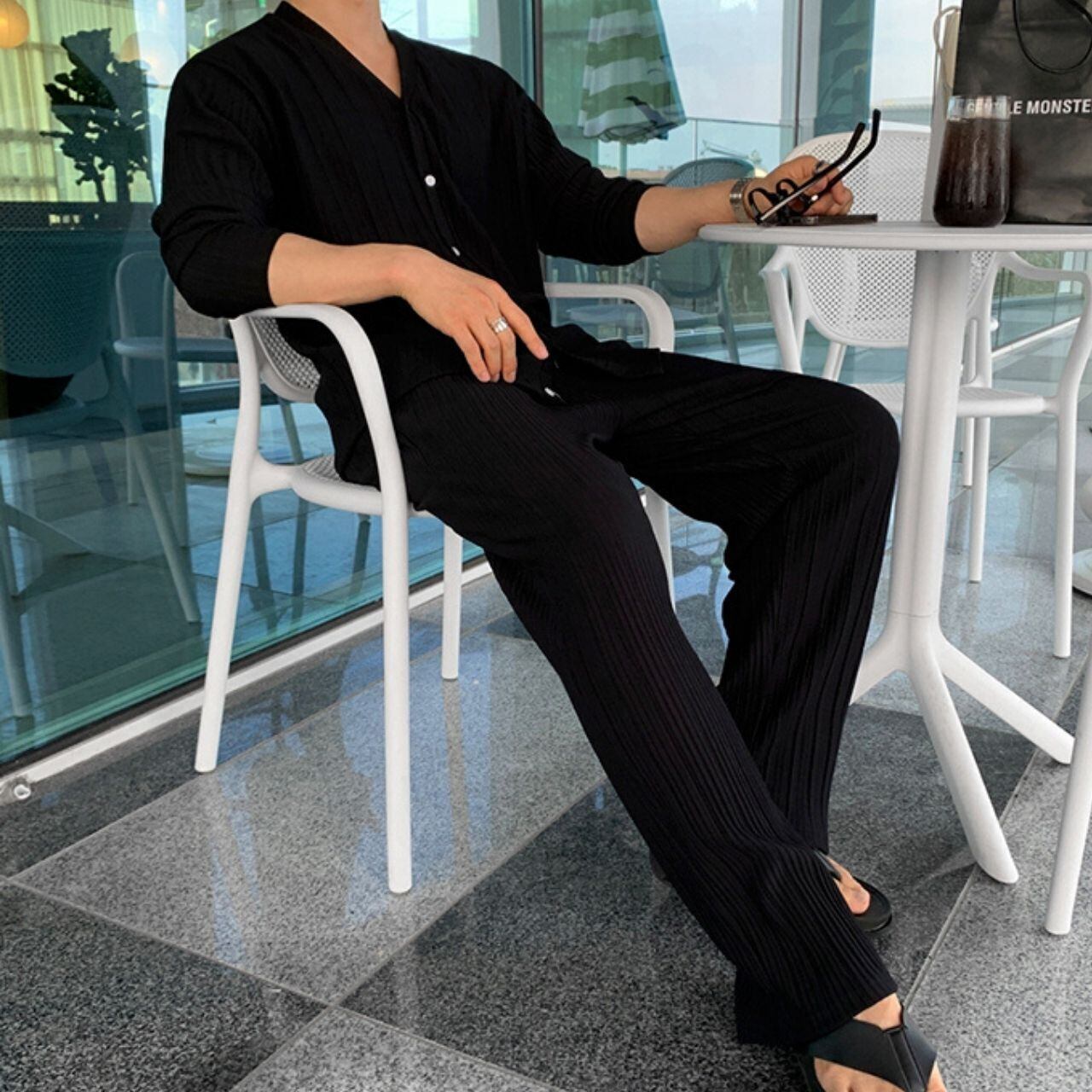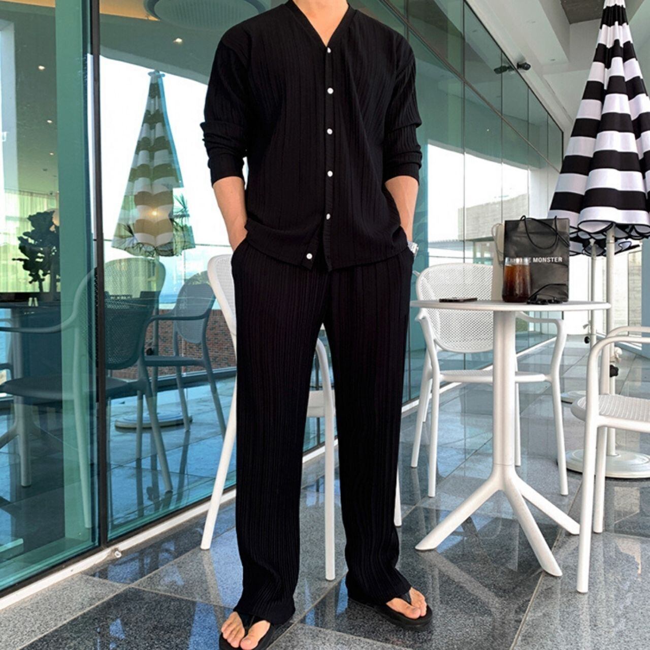 リブルーズパンツ(別売りでセットアップのV ネックカーディガン半袖 Tシャツあり) MT0080459