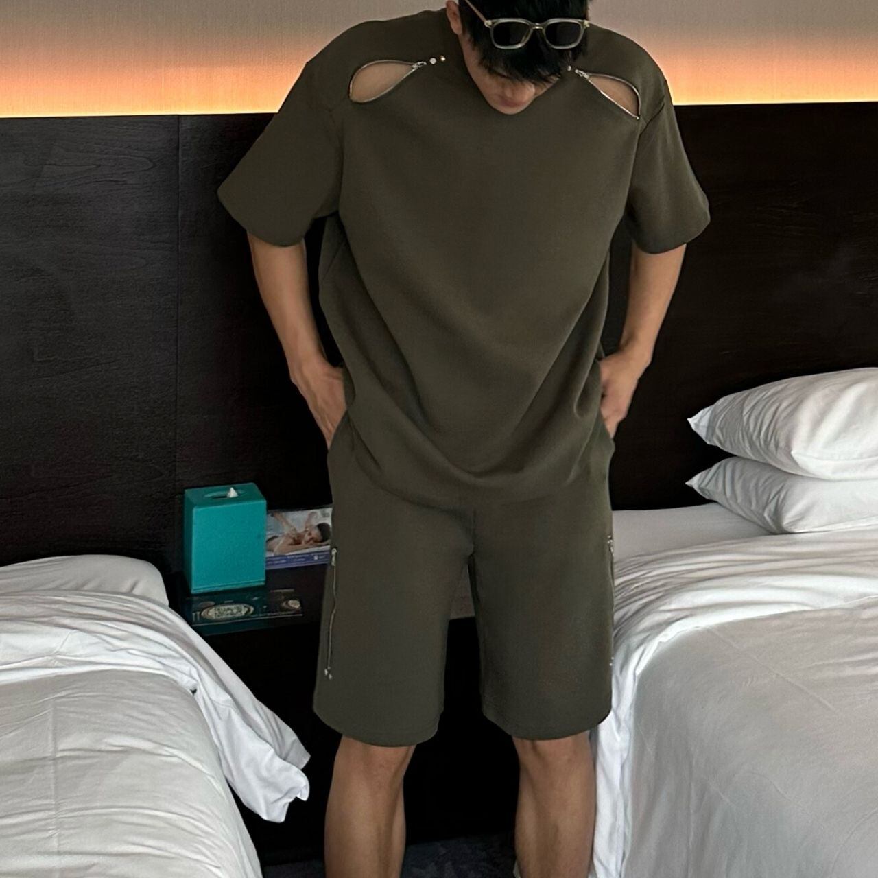 ジッパーTシャツ&ショートパンツセットアップ(上下セット売り) MT0530005