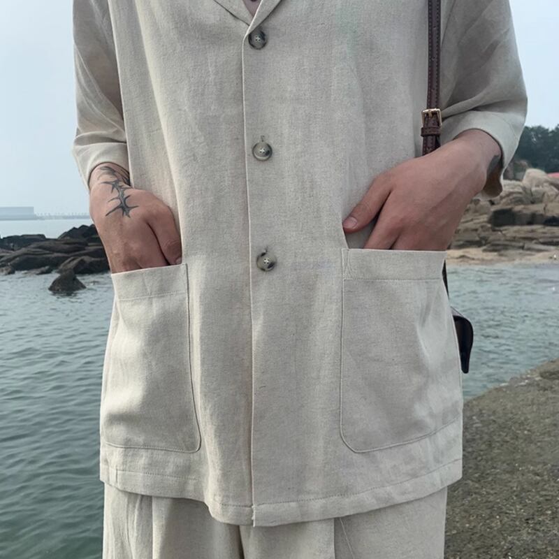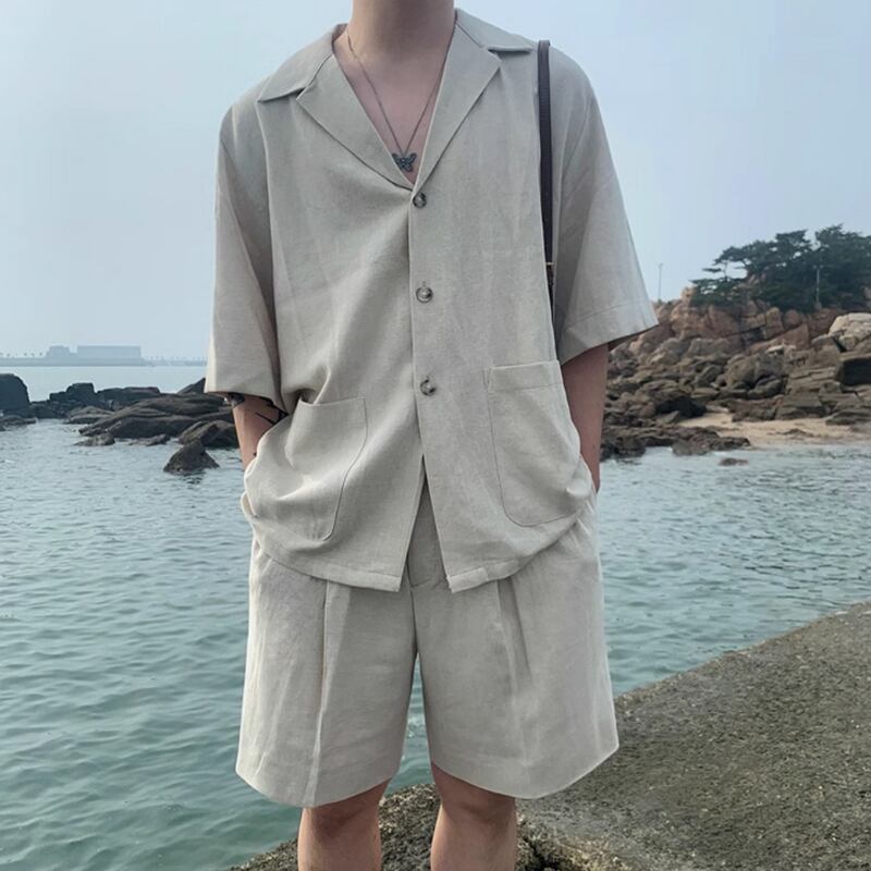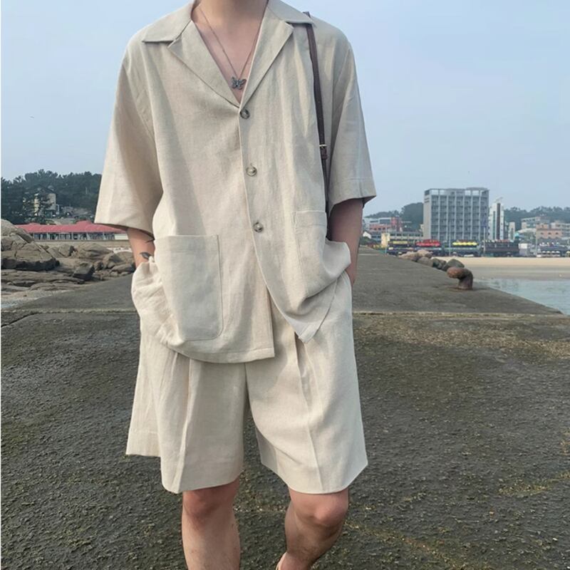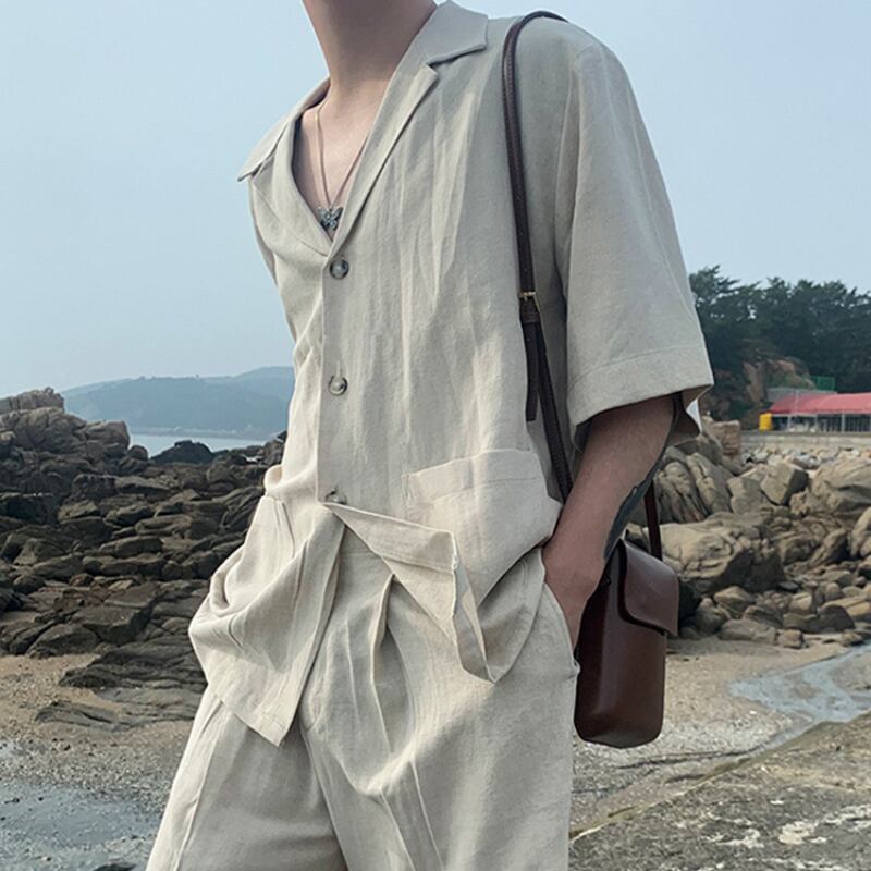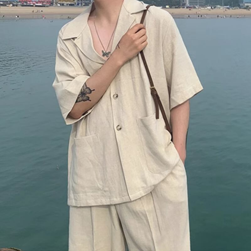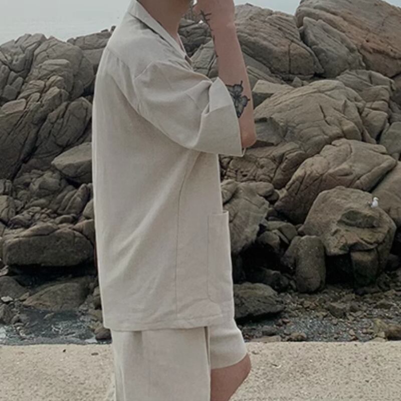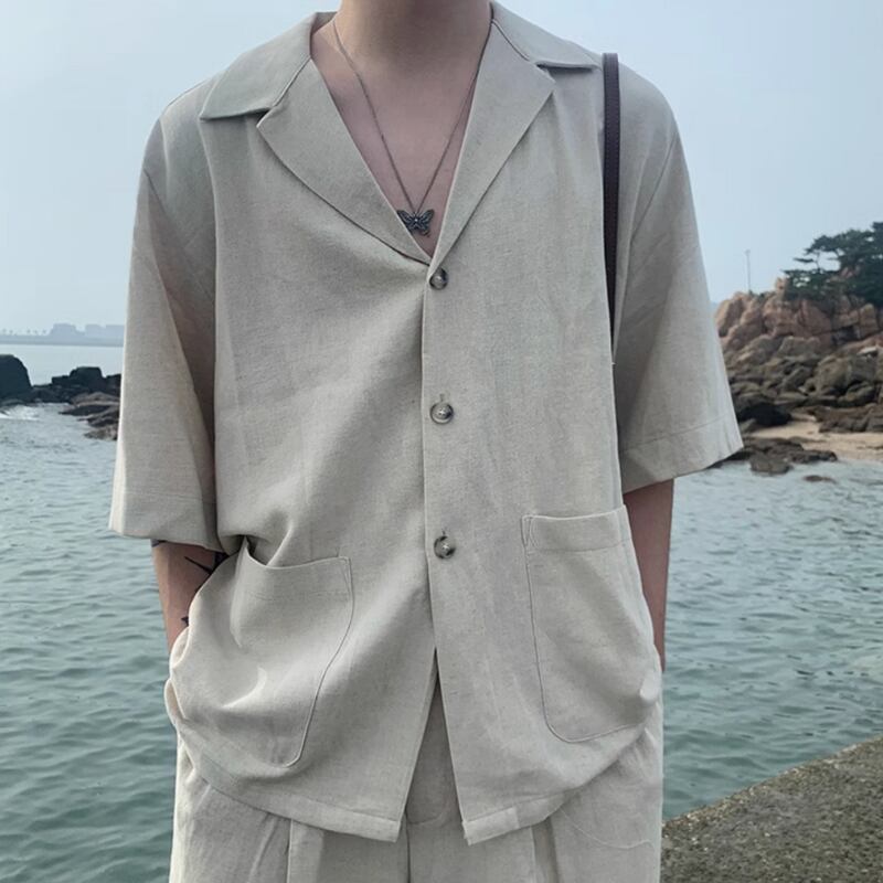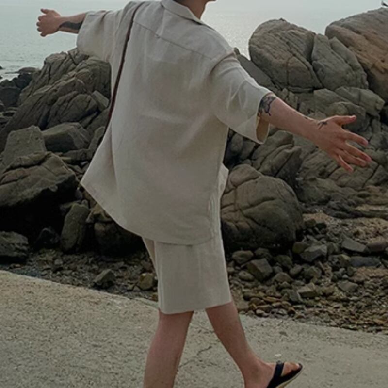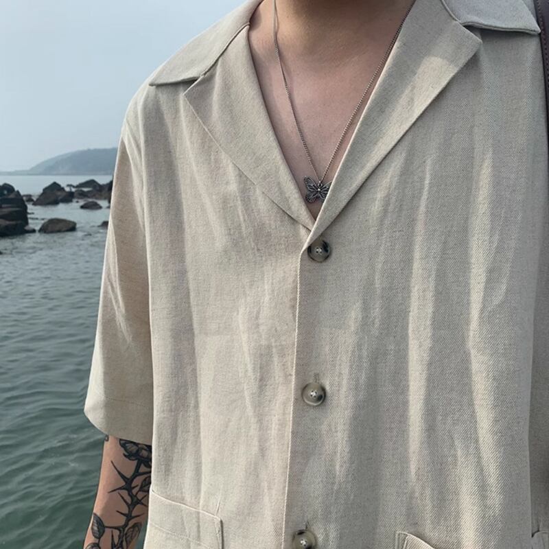 オープンカラーベージュシャツ(別売りでセットアップのショーツあり) 0621