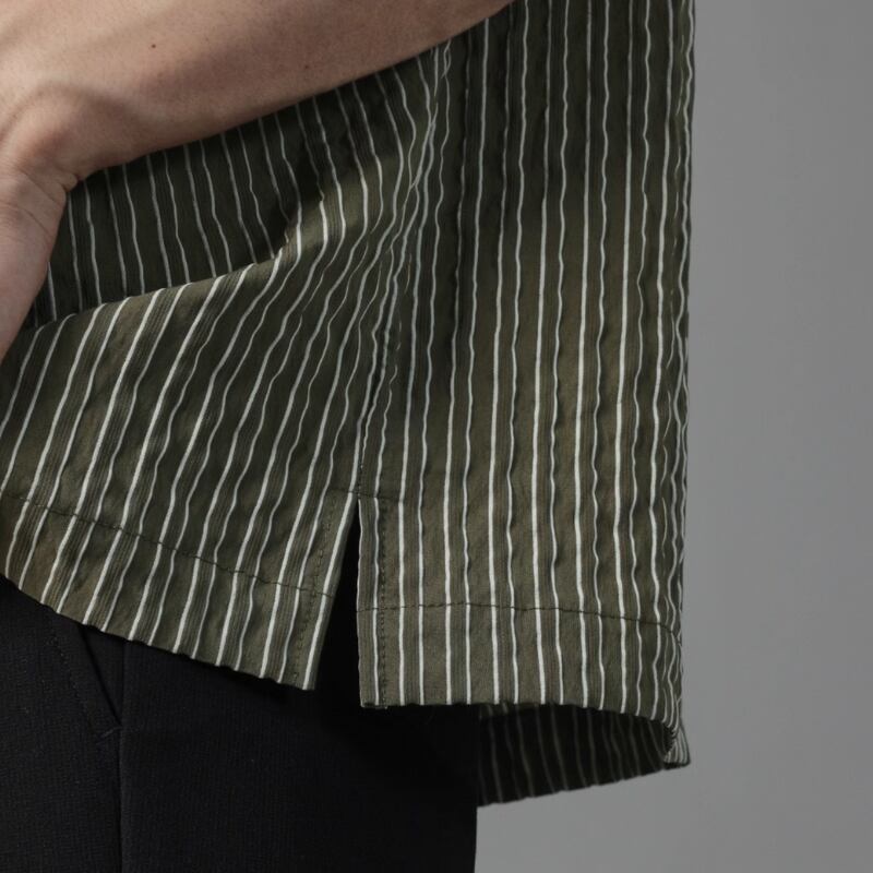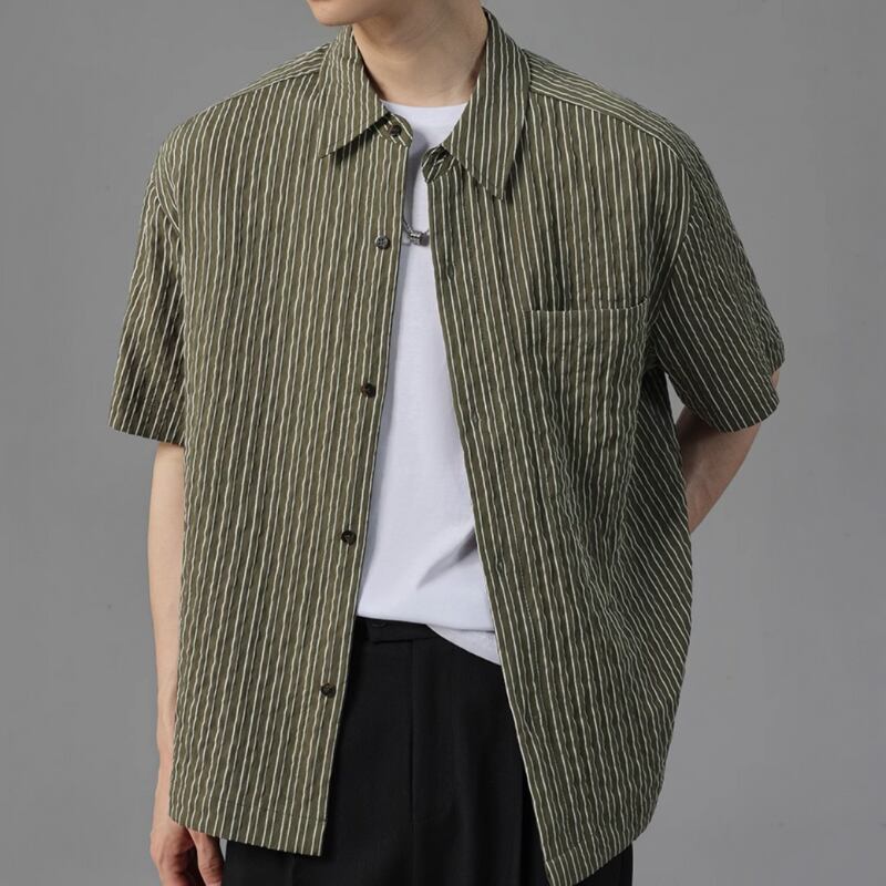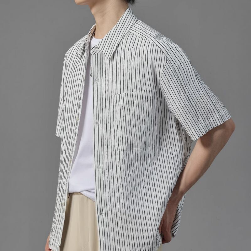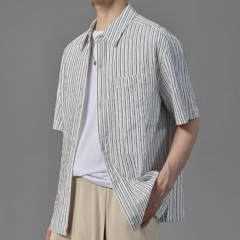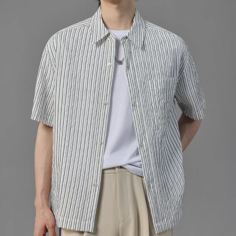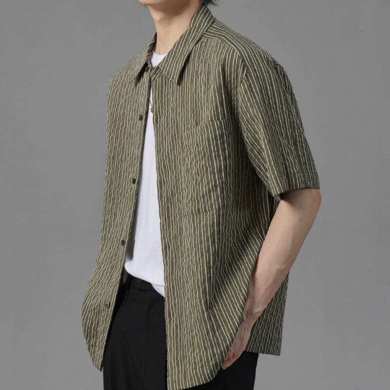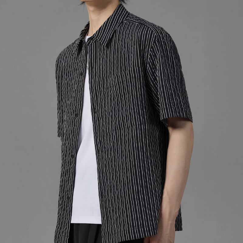 ピンストライプシワ加工半袖シャツ 0633