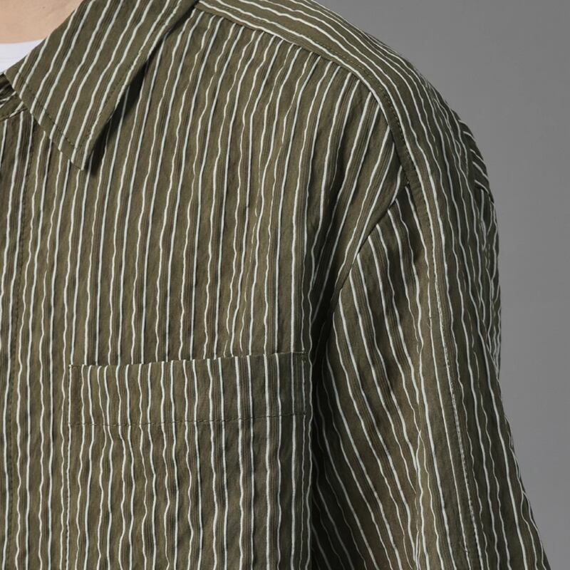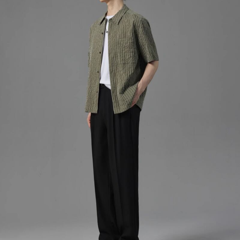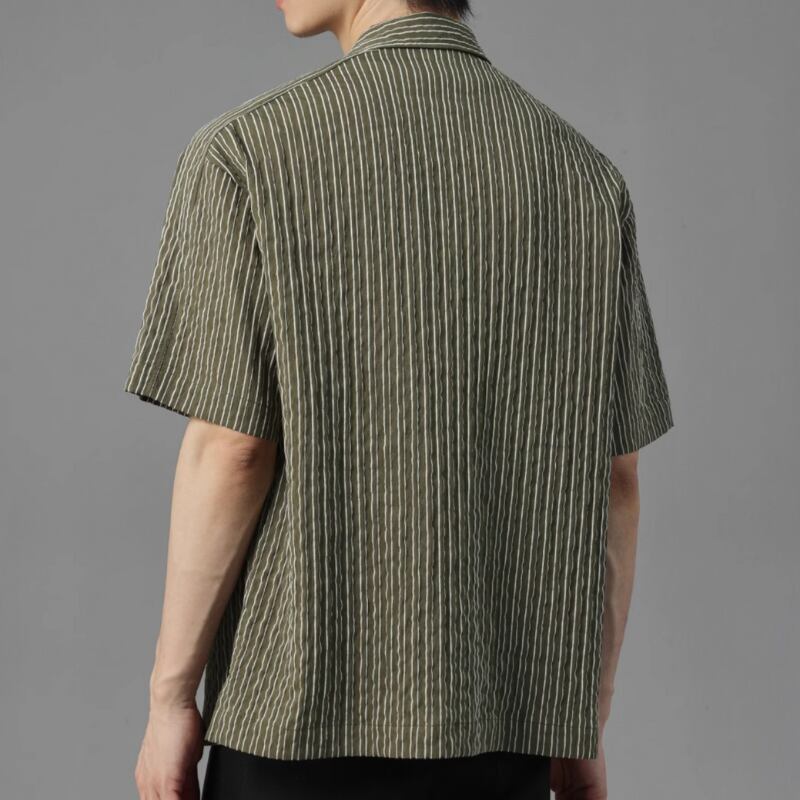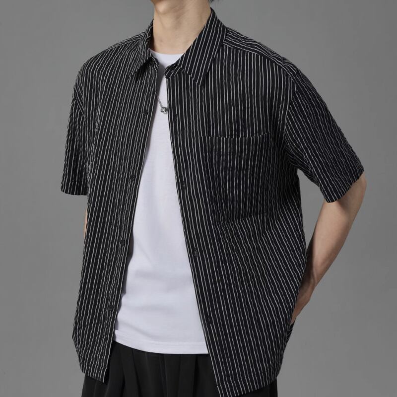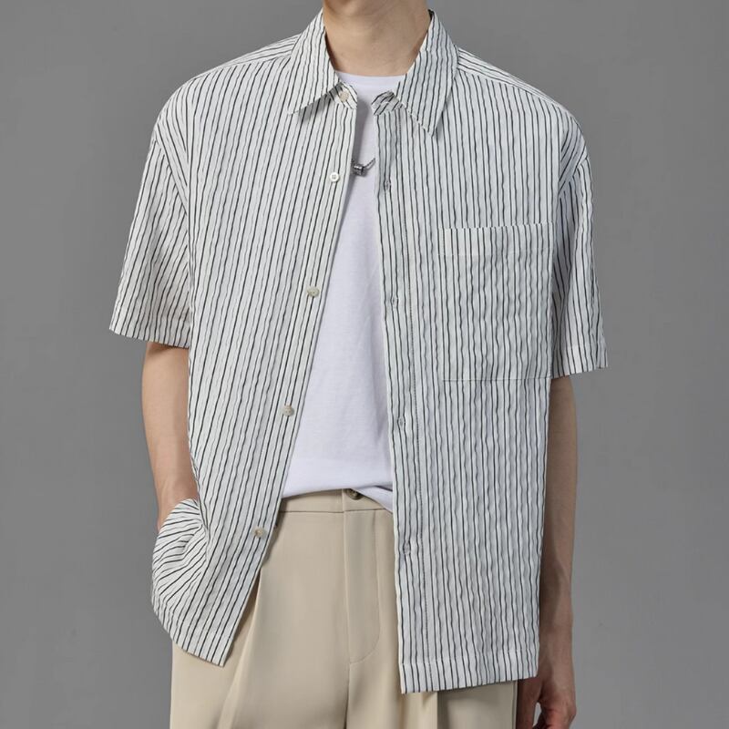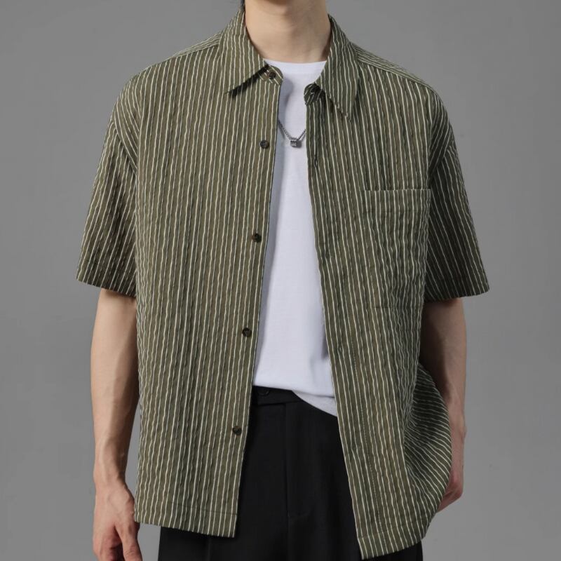 ピンストライプシワ加工半袖シャツ 0633