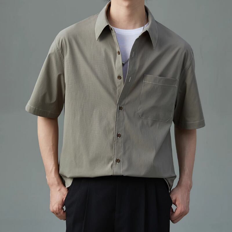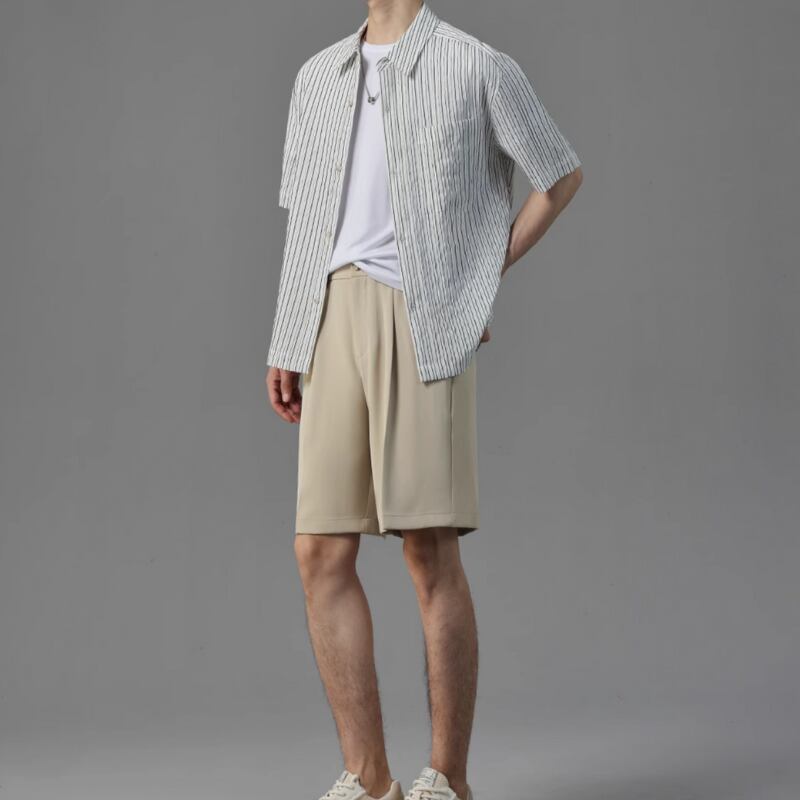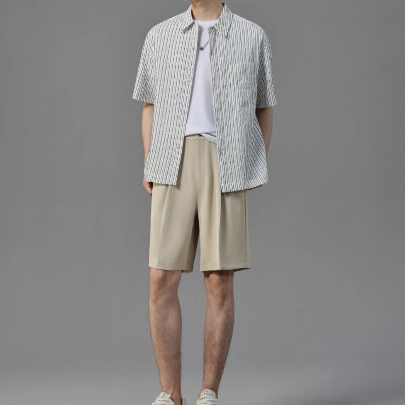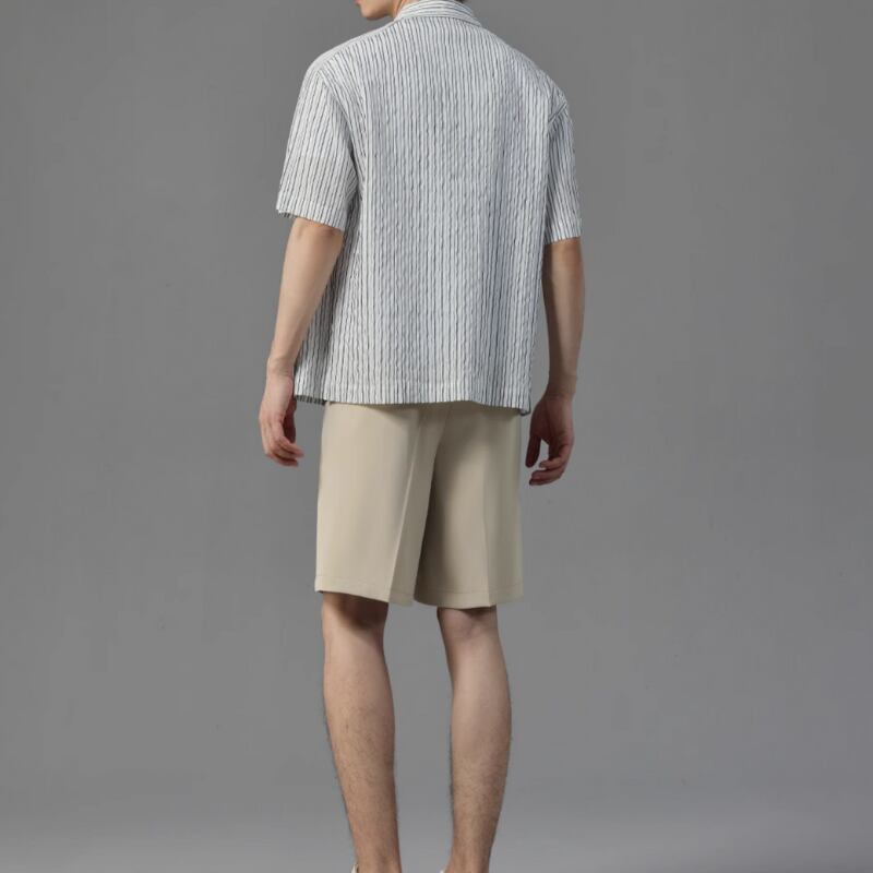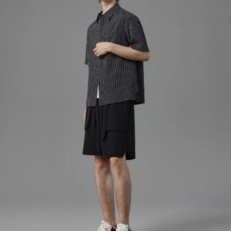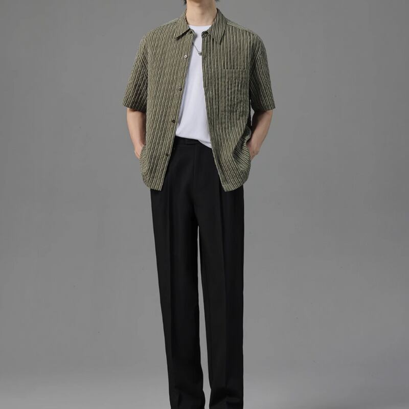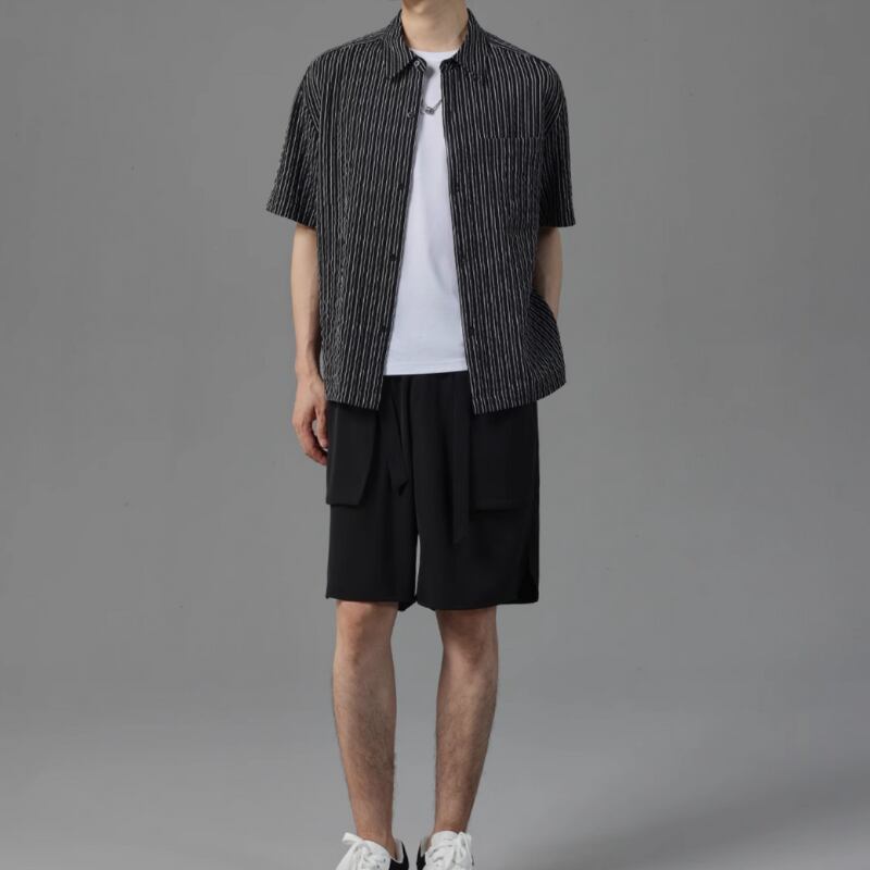 ピンストライプシワ加工半袖シャツ 0633