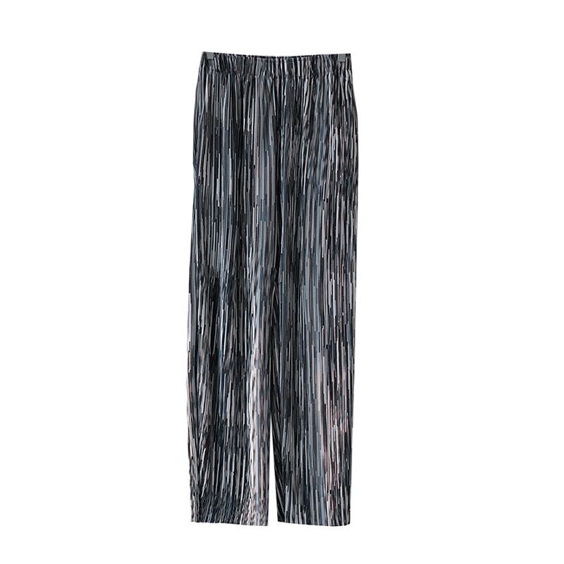 ルーズ水彩画調ストライプワイドプリーツパンツ 0641