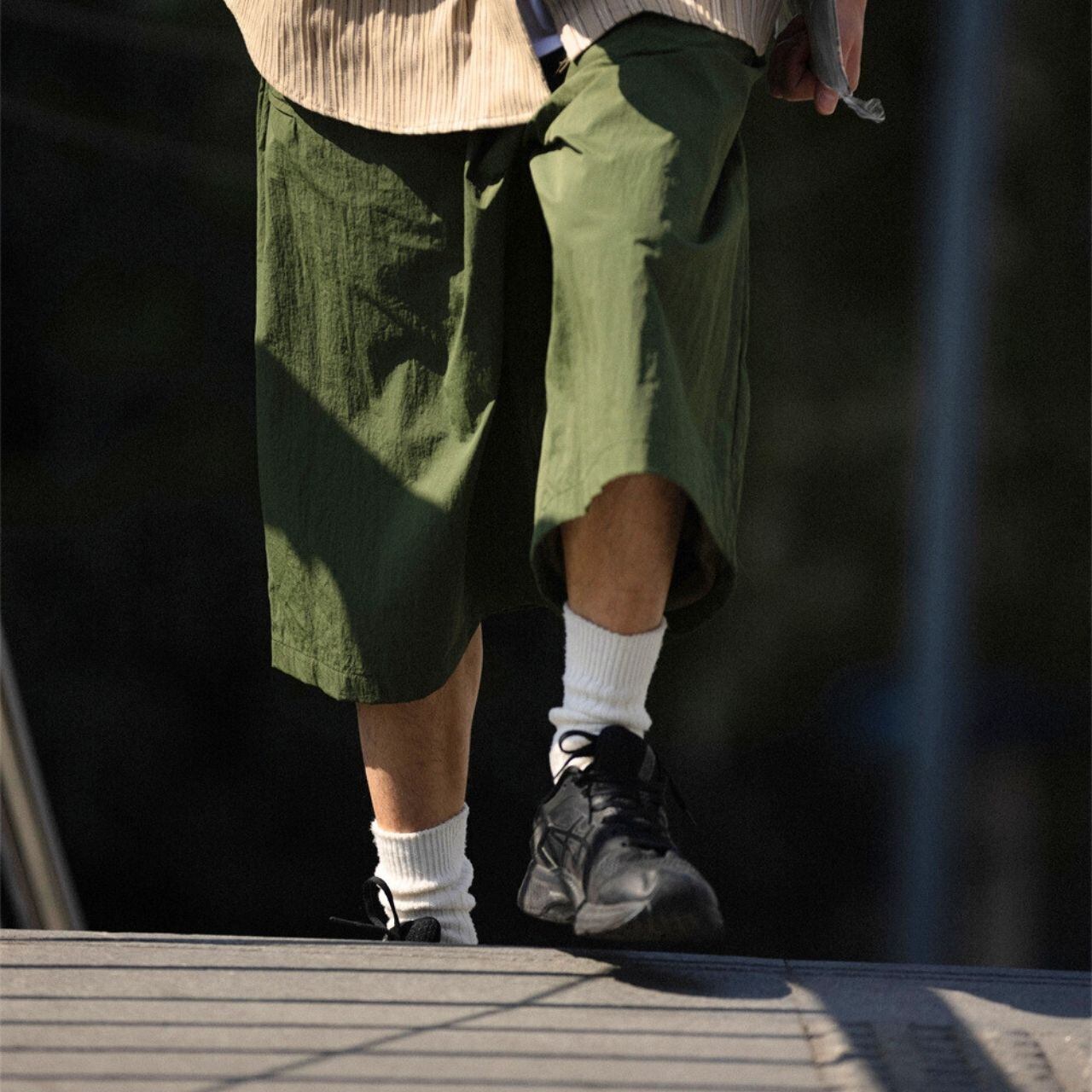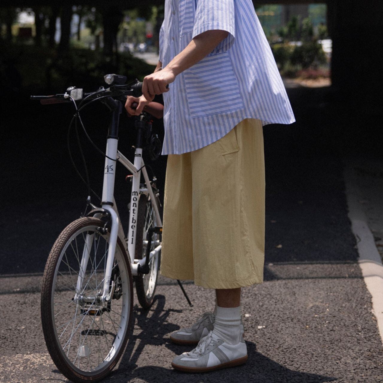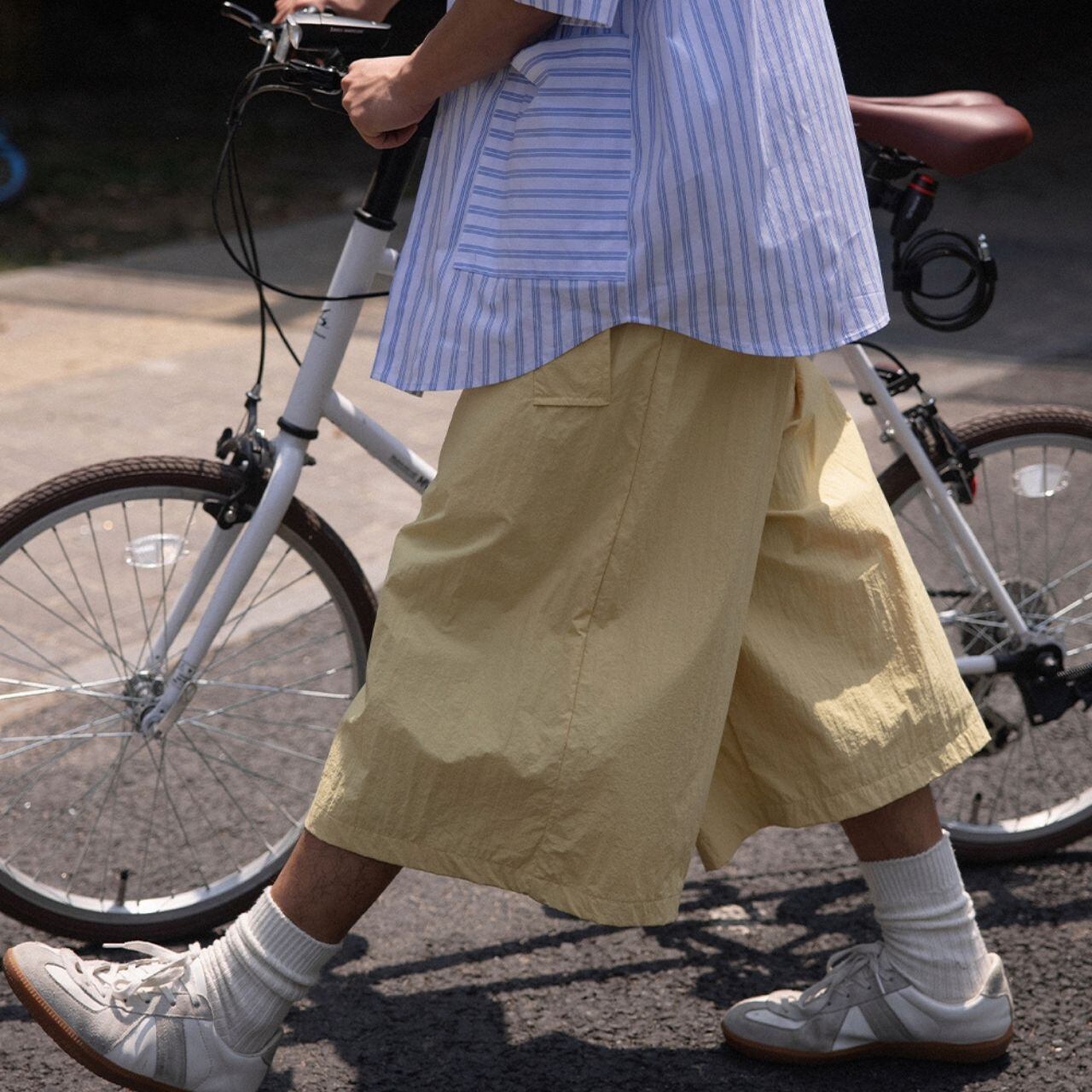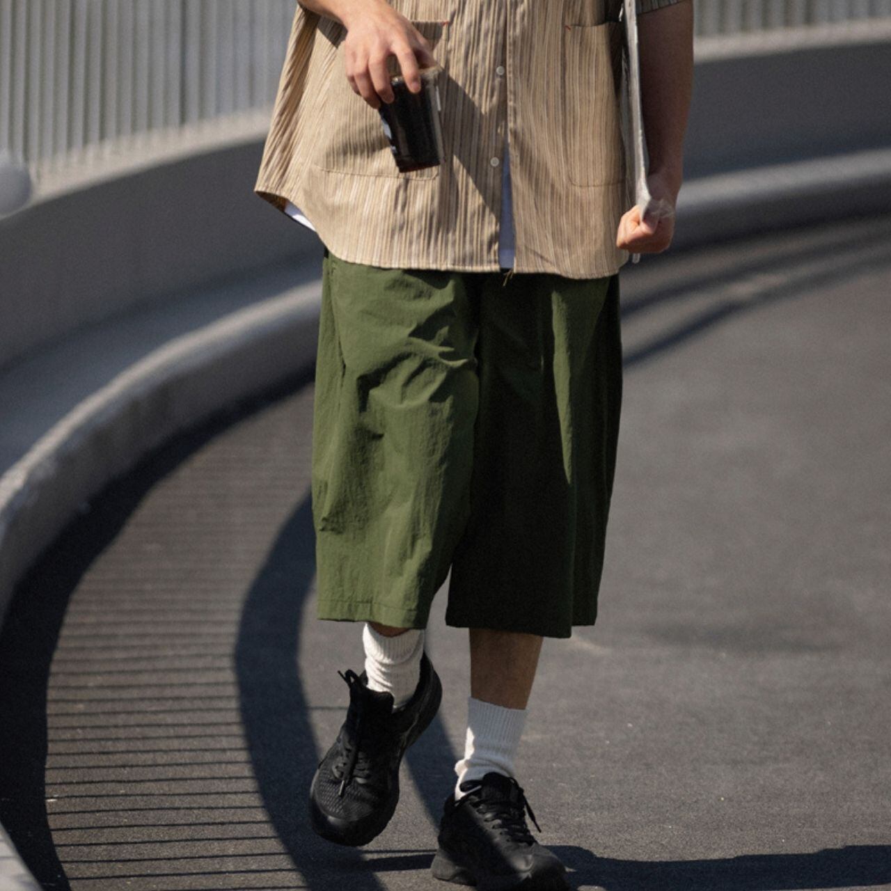 ワイドレッグ7分丈薄手ナイロンパンツ 0713