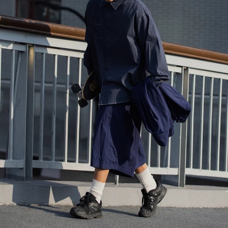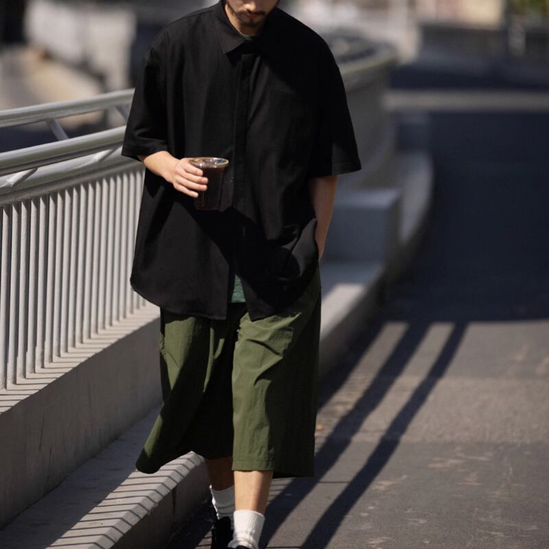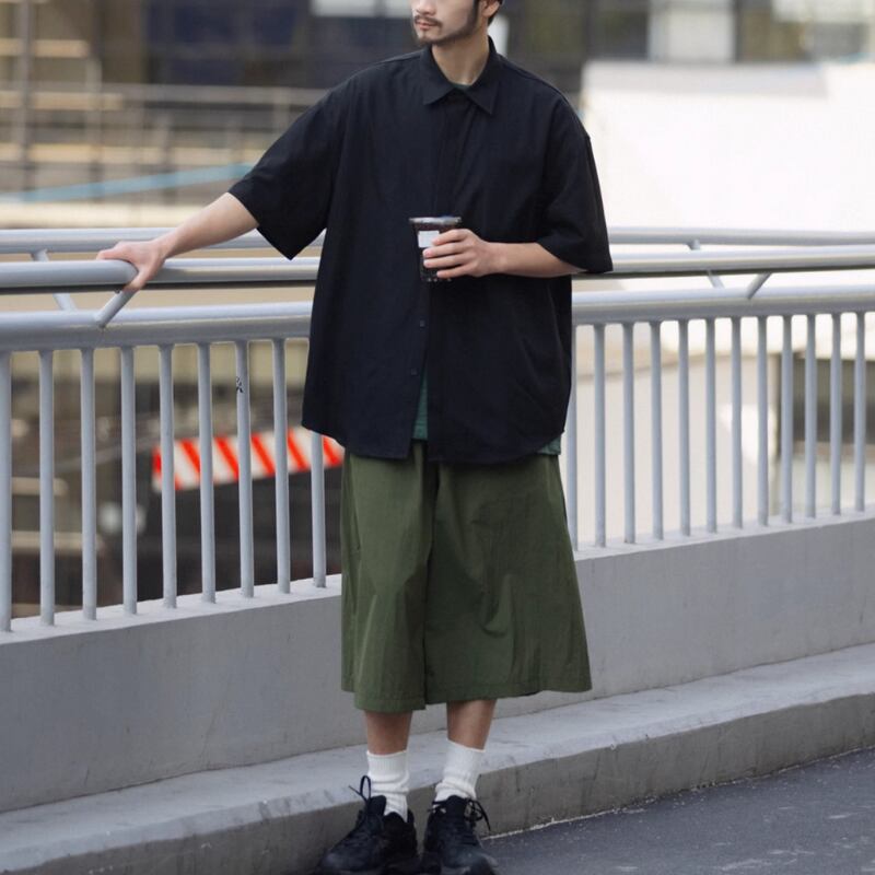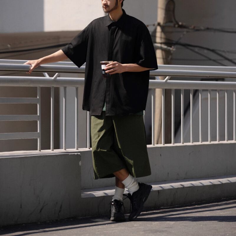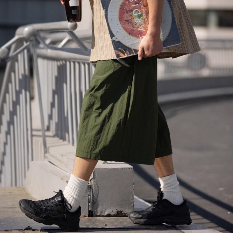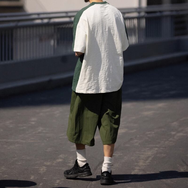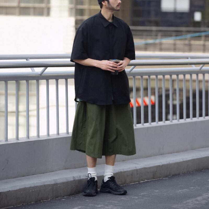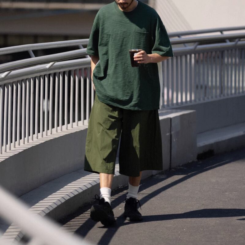 ワイドレッグ7分丈薄手ナイロンパンツ 0713