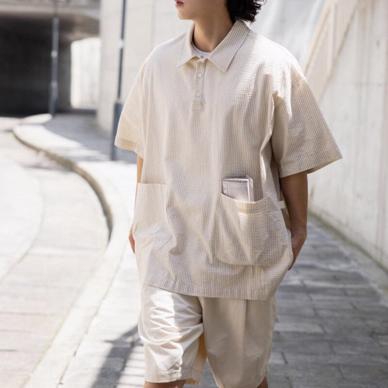 - M 肩幅: 48 cm 胸囲: 122 cm 着丈: 76 cm 袖丈: 30 cm