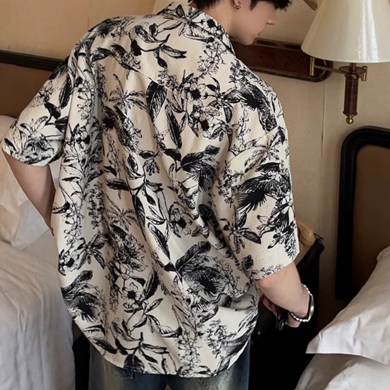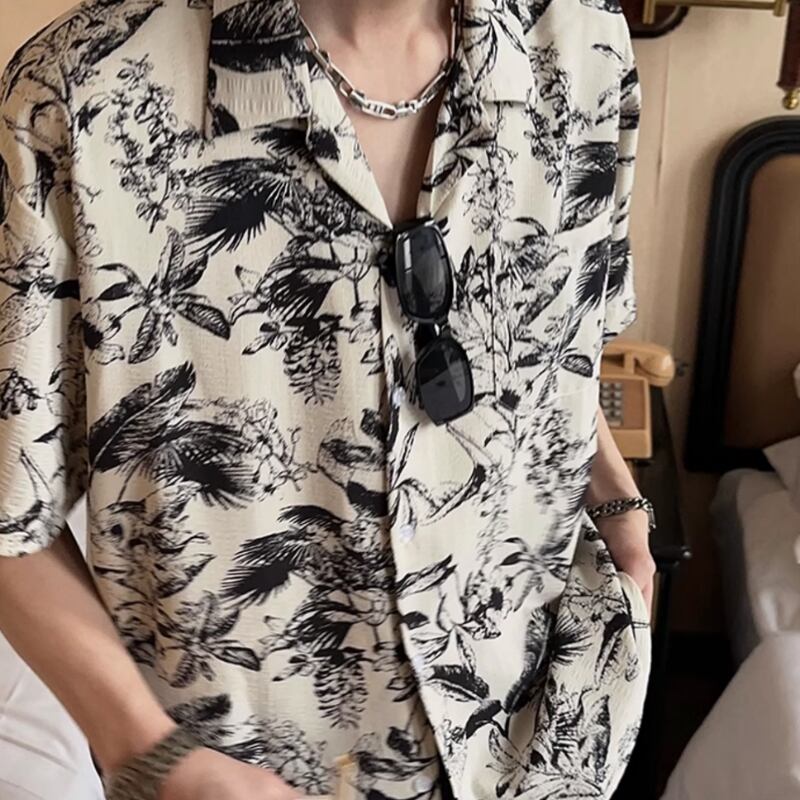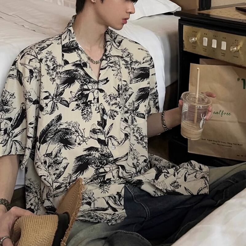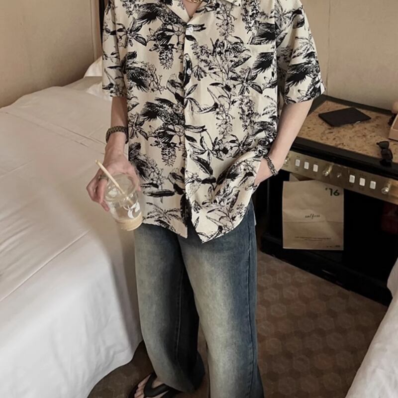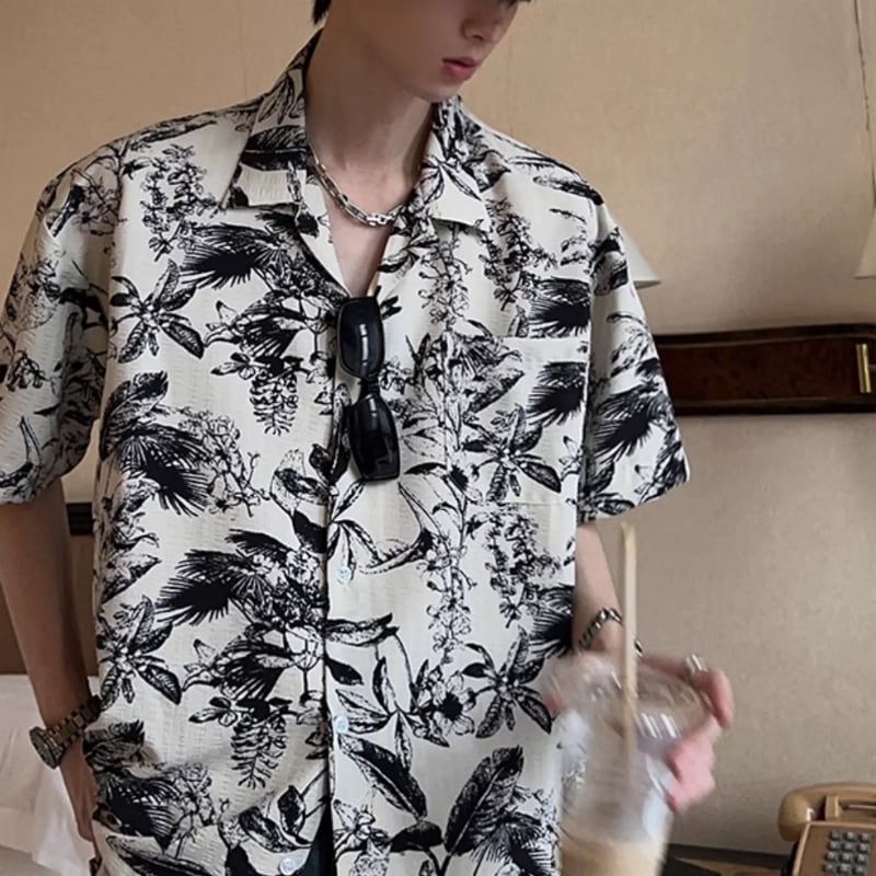 キューバカラービーチ花柄半袖シャツ 0729