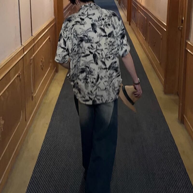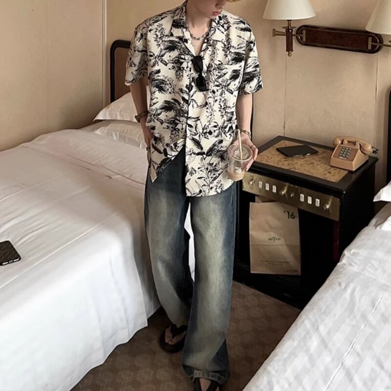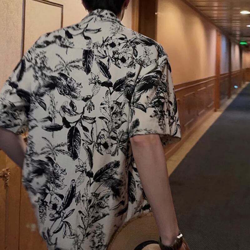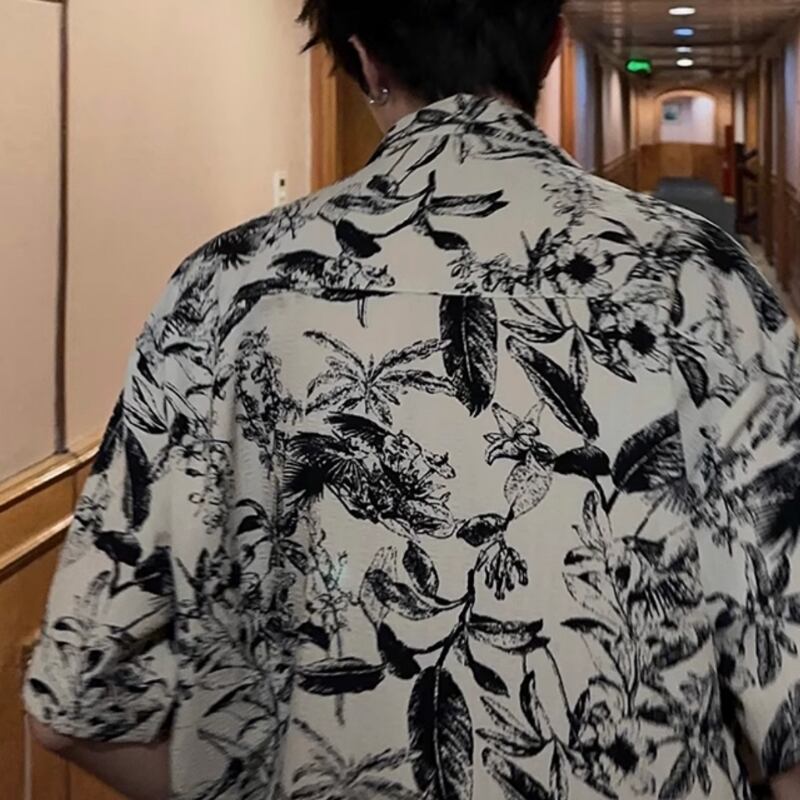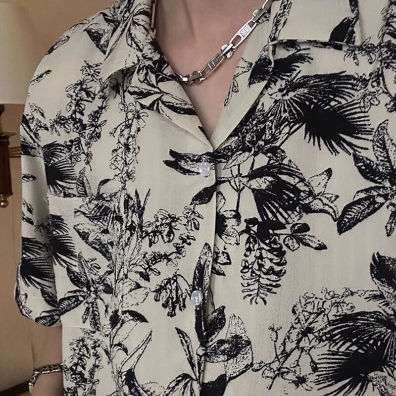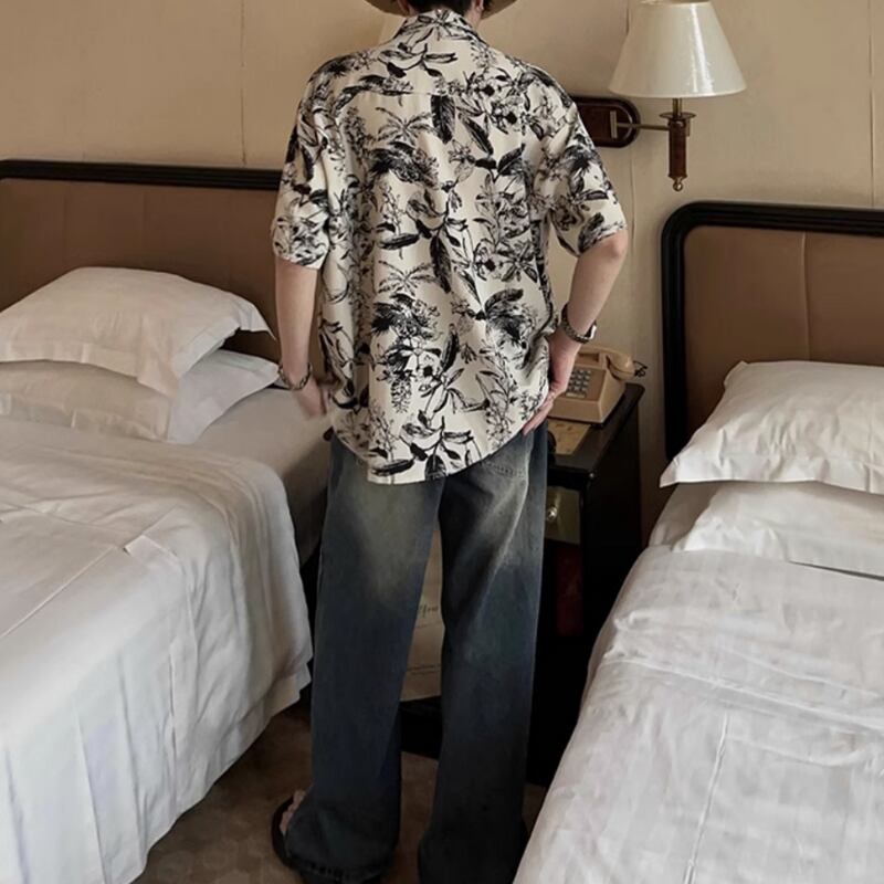 キューバカラービーチ花柄半袖シャツ 0729