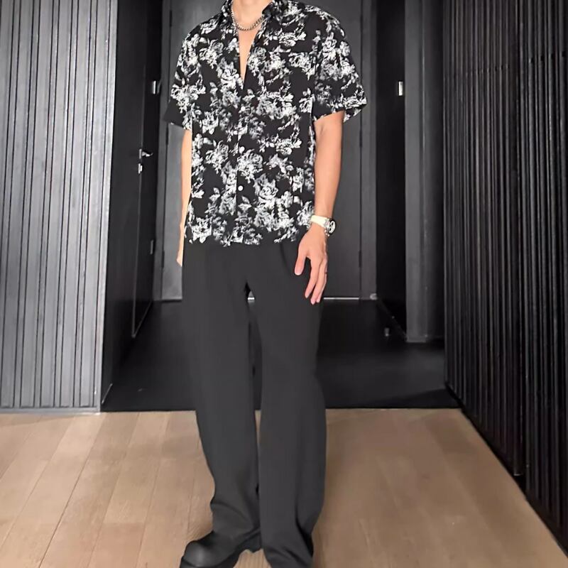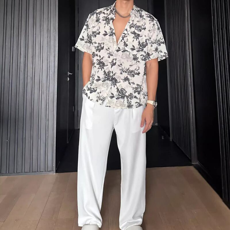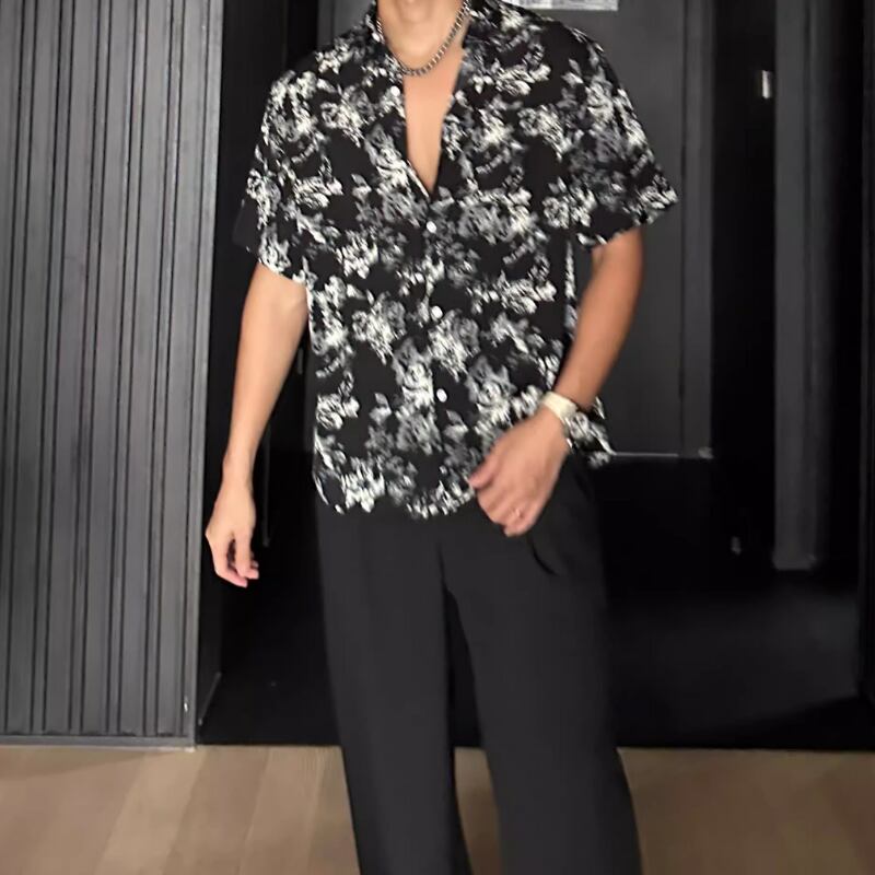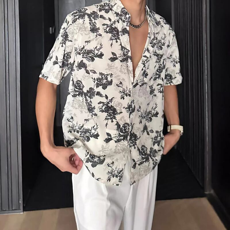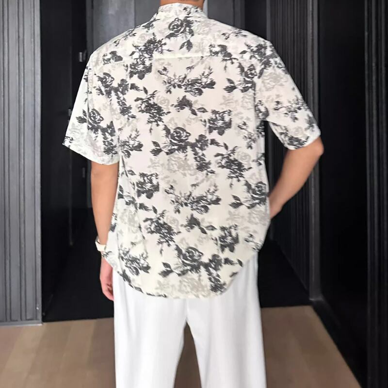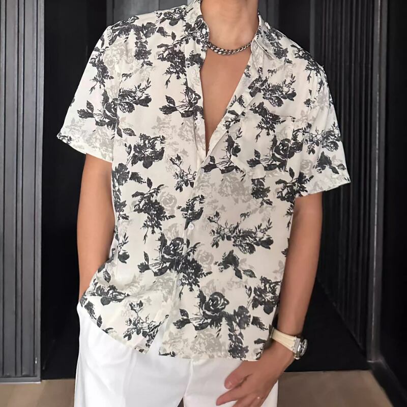 ハワイアンバケーションルーズ半袖花柄シャツ 0744