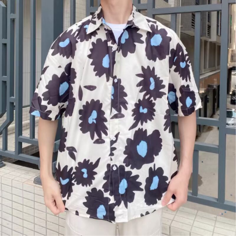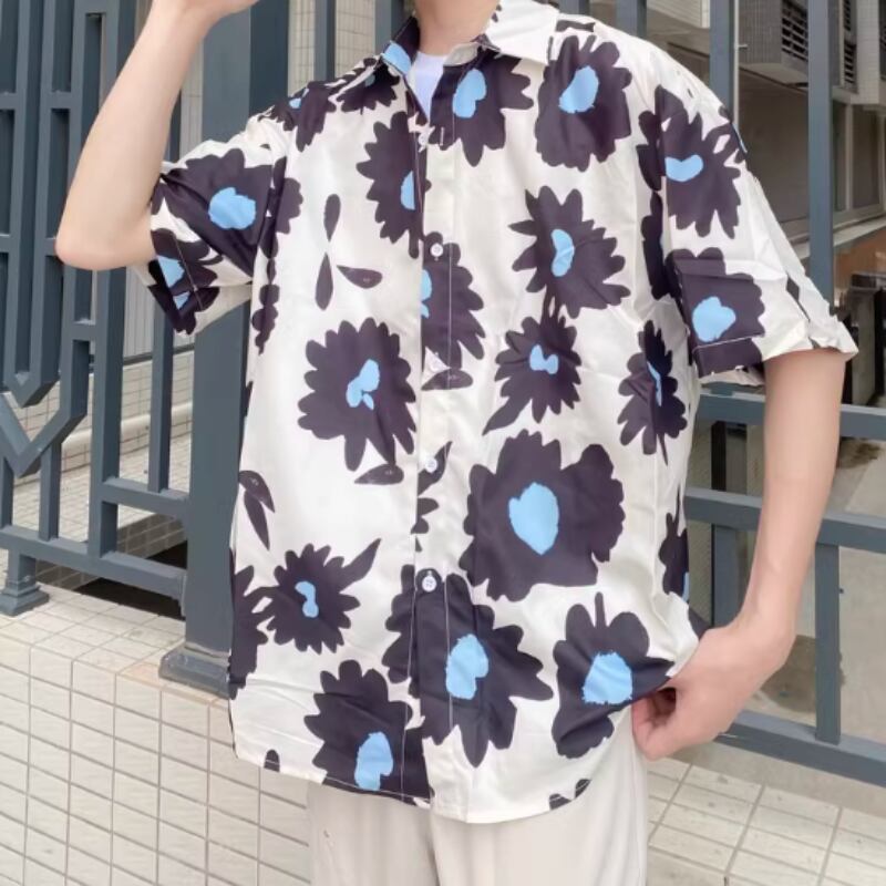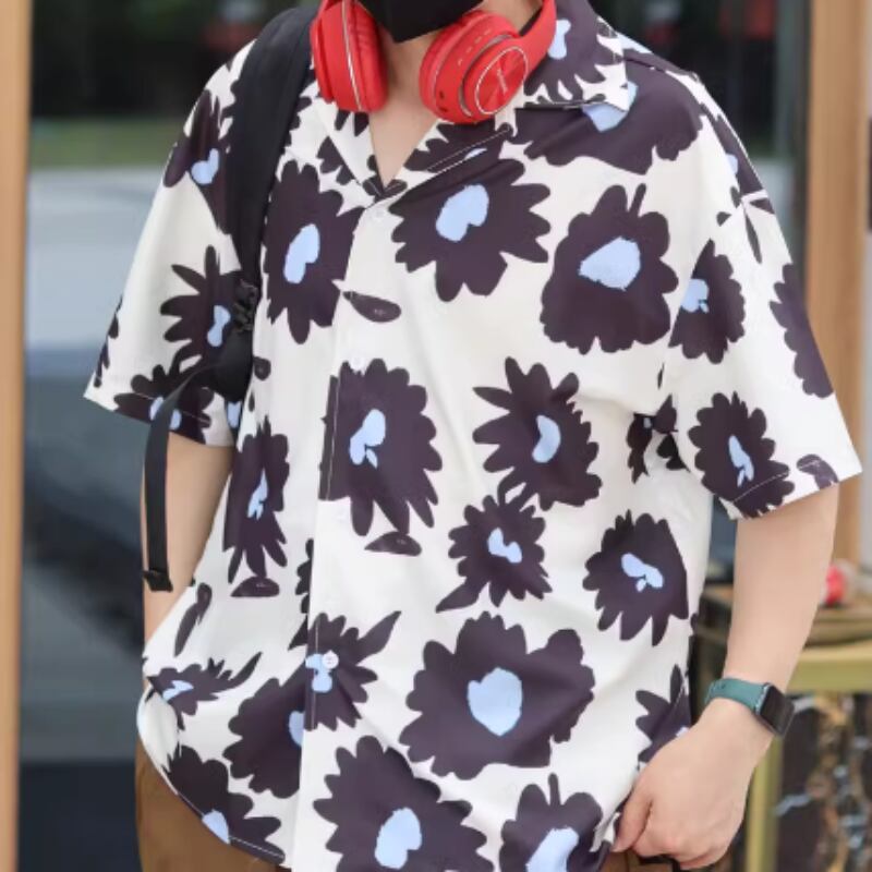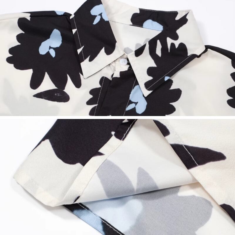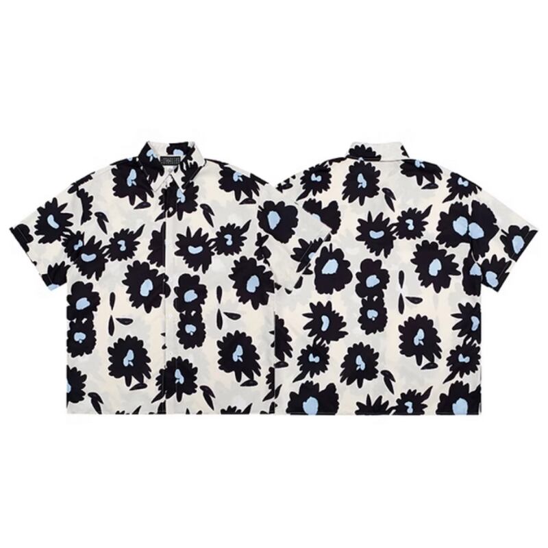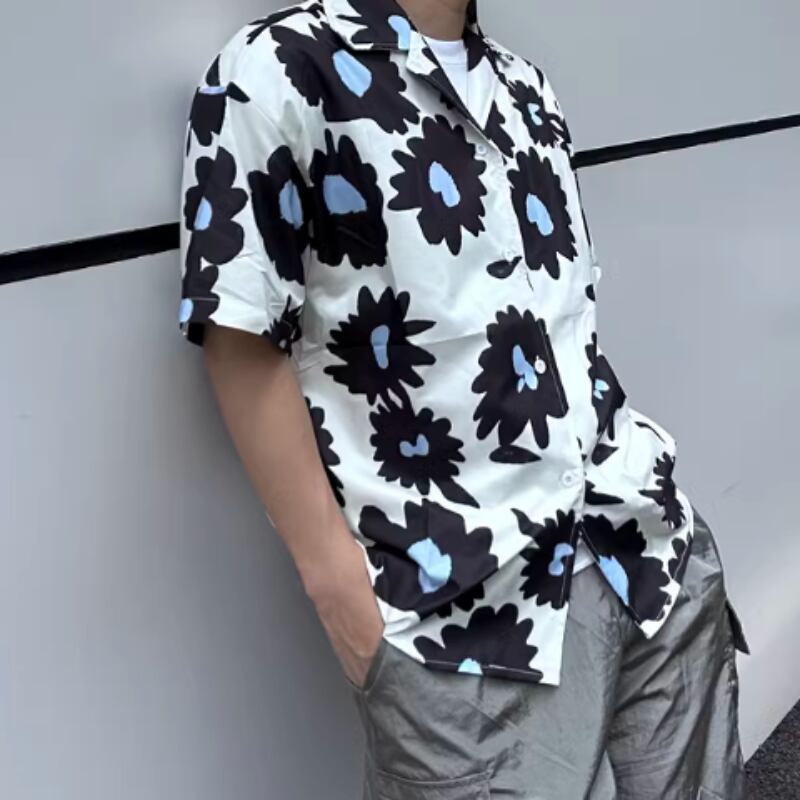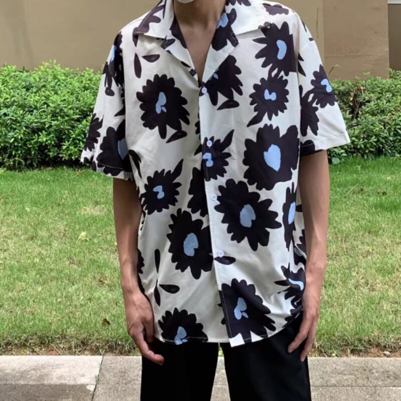 フラワーグラフィックプリント半袖シャツ 0766