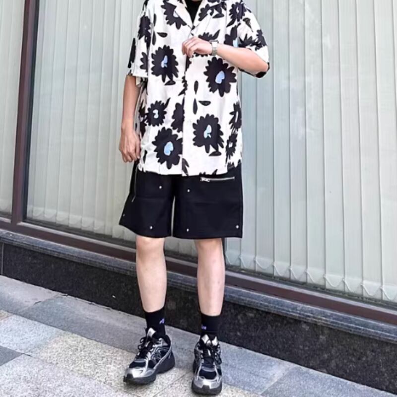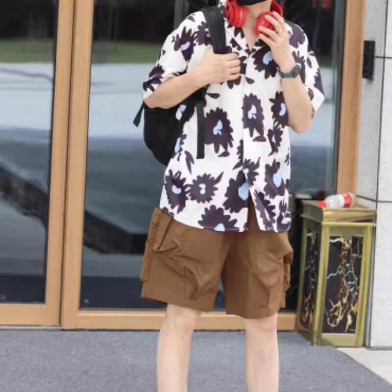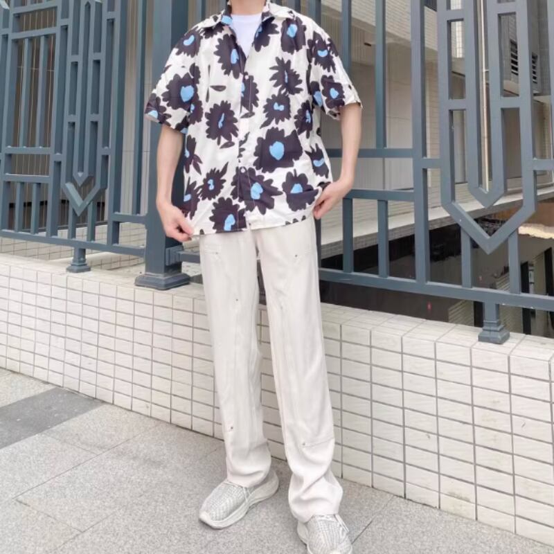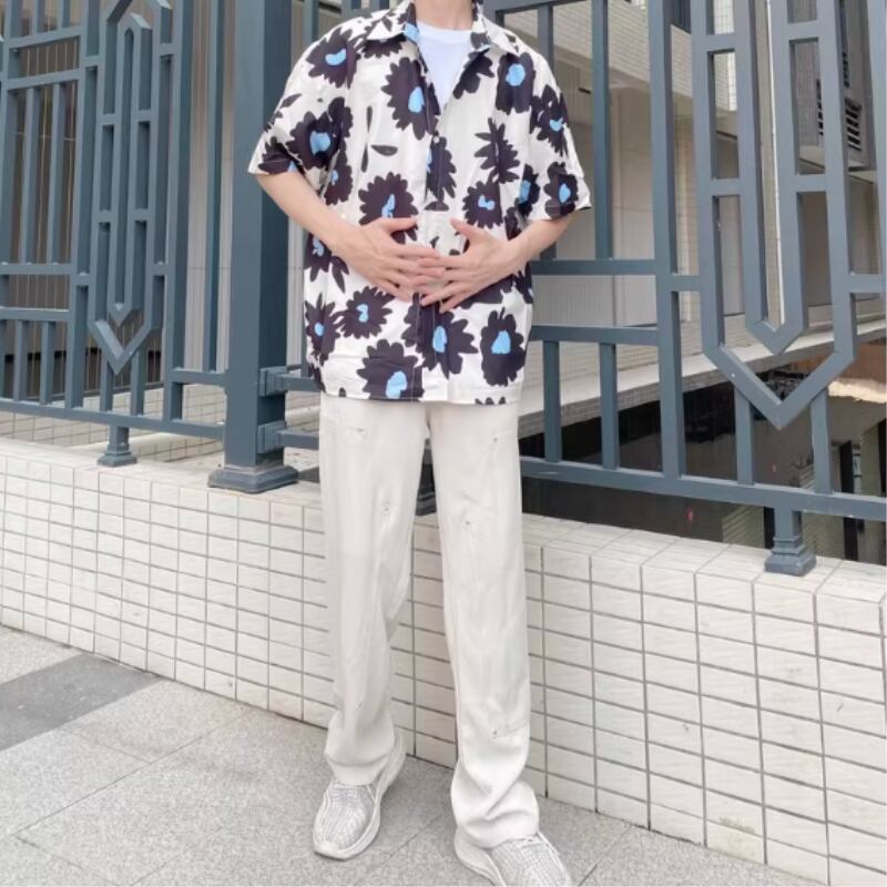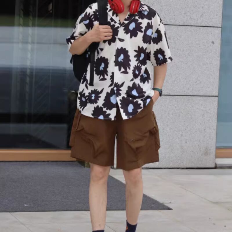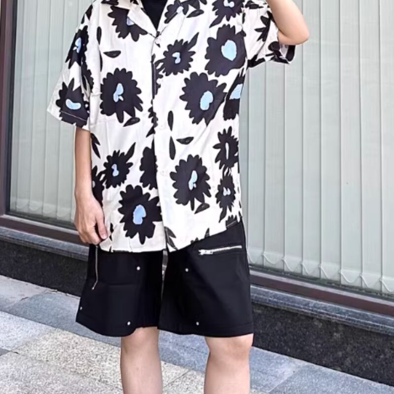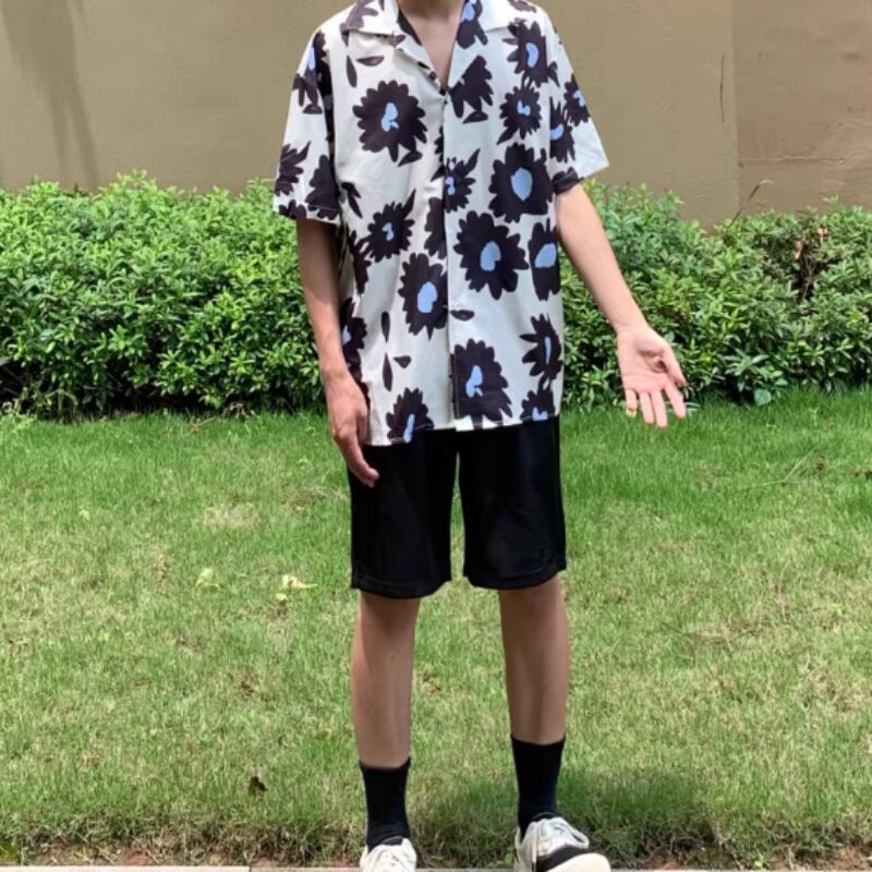 フラワーグラフィックプリント半袖シャツ 0766