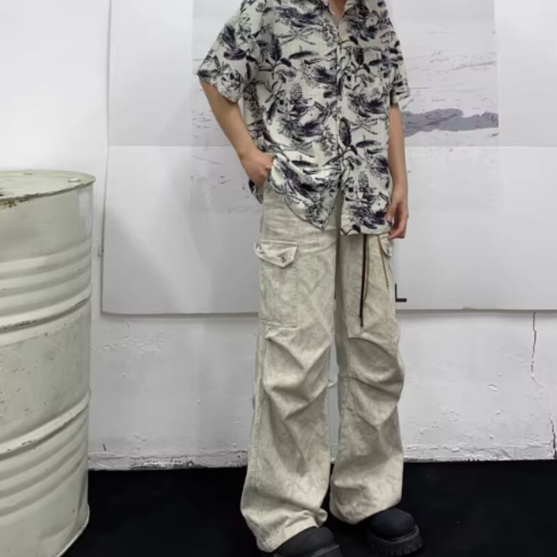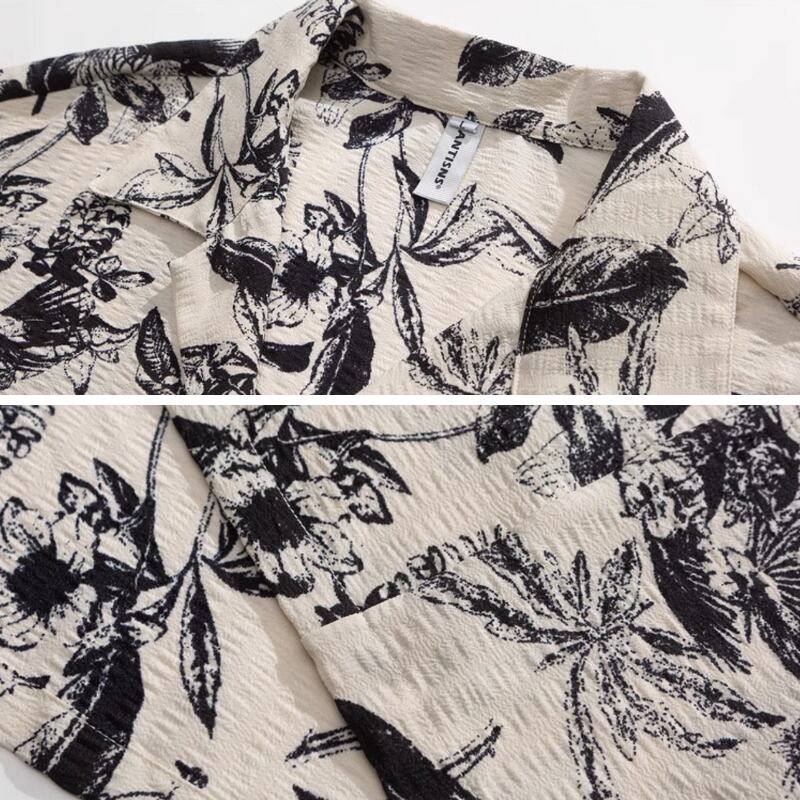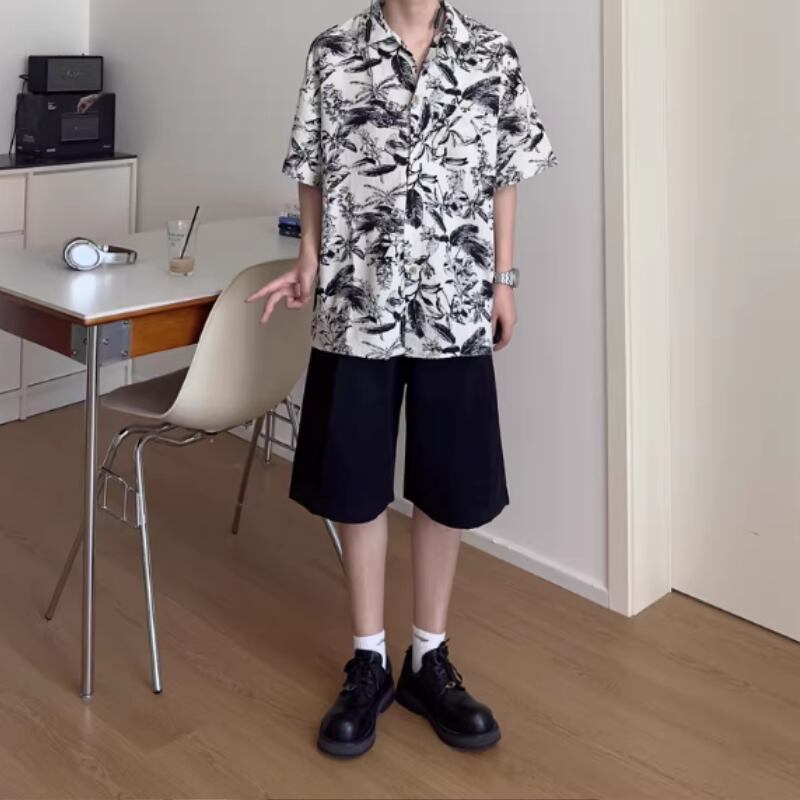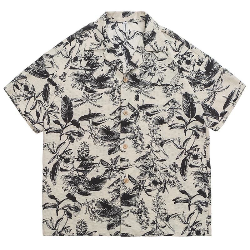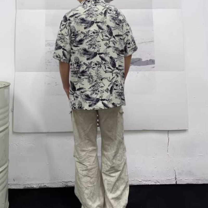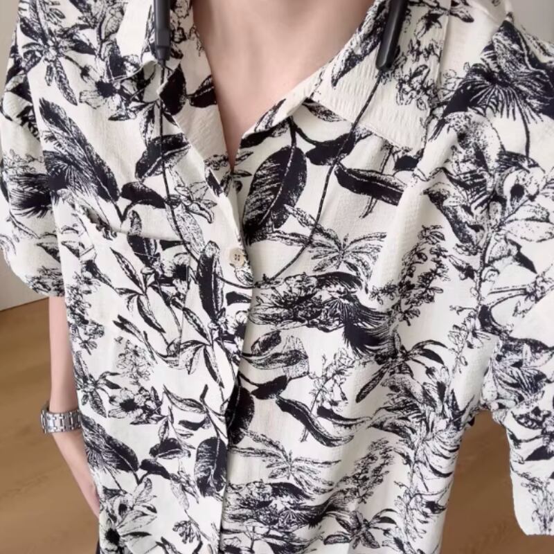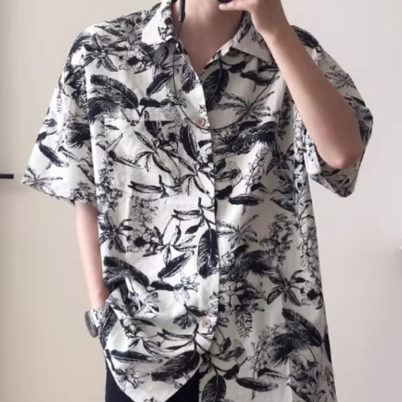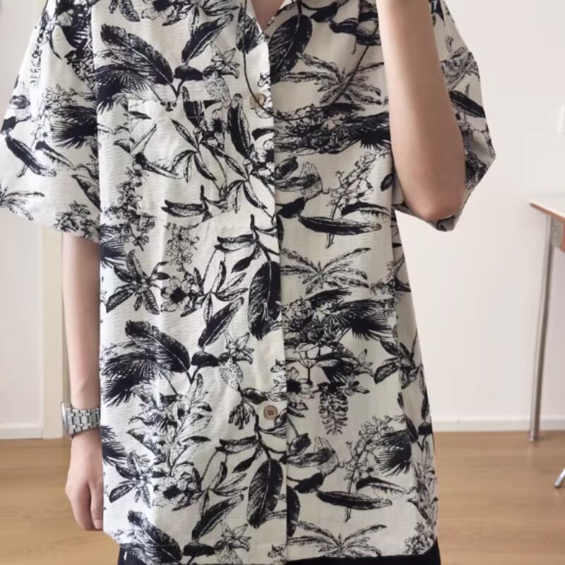 レトロ花柄ルーズ半袖シャツ 0753