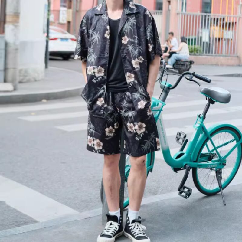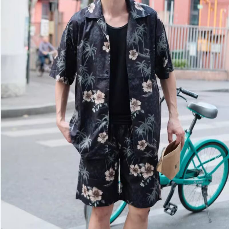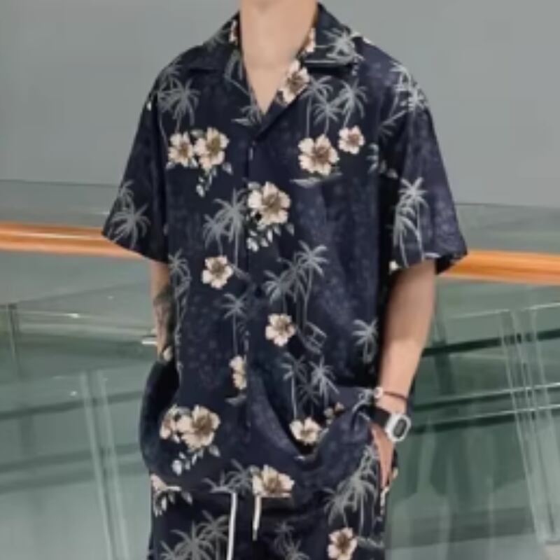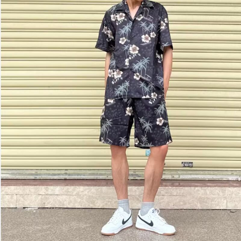ハワイアン柄プリント半袖シャツ(別売りでセットアップのショーツあり) 0757