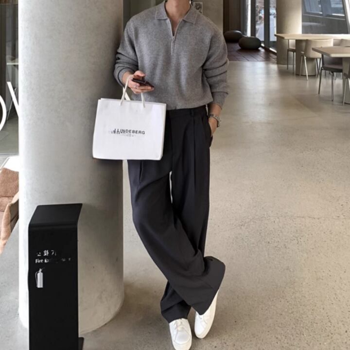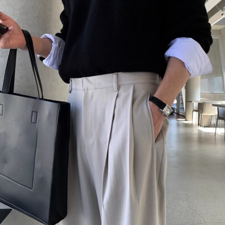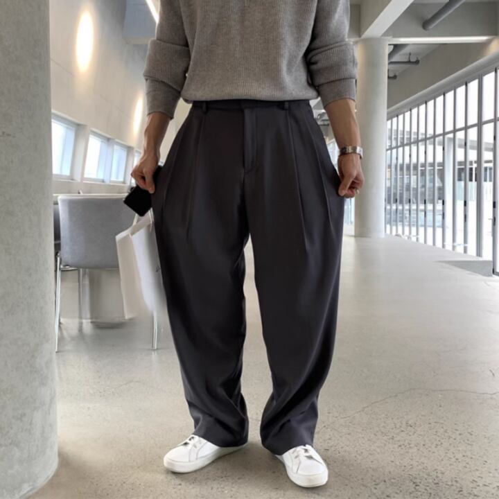 ダブルプリーツドレープワイドカジュアルパンツ 0751