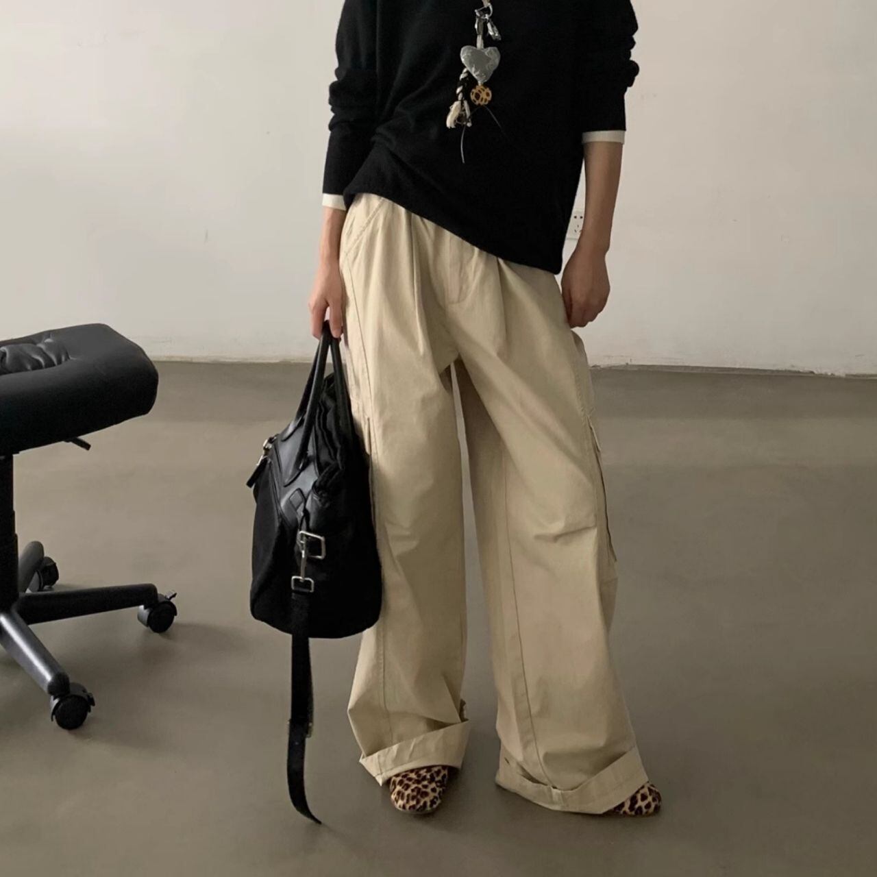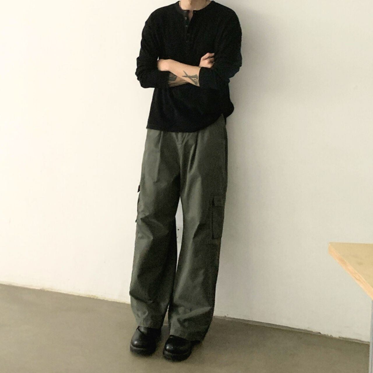ルーズストレートユニセックスサイドポケットパンツ 0889