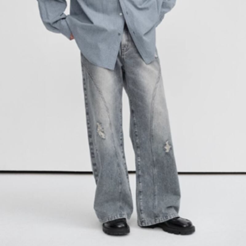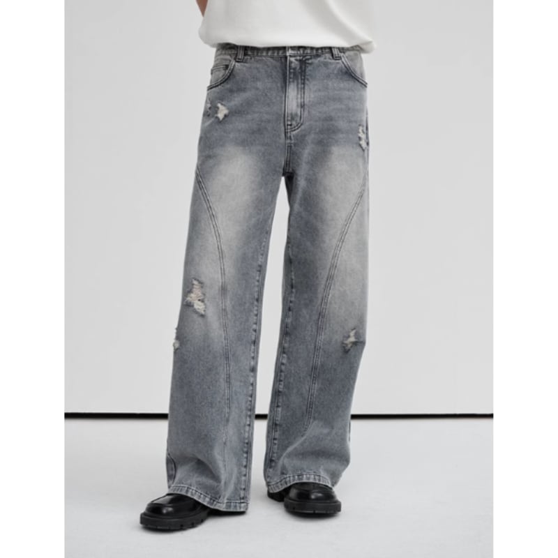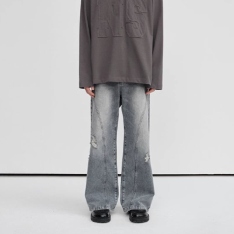 イレギュラークラッシュユーズド調デニム 0895