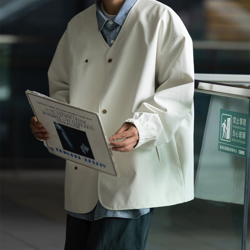 ノーカラーダブルブ防水薄手ジャケット 980