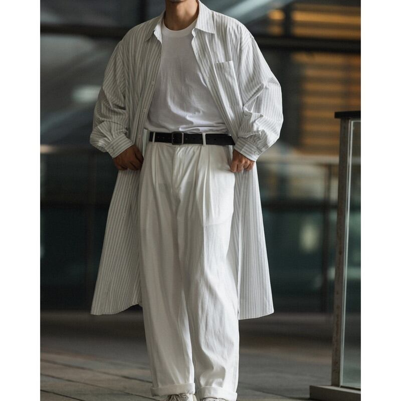 ホワイトオーバーニーロングシャツコート 972