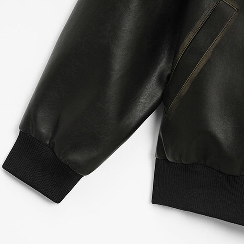 レトロダメージバッグロゴフェイクレザーブルゾン 943