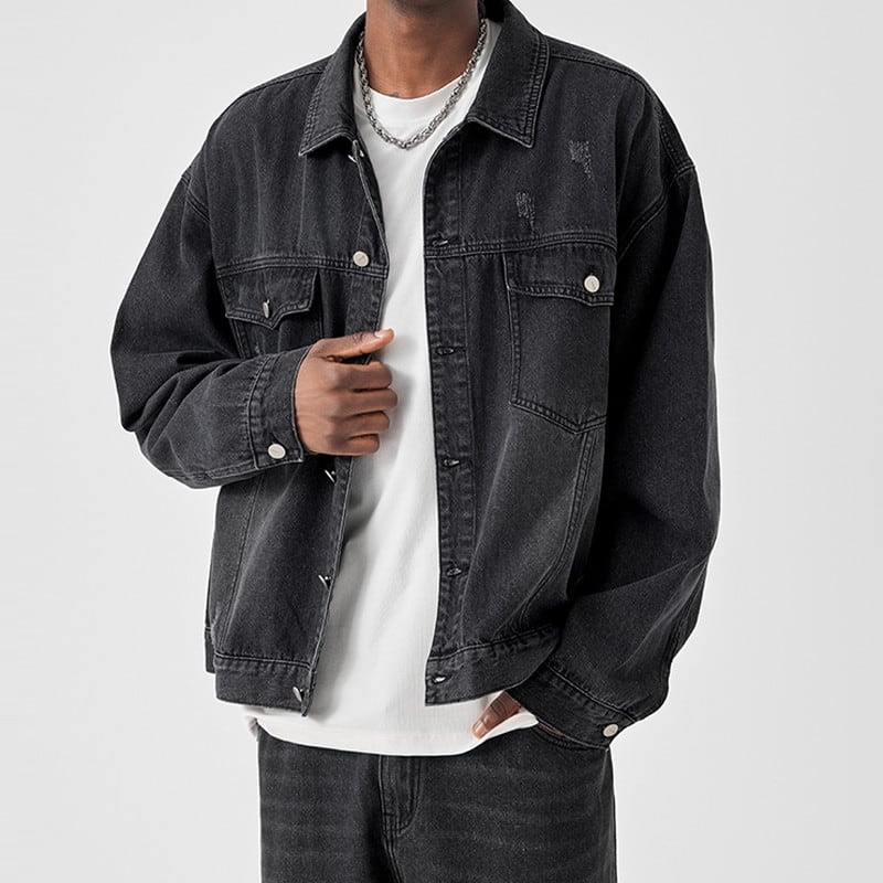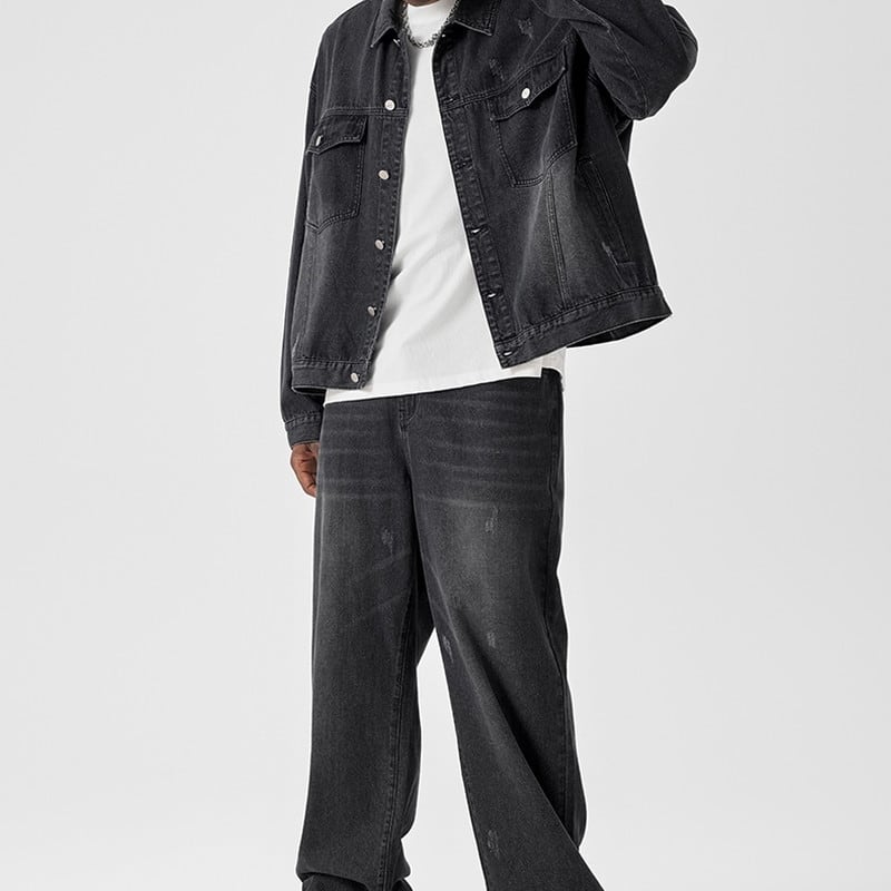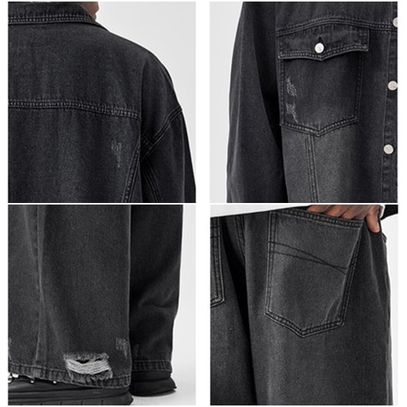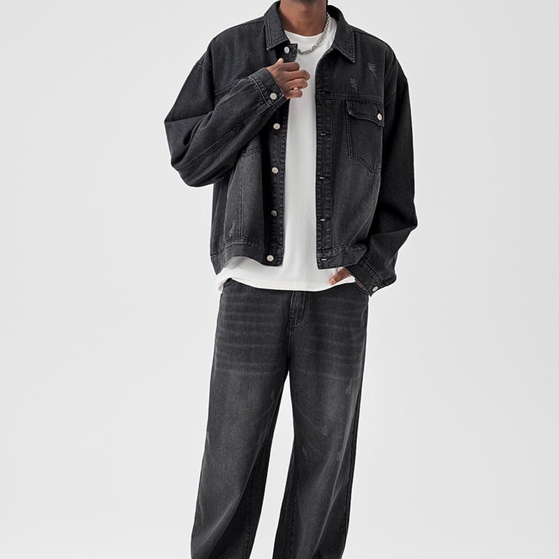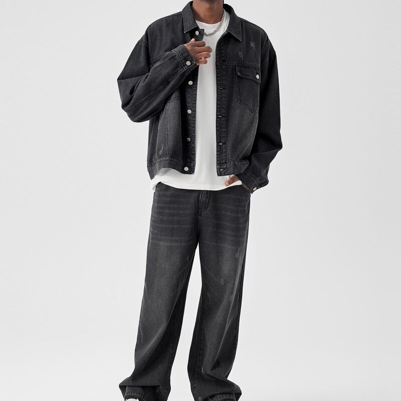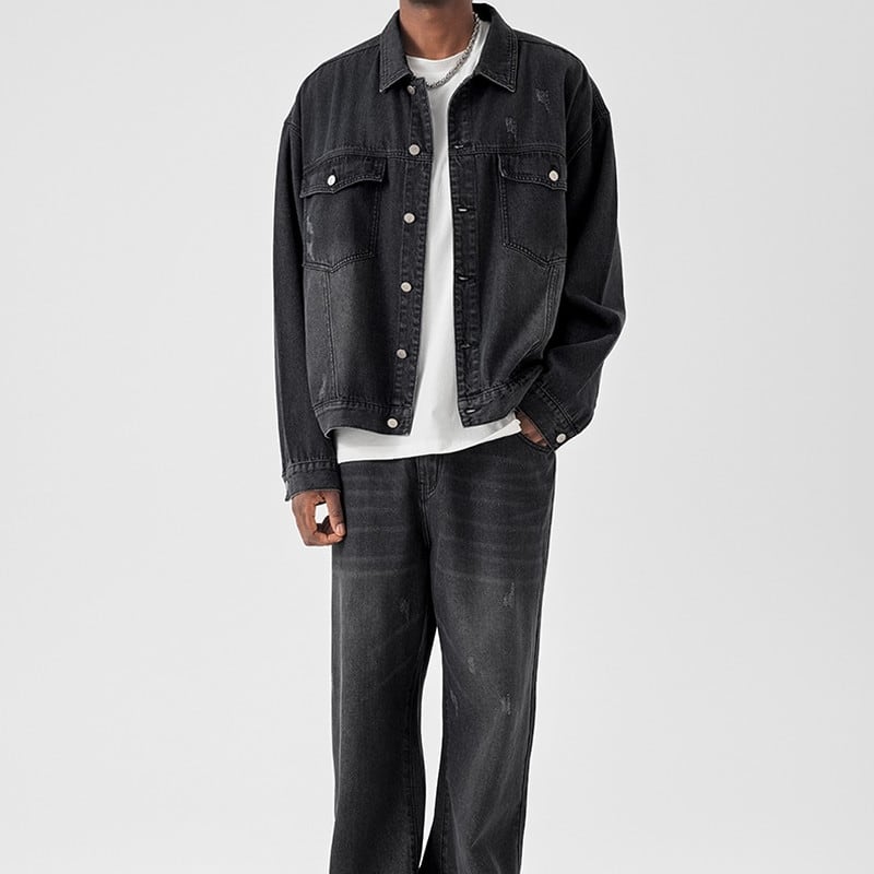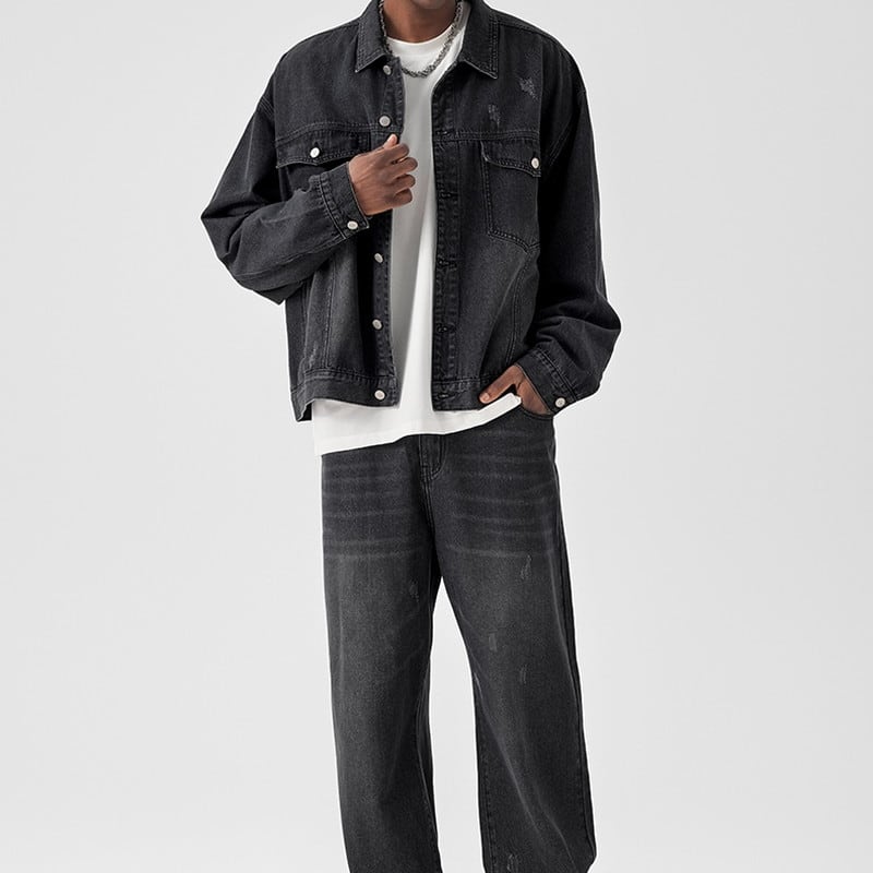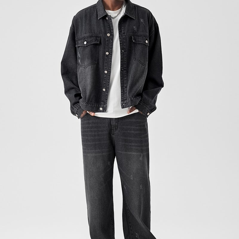 ウォッシュドブラックデニムジャケット(別売りでセットアップのパンツあり) 935