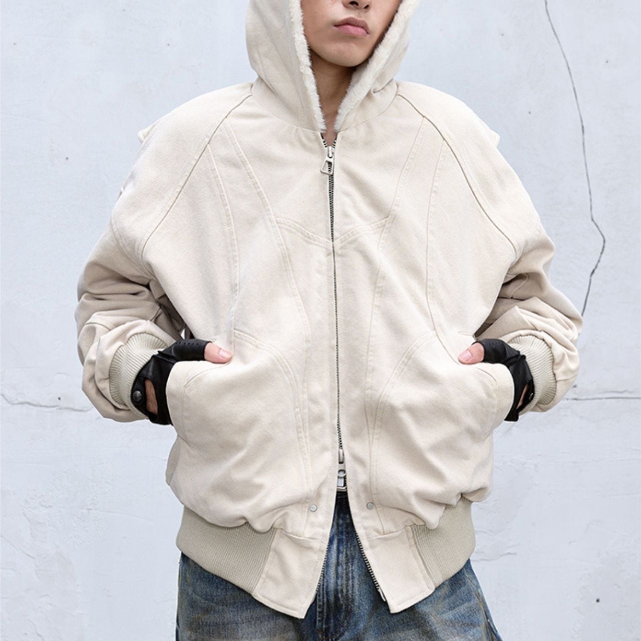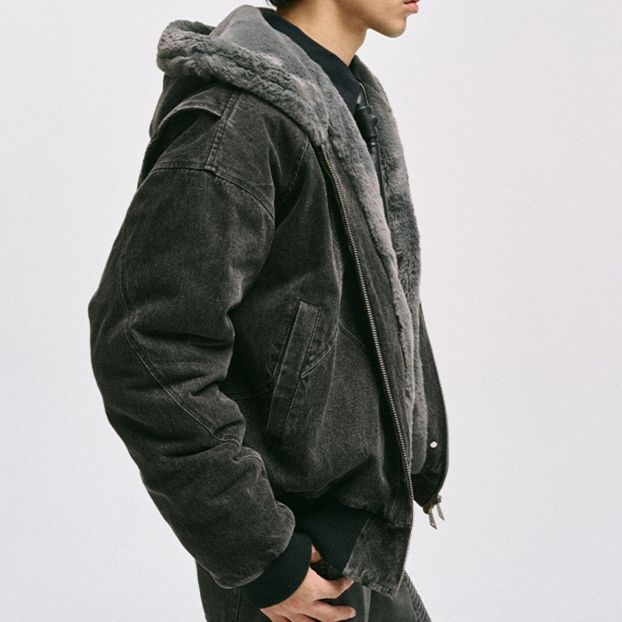 フェイクファーライナーキャンバスウォッシュドブルゾン 1033