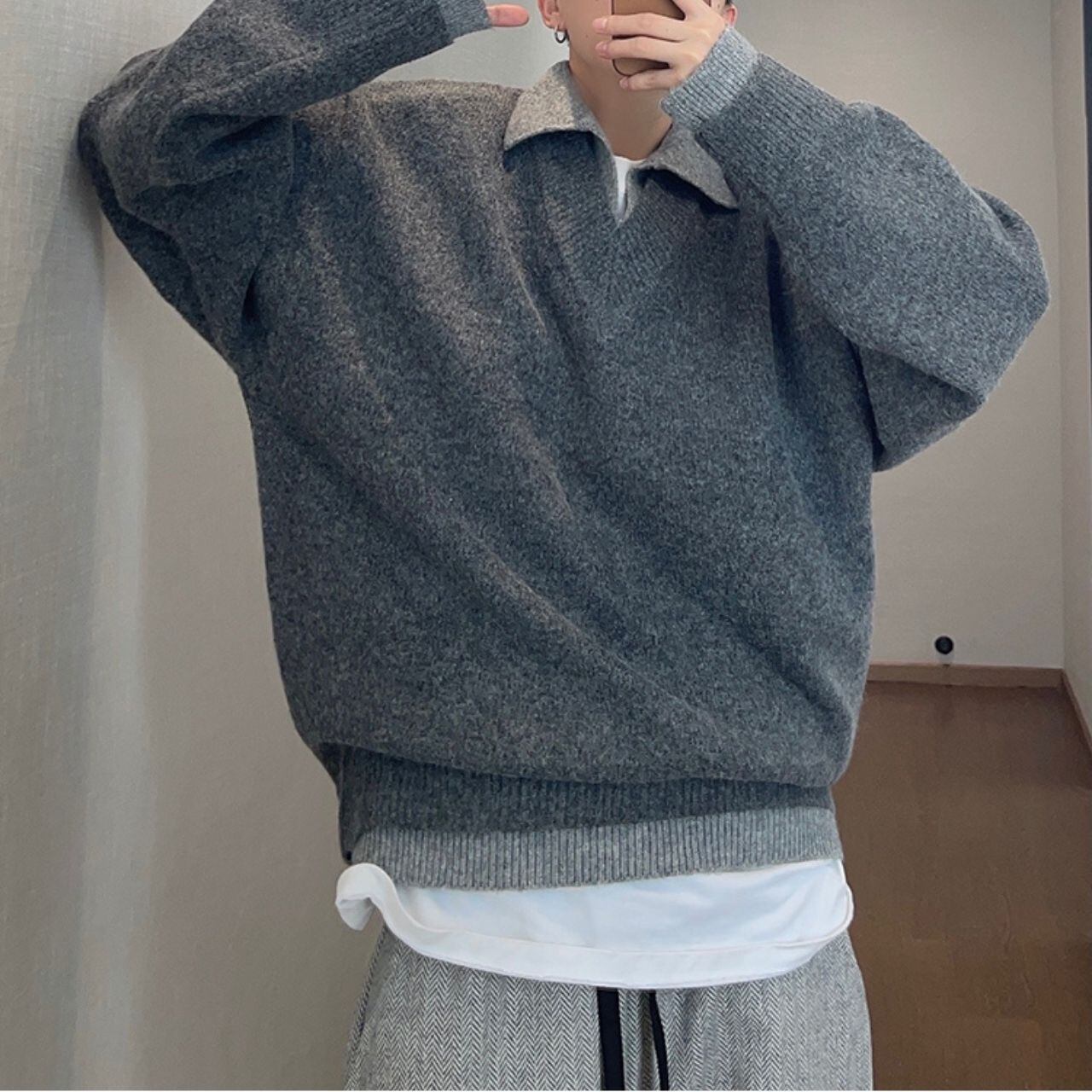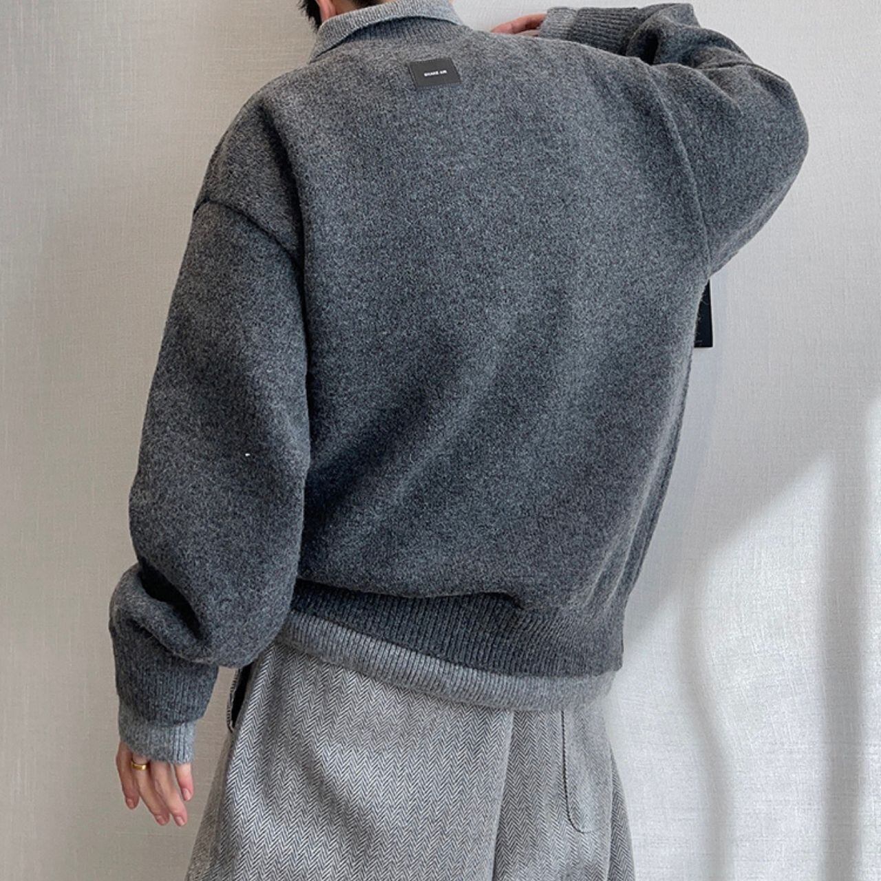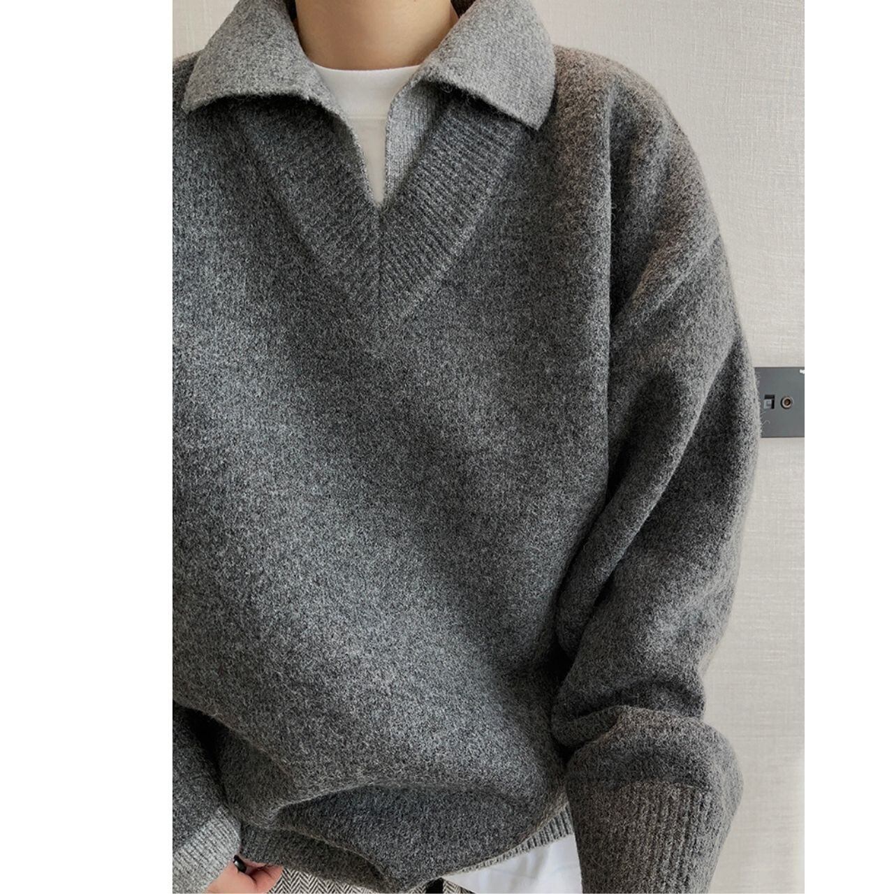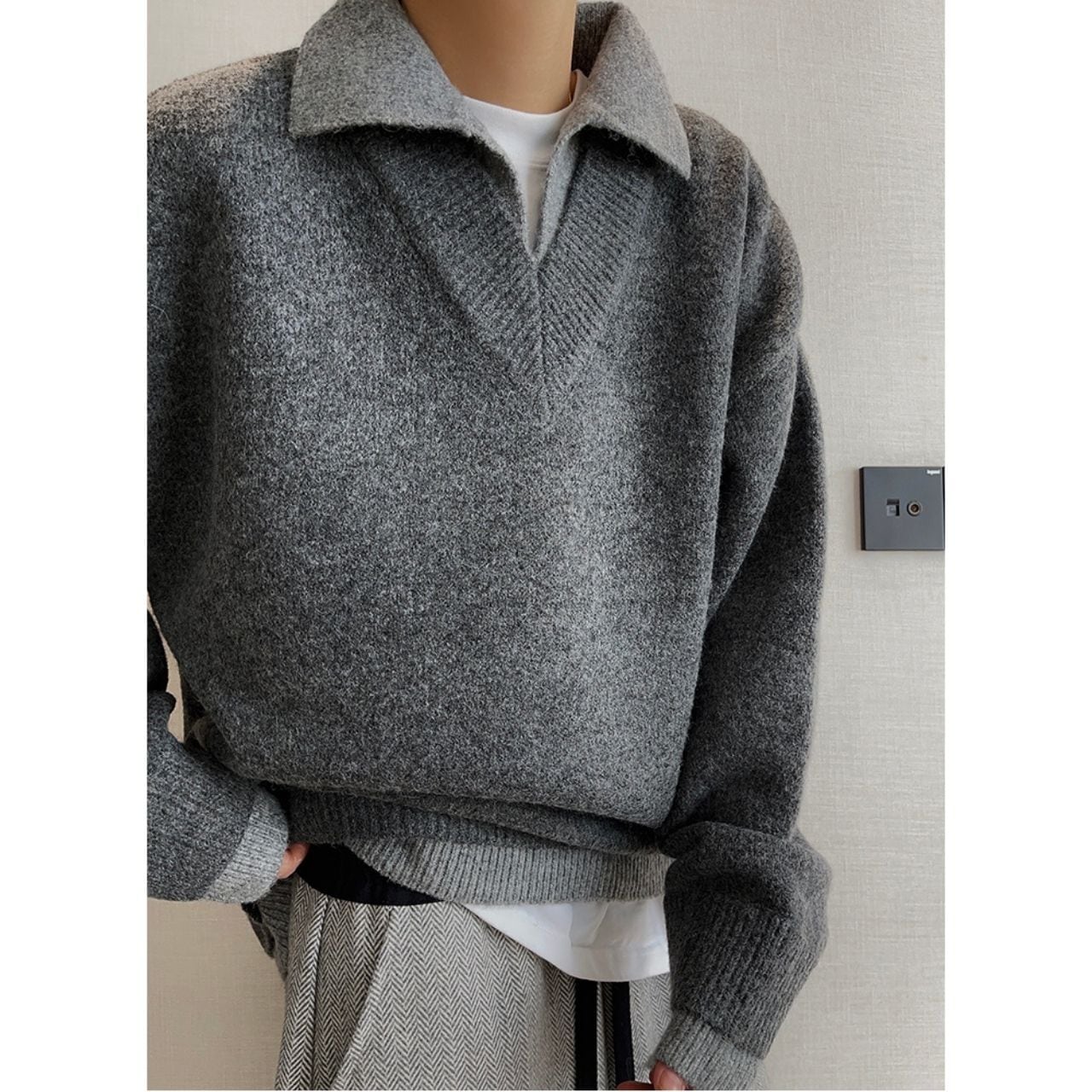 フェイクツーピース V ネックコントラストカラーニット 1041