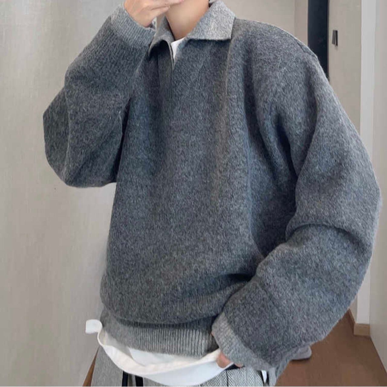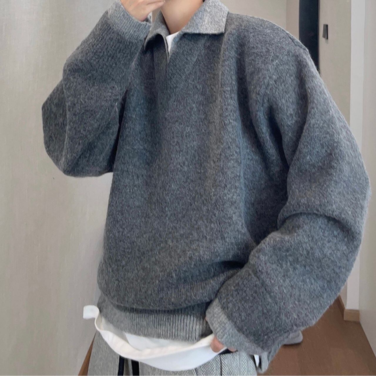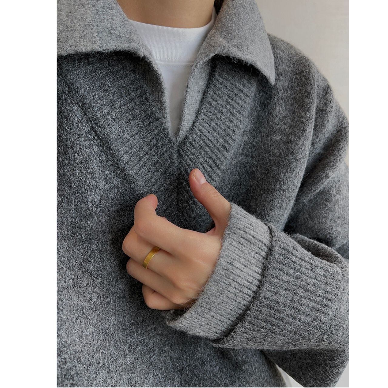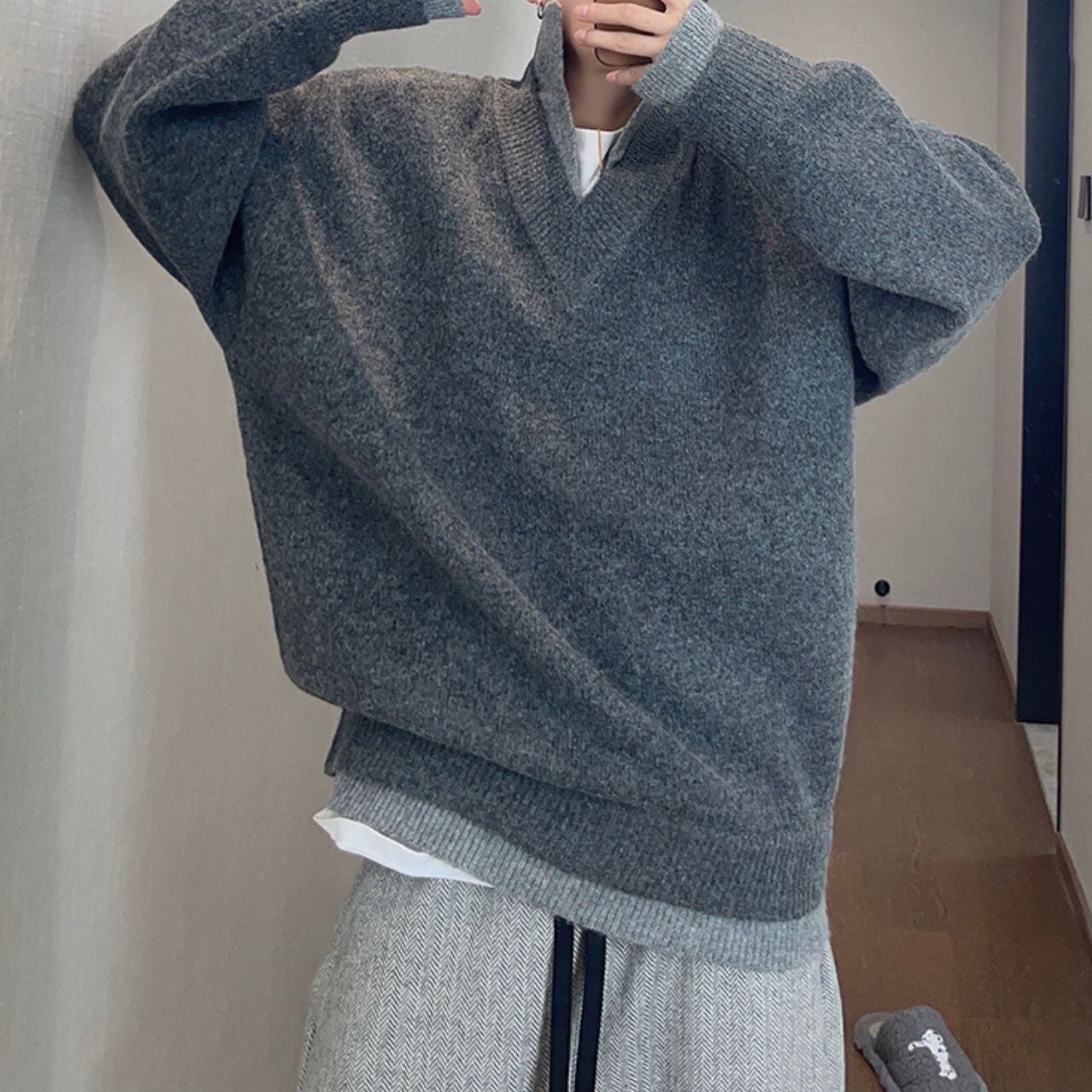 フェイクツーピース V ネックコントラストカラーニット 1041