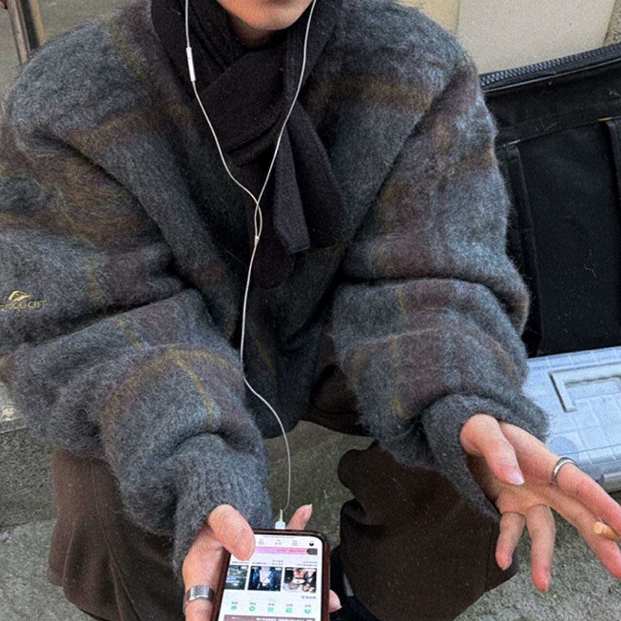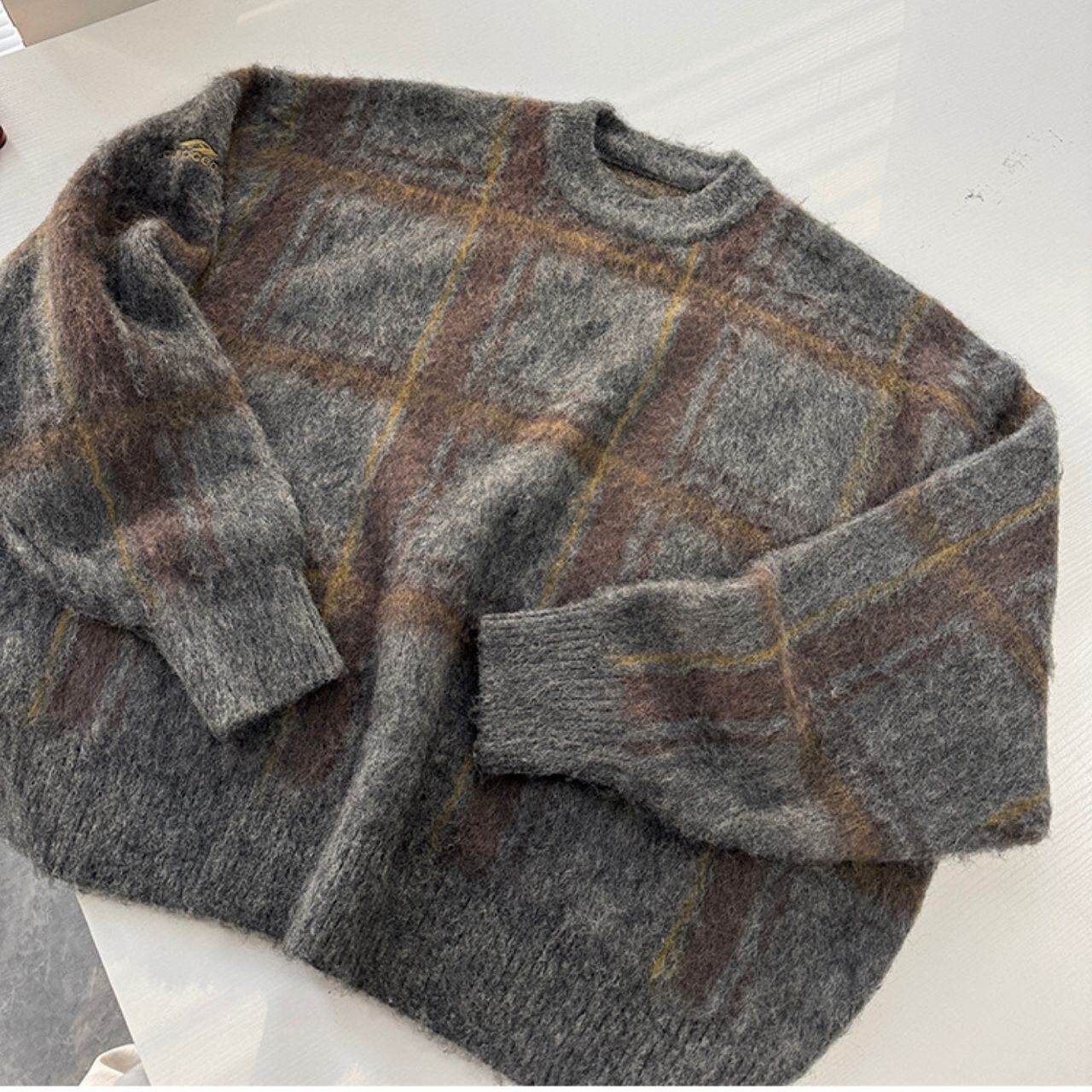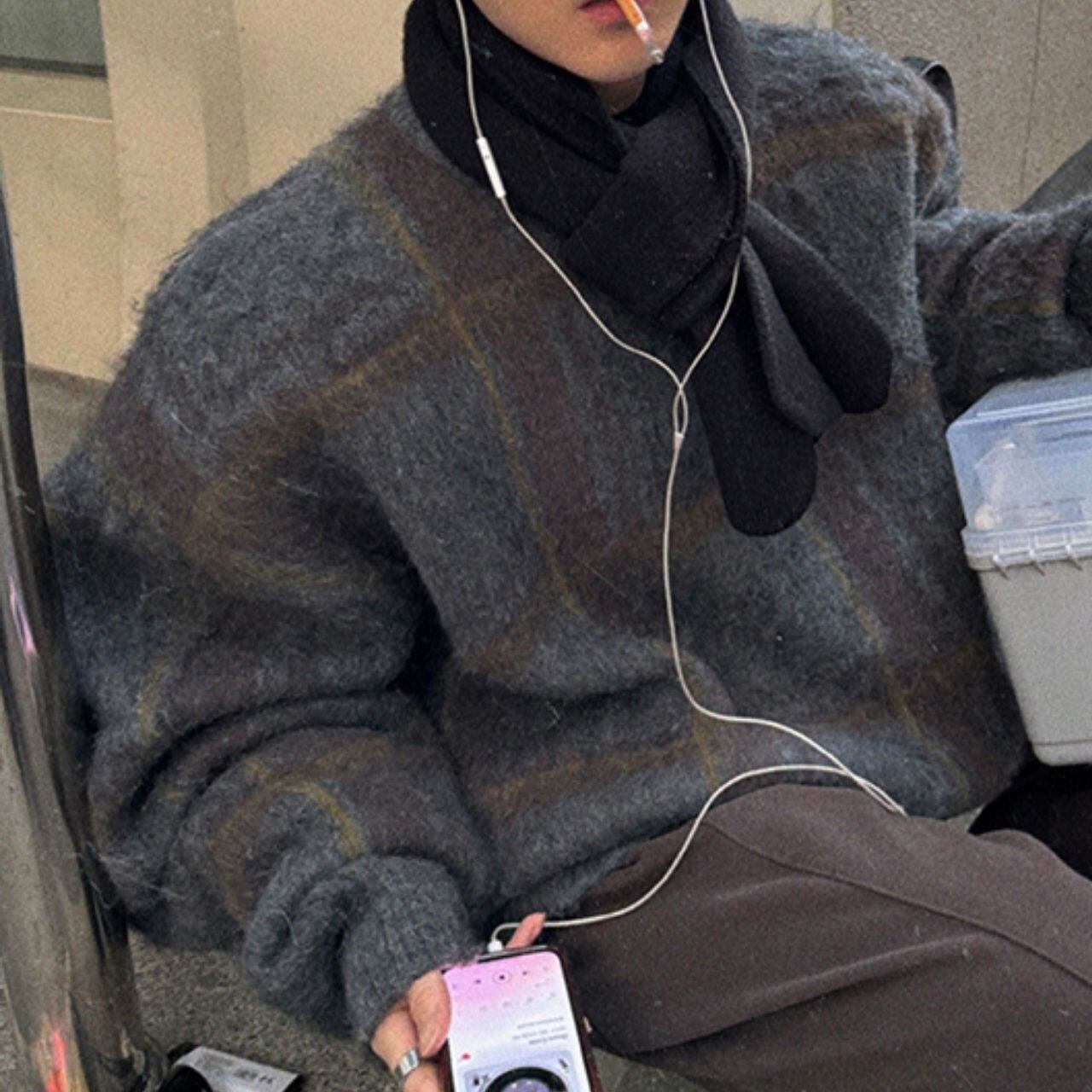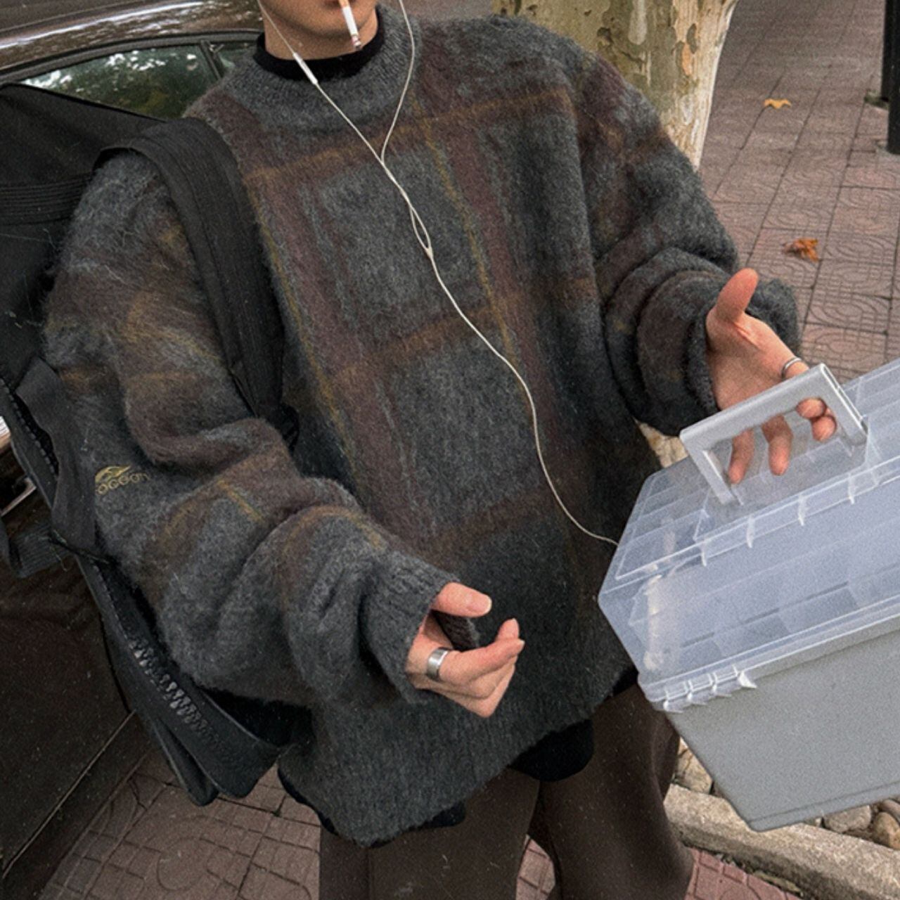 ふわふわチェック柄ビッグニット 1052