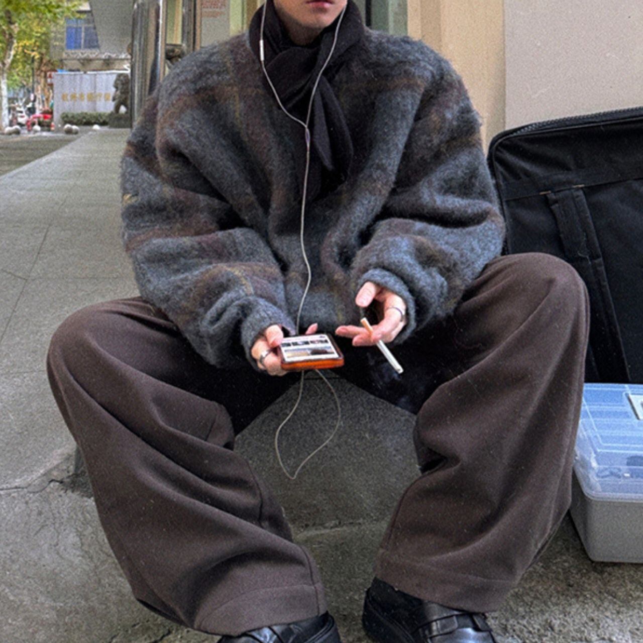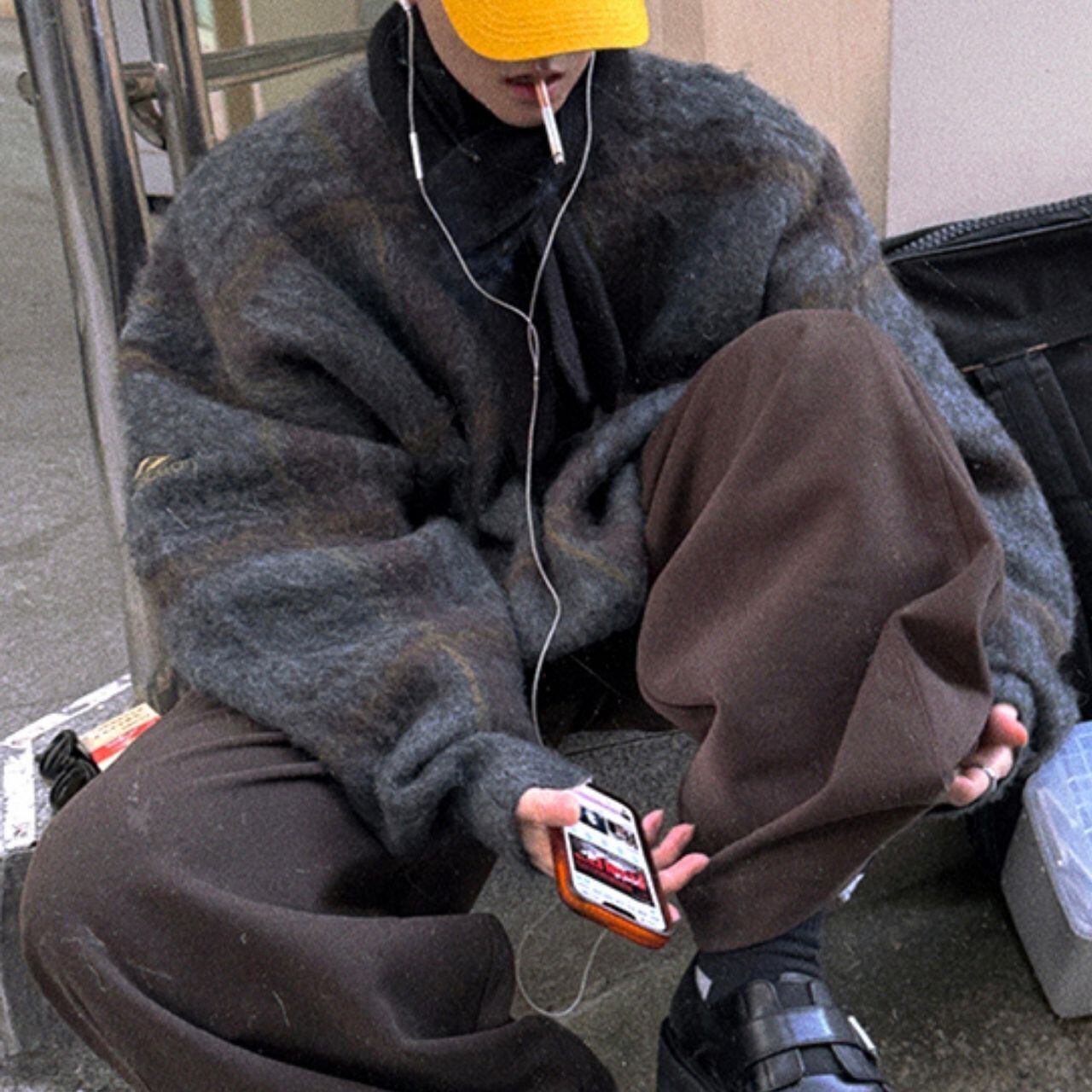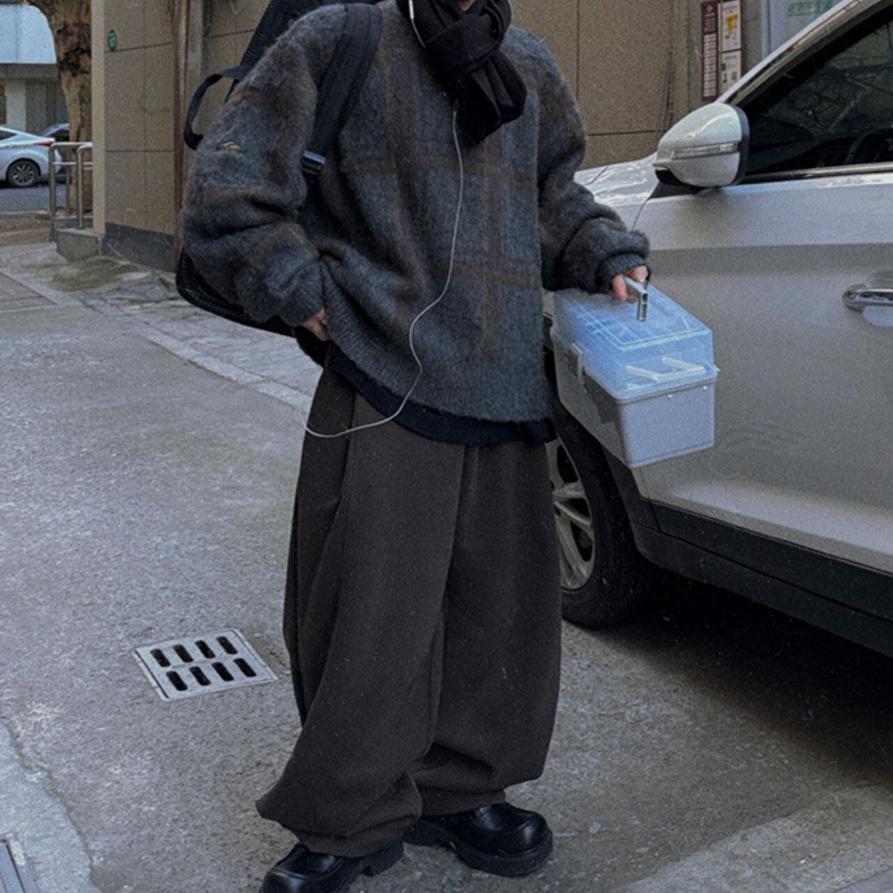 ふわふわチェック柄ビッグニット 1052