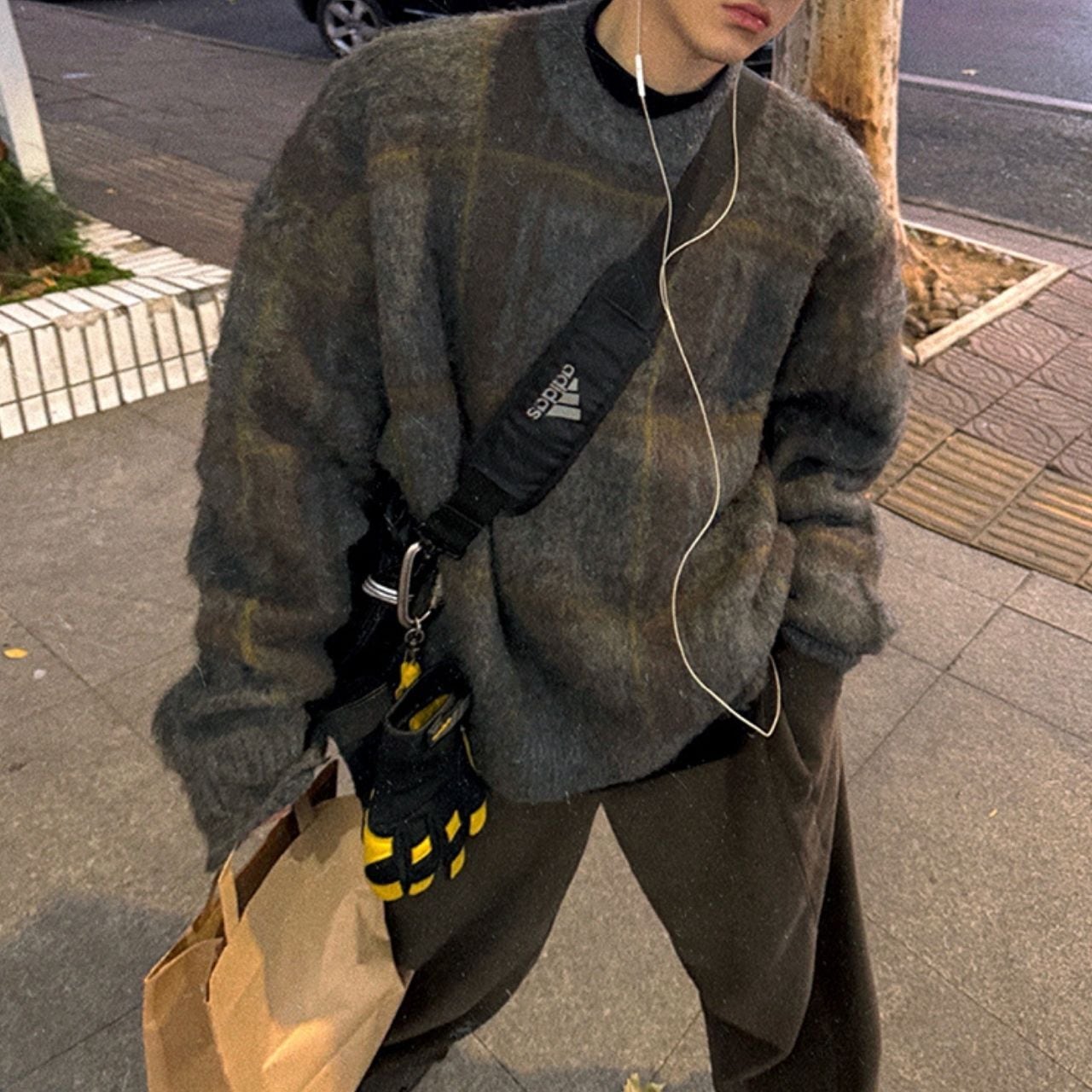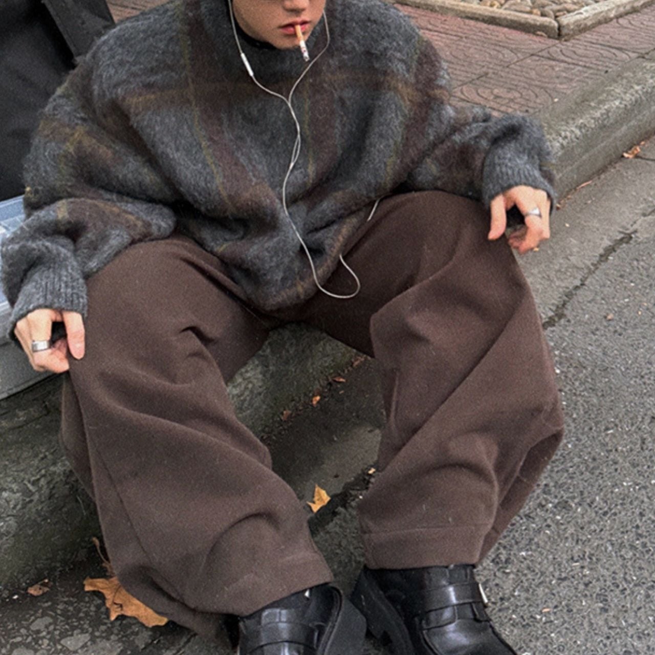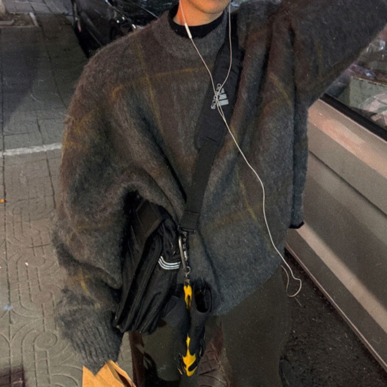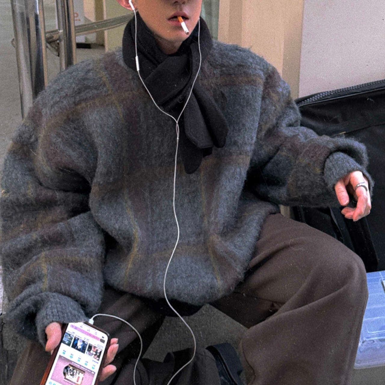 ふわふわチェック柄ビッグニット 1052