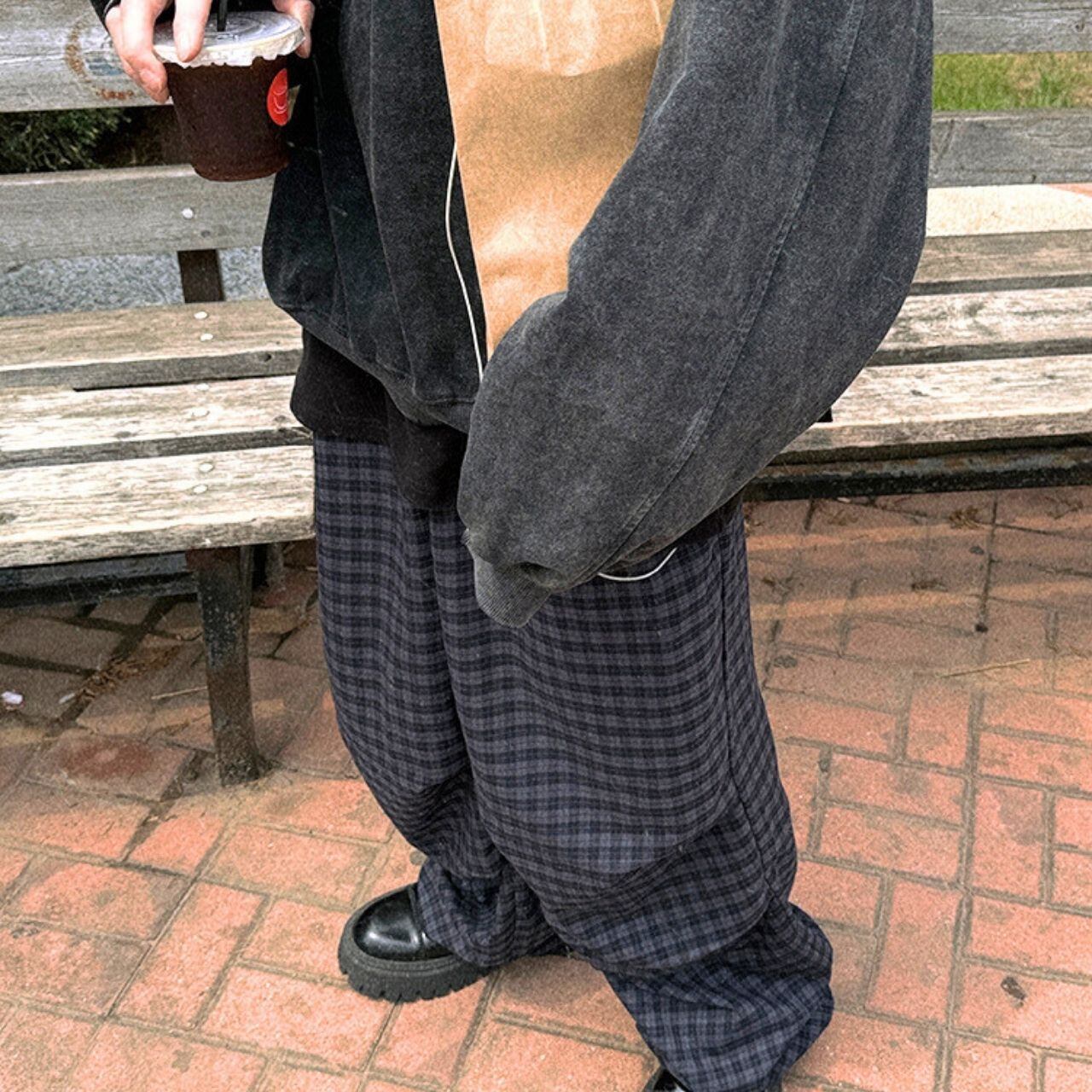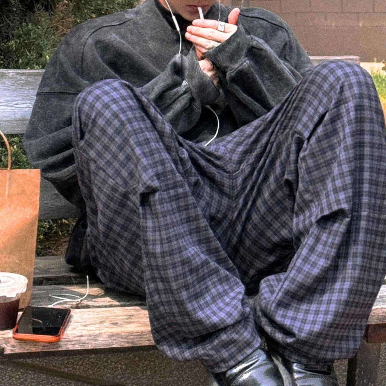 レトロカレッジブルーグレーチェック柄パンツ 1063