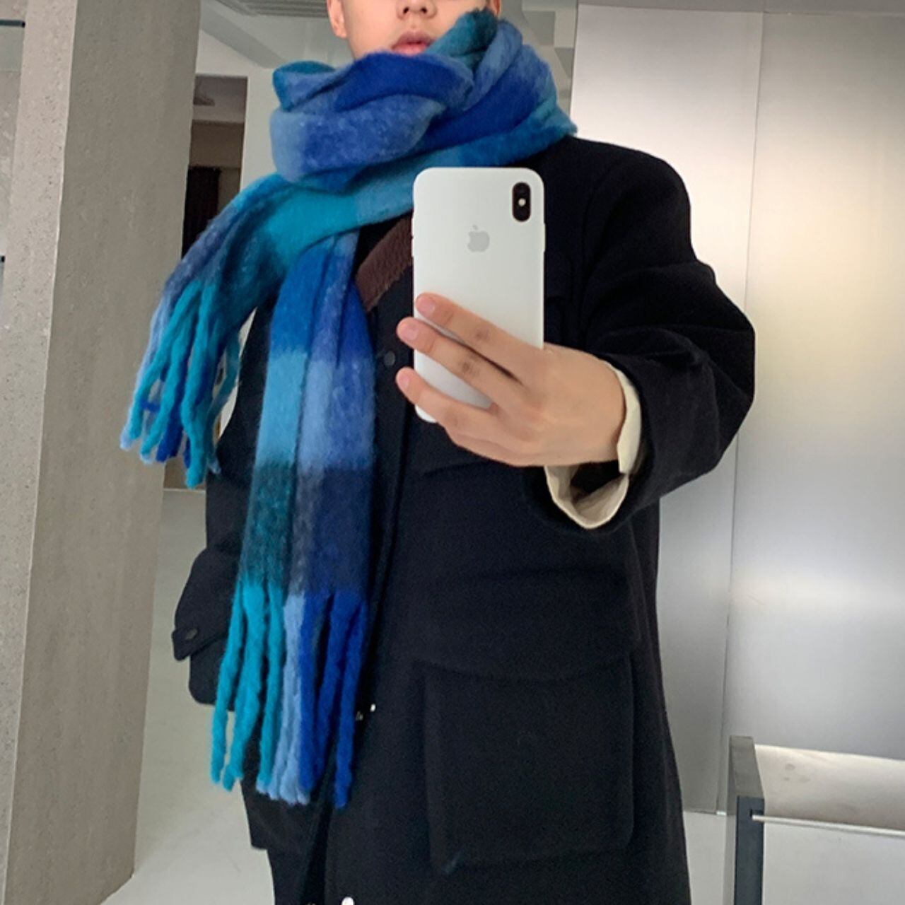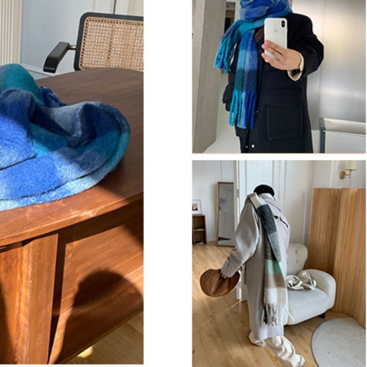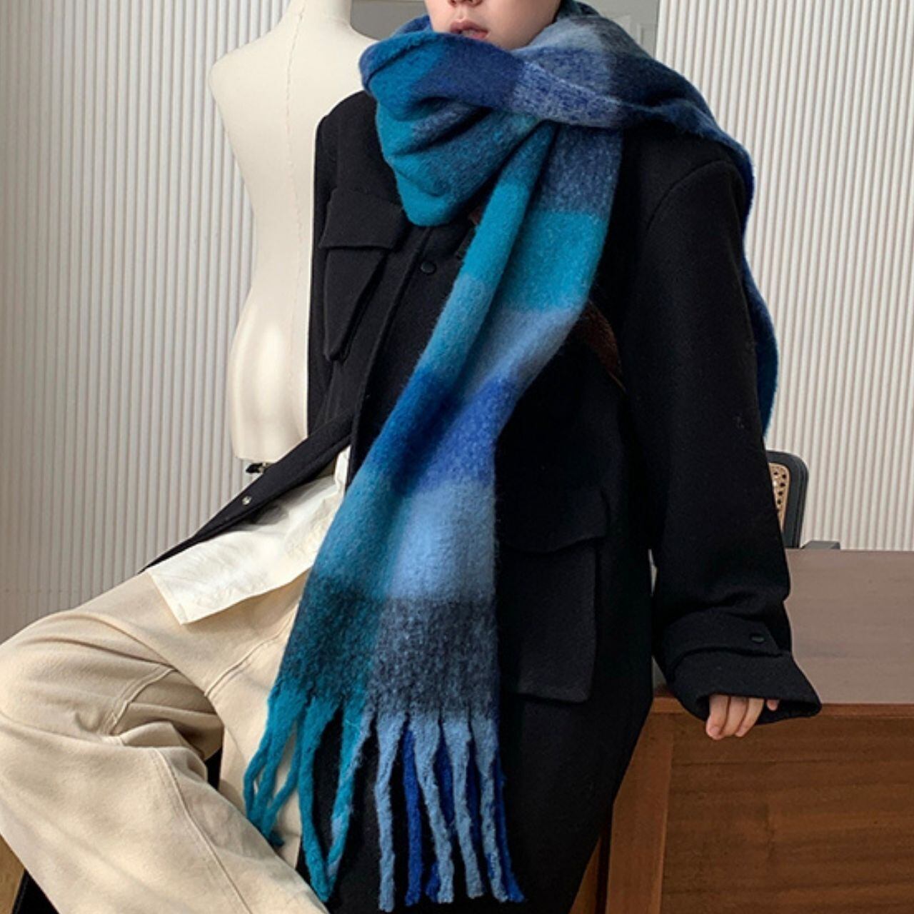 ビッグカラーチェック柄マフラー 1071