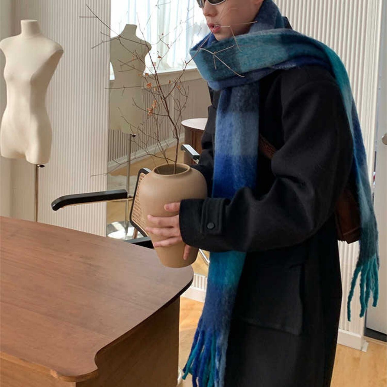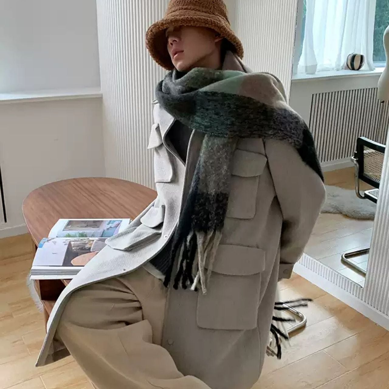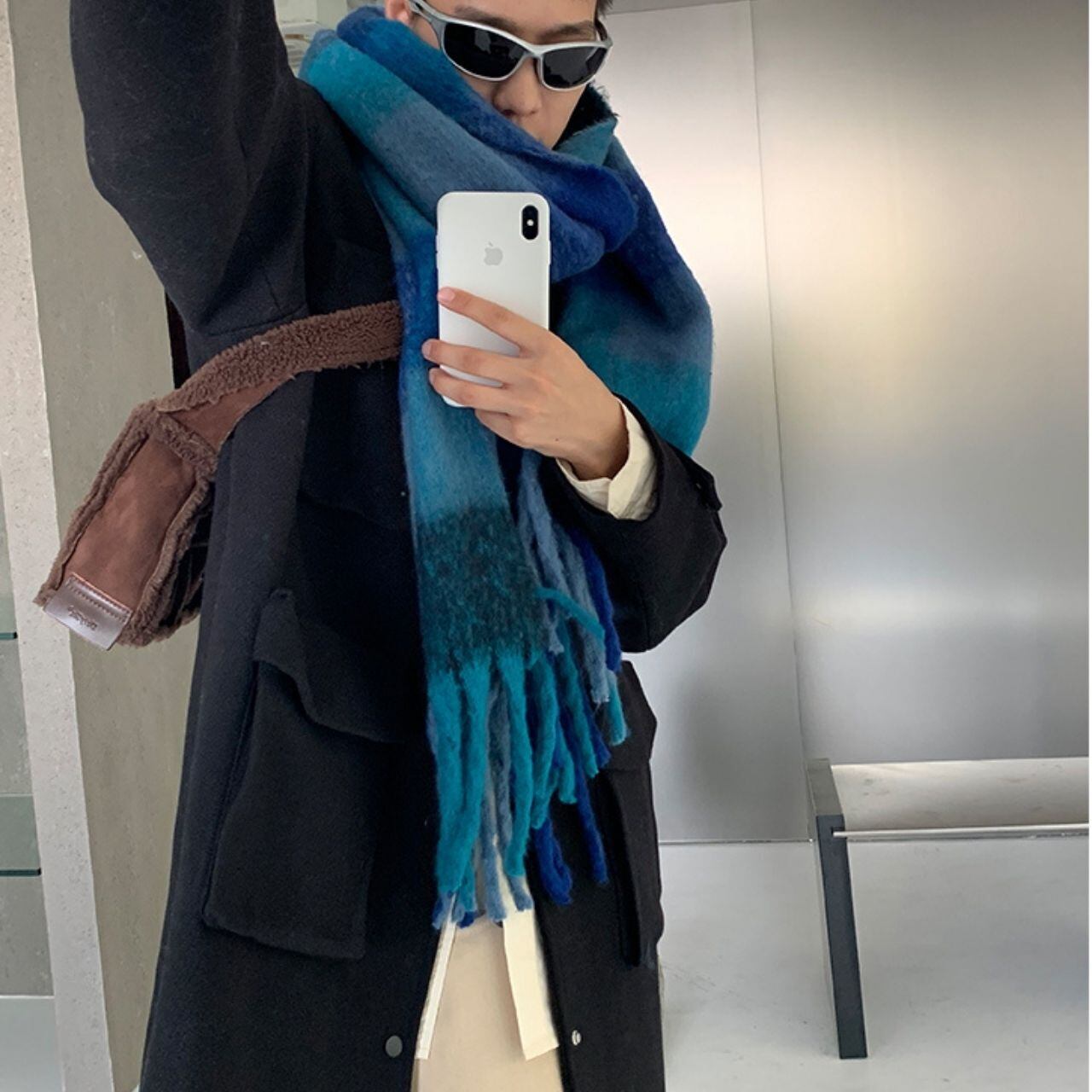ビッグカラーチェック柄マフラー 1071