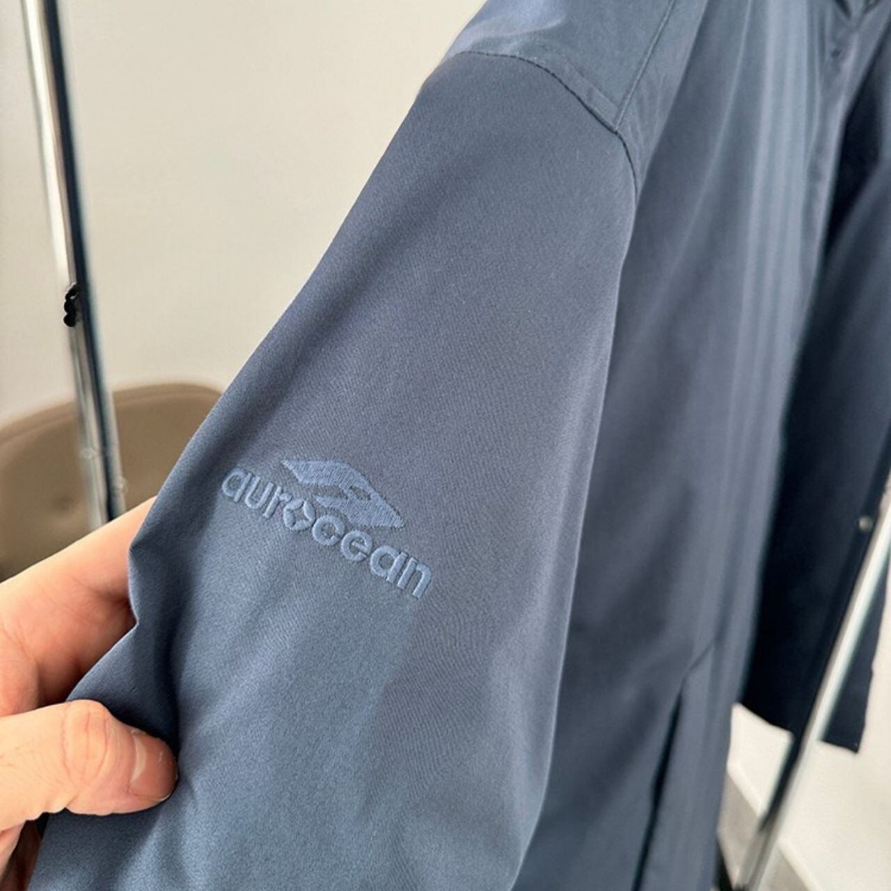 - M 肩幅: 67 cm 胸囲: 150 cm 着丈: 87 cm 袖丈: 58 cm