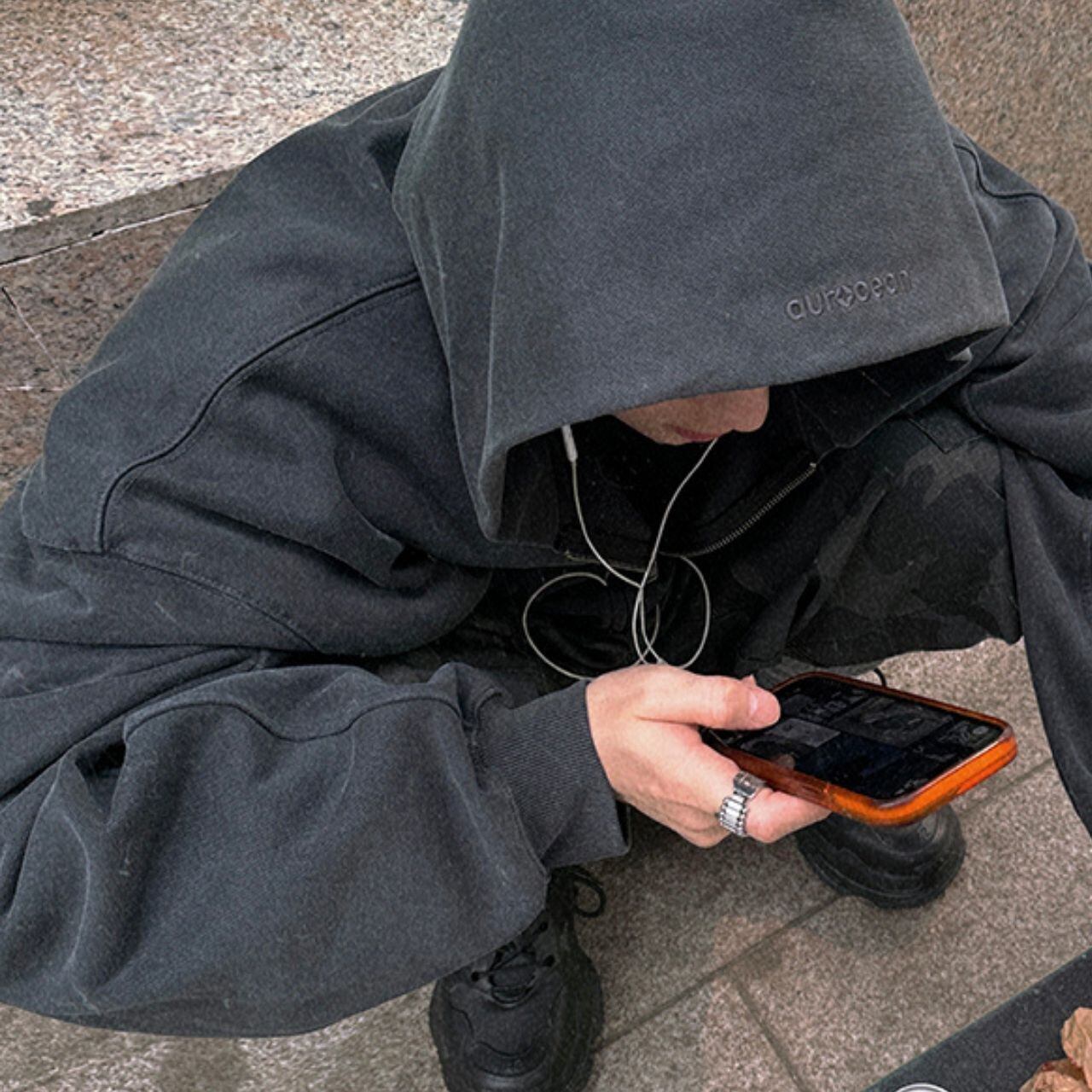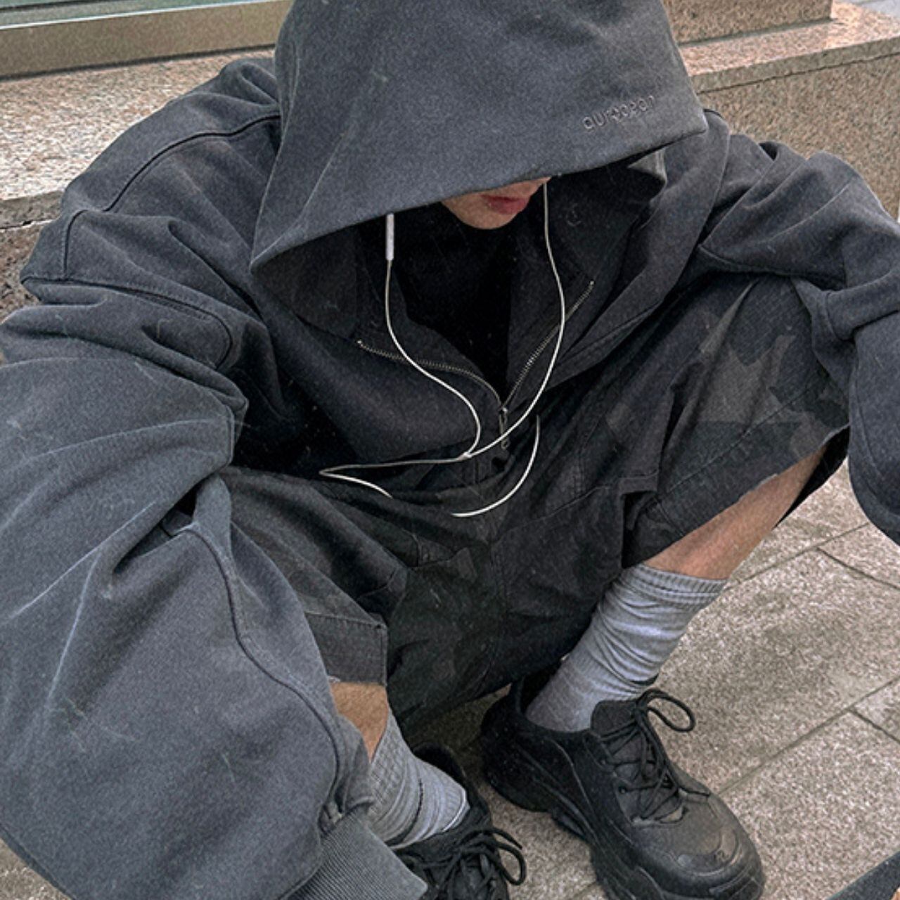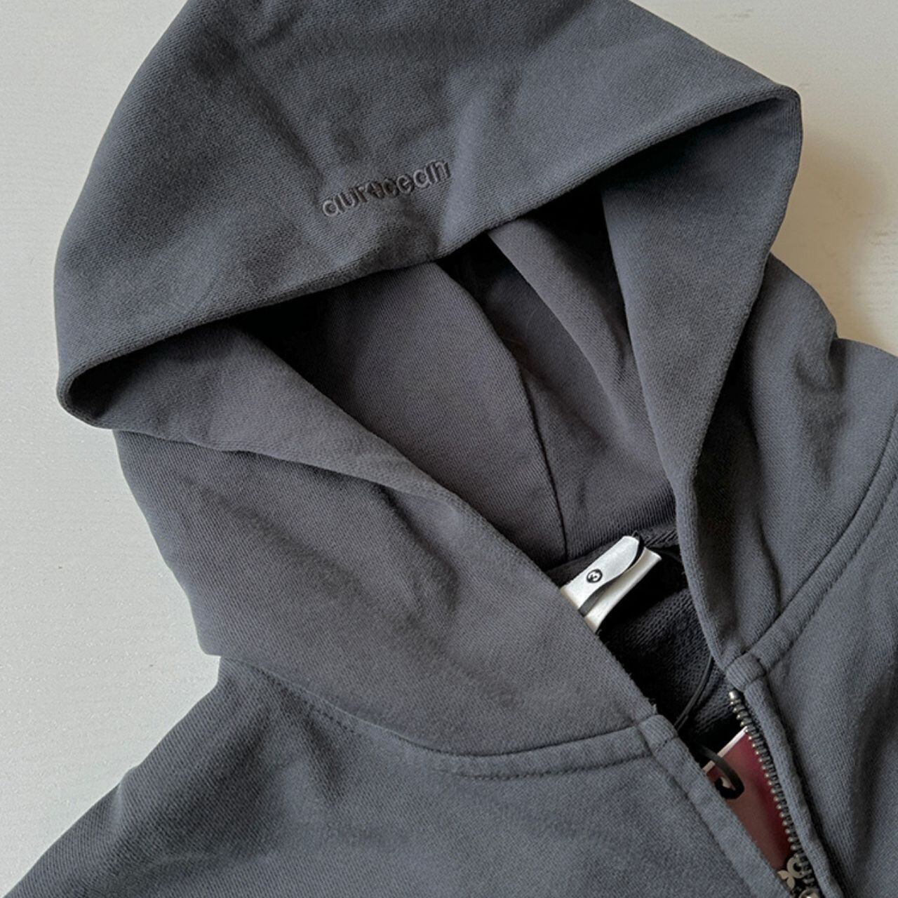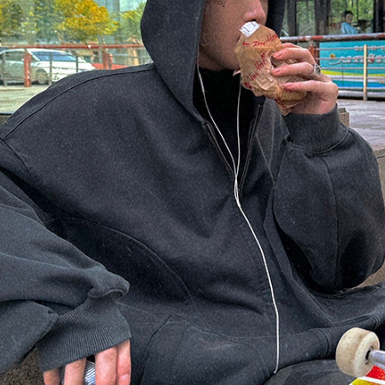 ウォッシュド古着風厚手シンプルグレーパーカー 1117