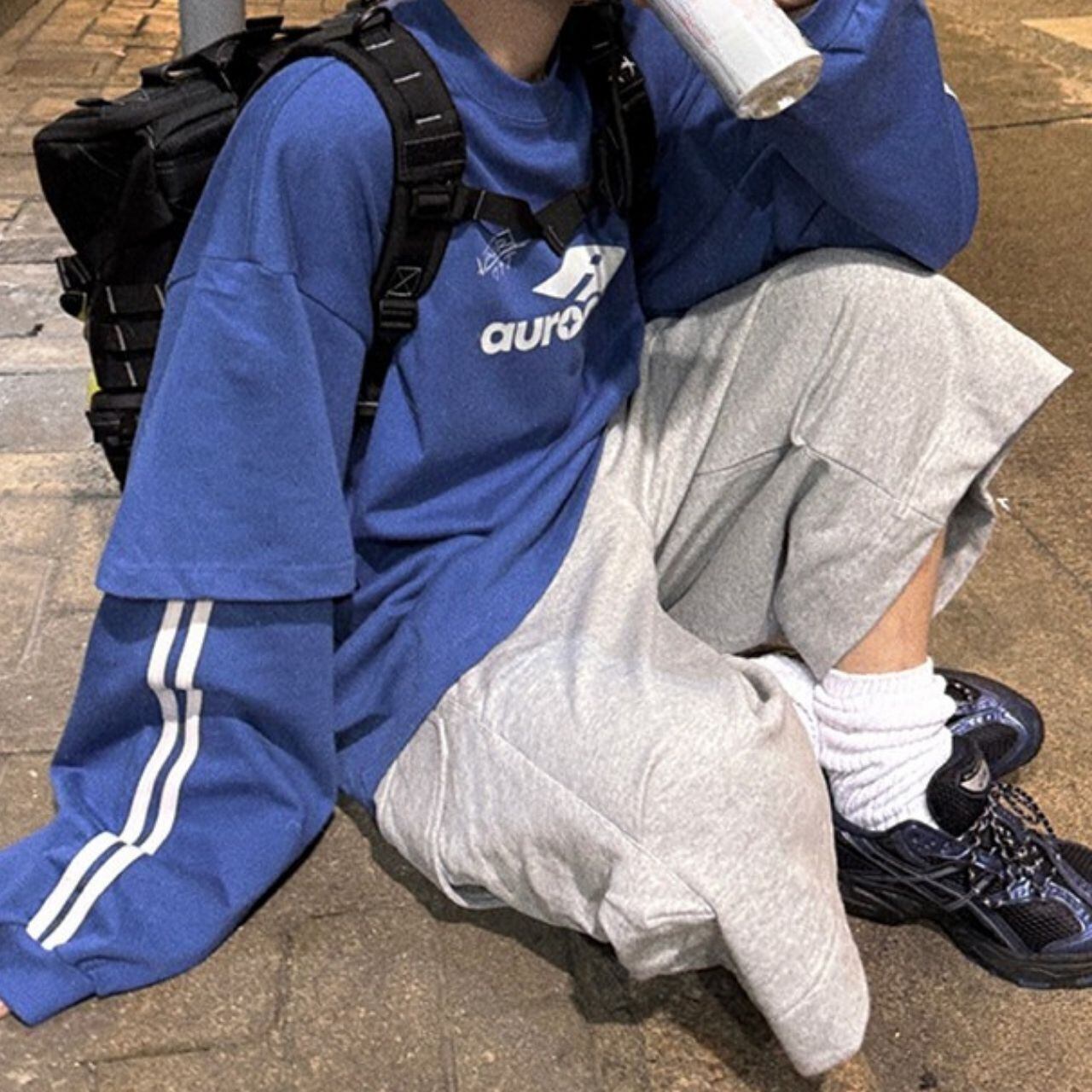 ブルーフェイクツーピーススポーツロングTシャツ 1121