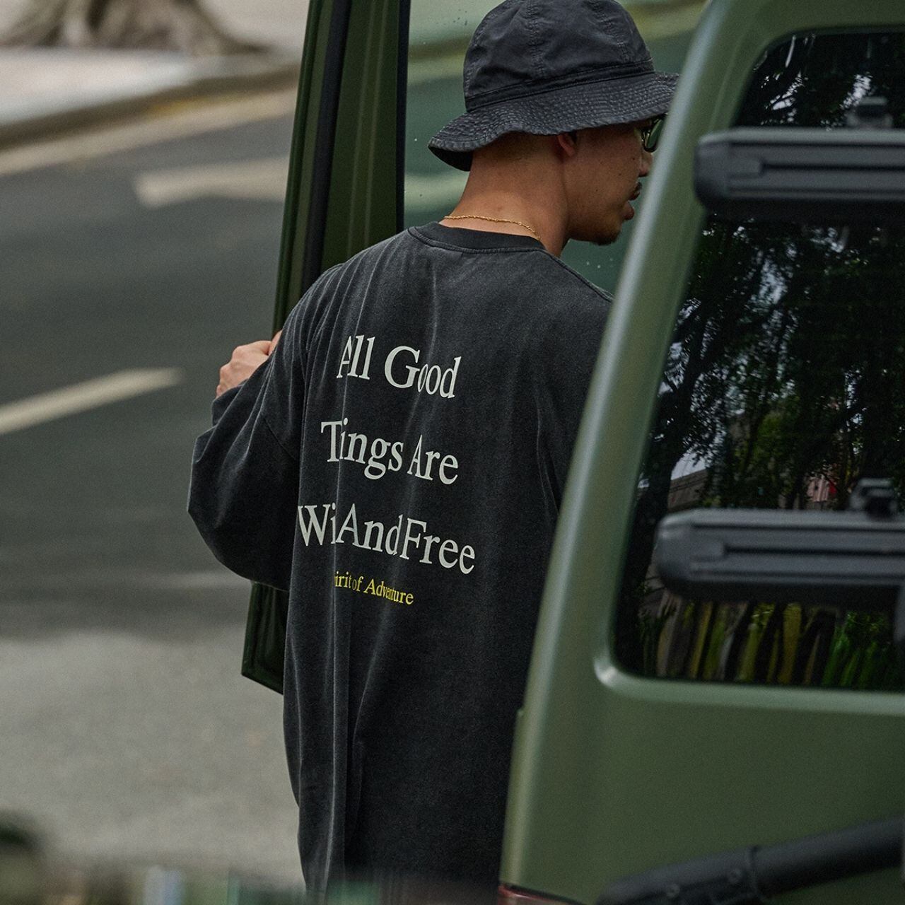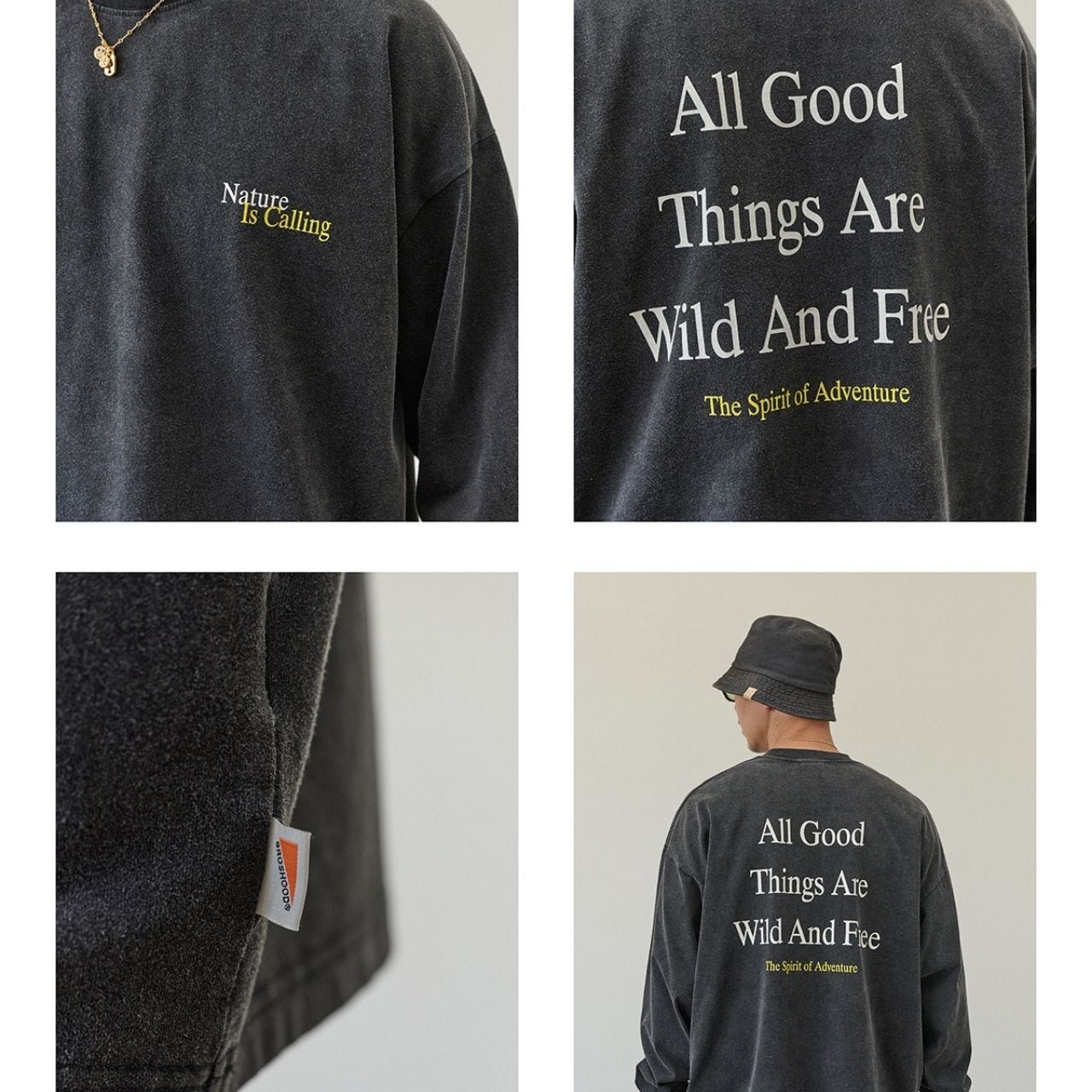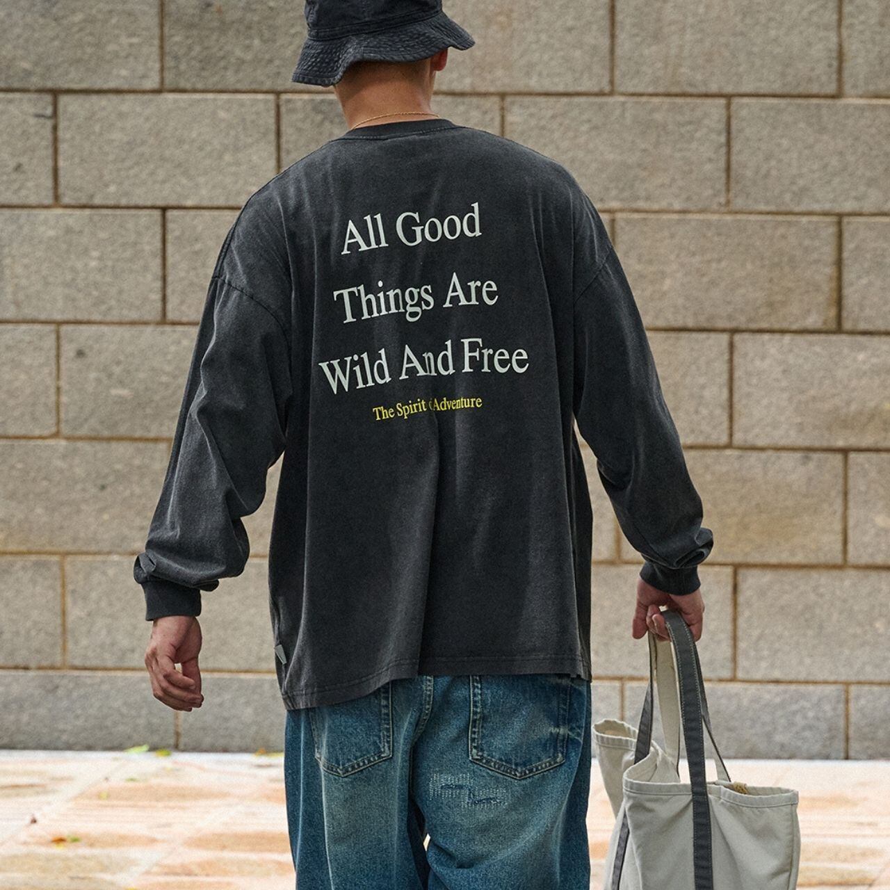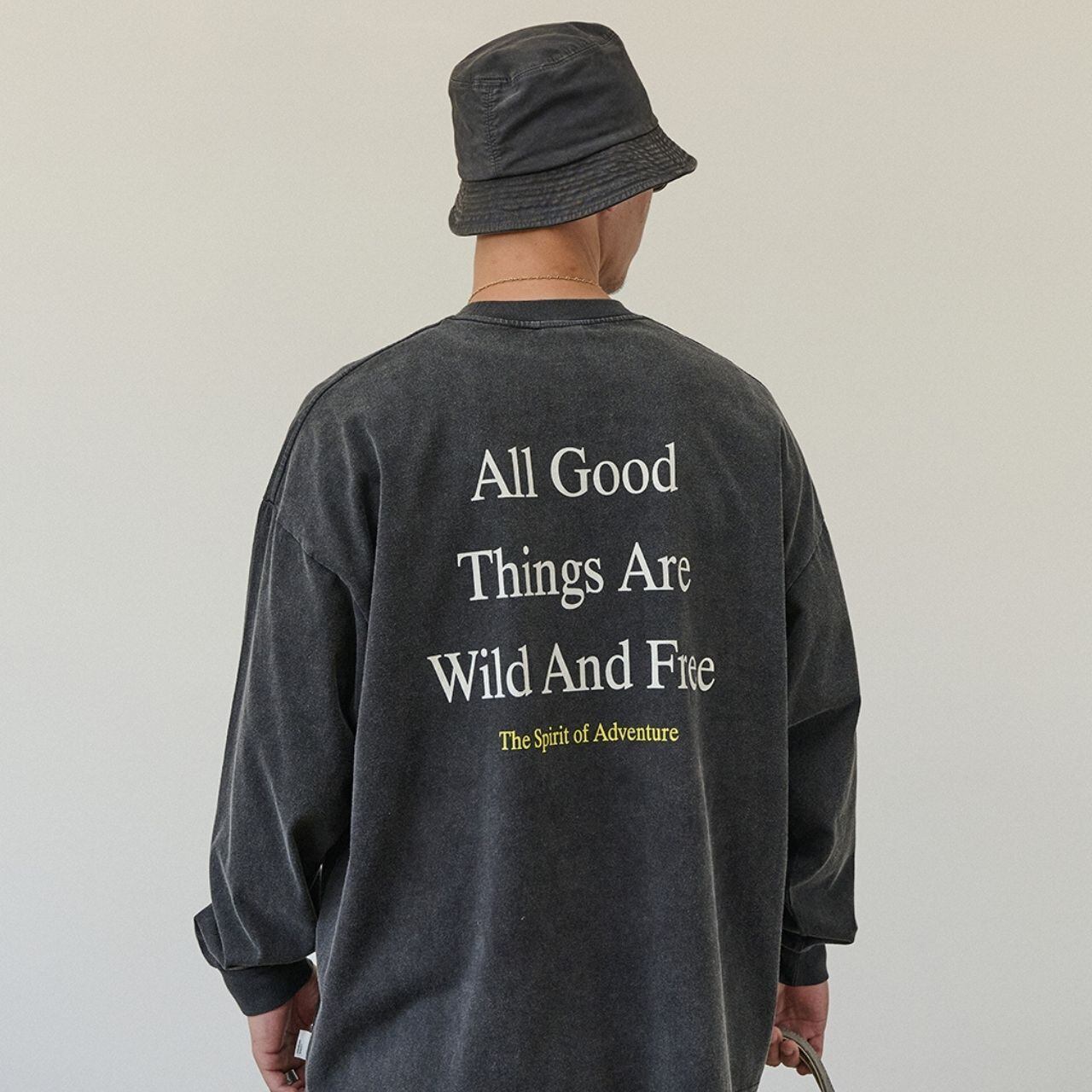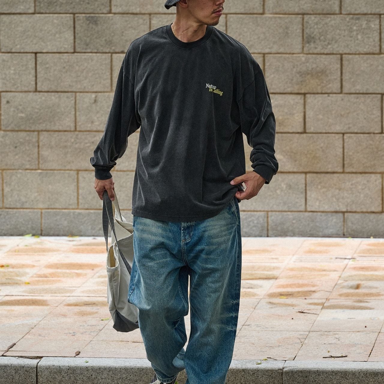 アルファベッドプリントウォッシュド加工ロングTシャツ 1168